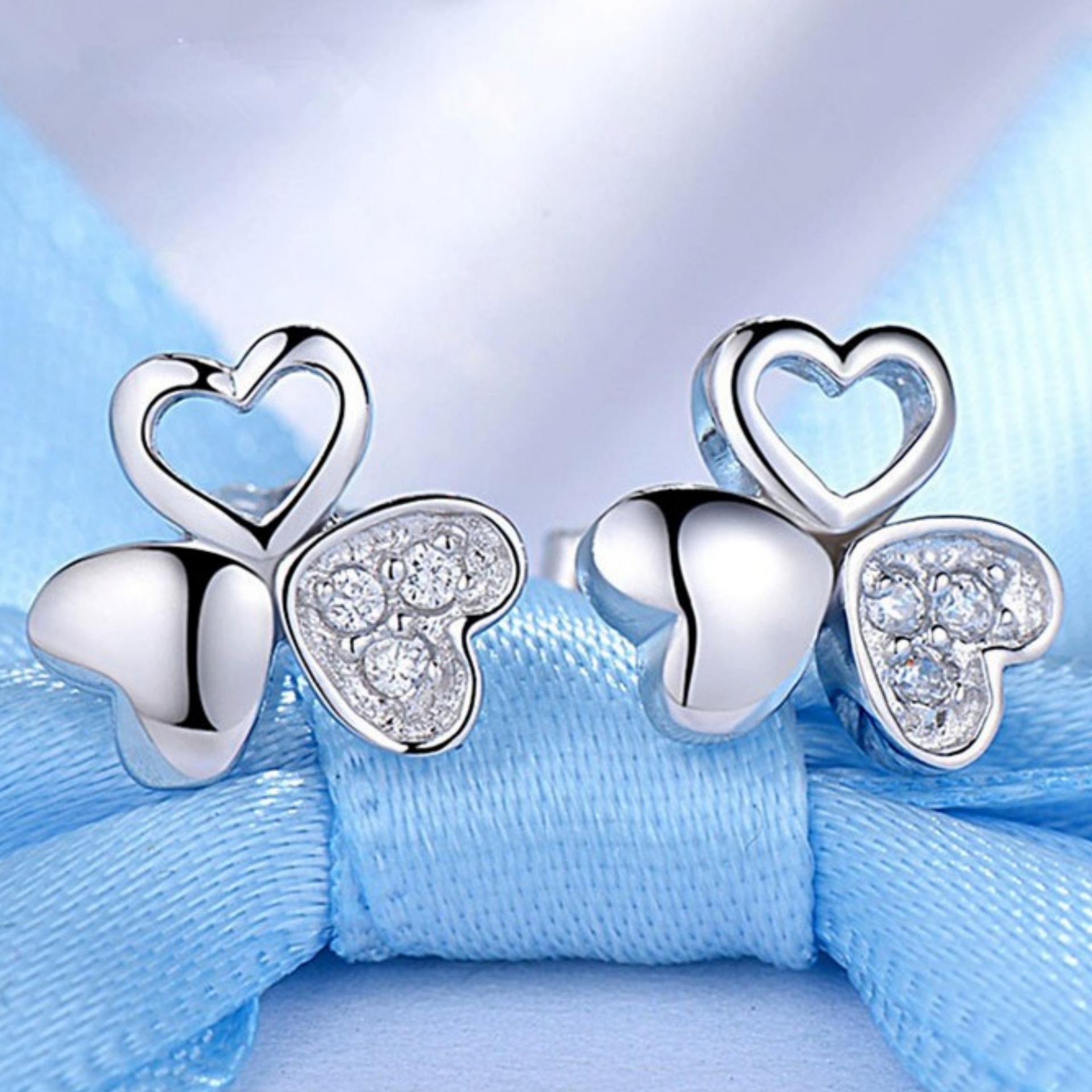 Compra Pendientes de trébol más vendidos de Jin Jiahua, pendientes coreanos de moda con forma de flor de tres hojas y amor, venta al por mayor al por mayor en Joom.pro