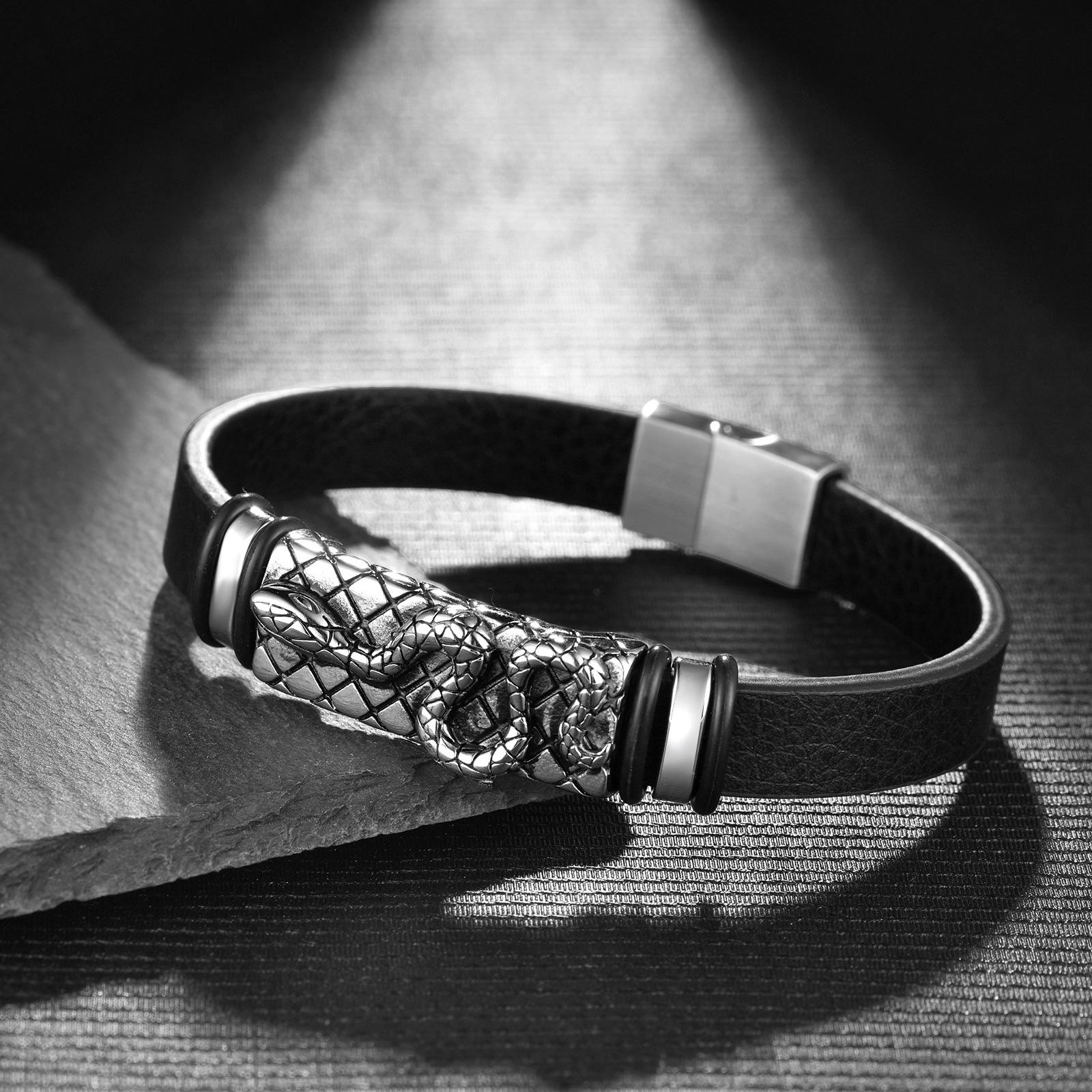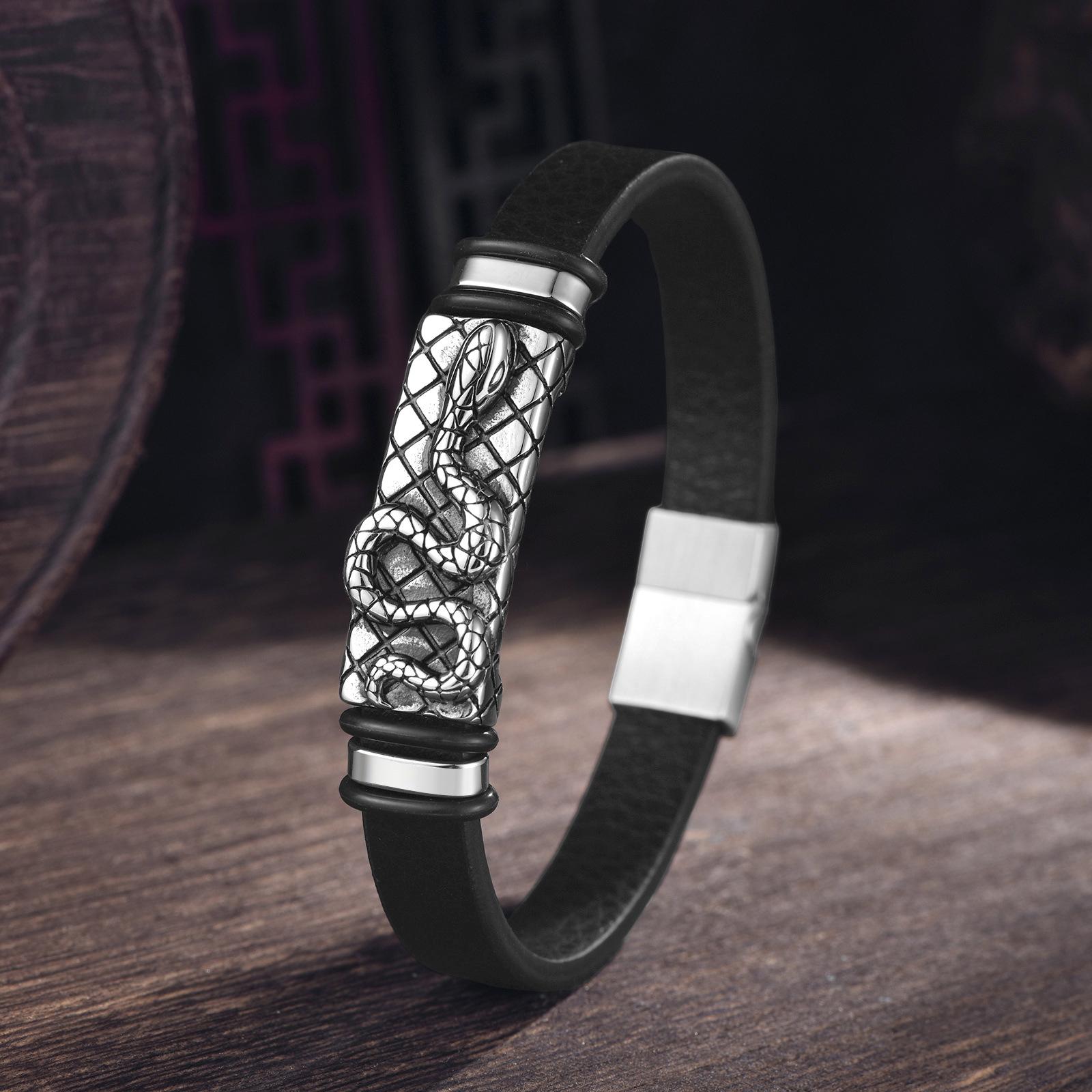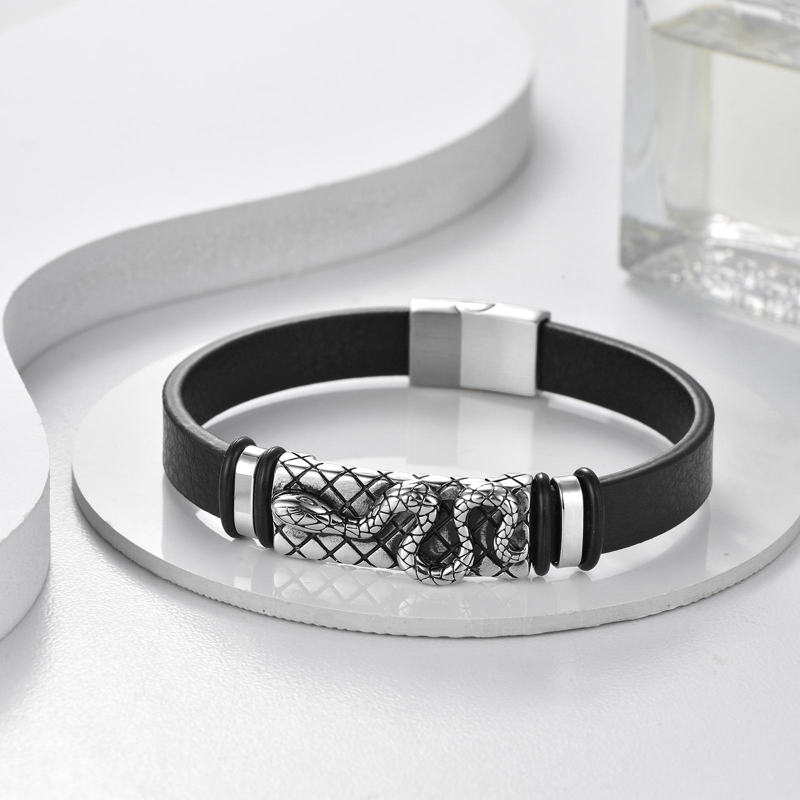 Compra Joyería Transfronteriza Más Vendida Pulsera de Cuero Simple Retro Europea y Americana Accesorios de Moda con Patrón de Serpiente de Acero Inoxidable Pulsera para Pareja para Hombre al por mayor en Joom.pro