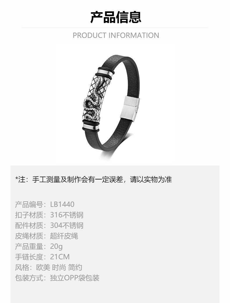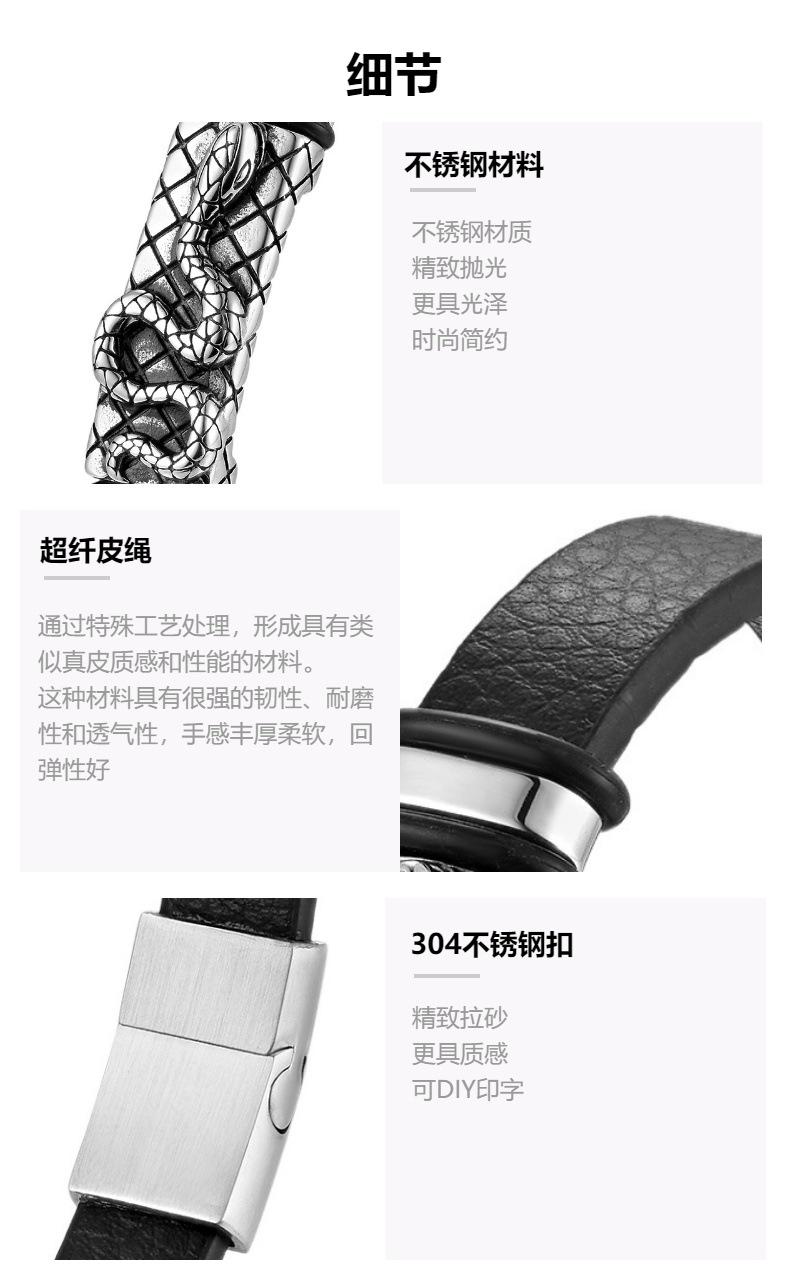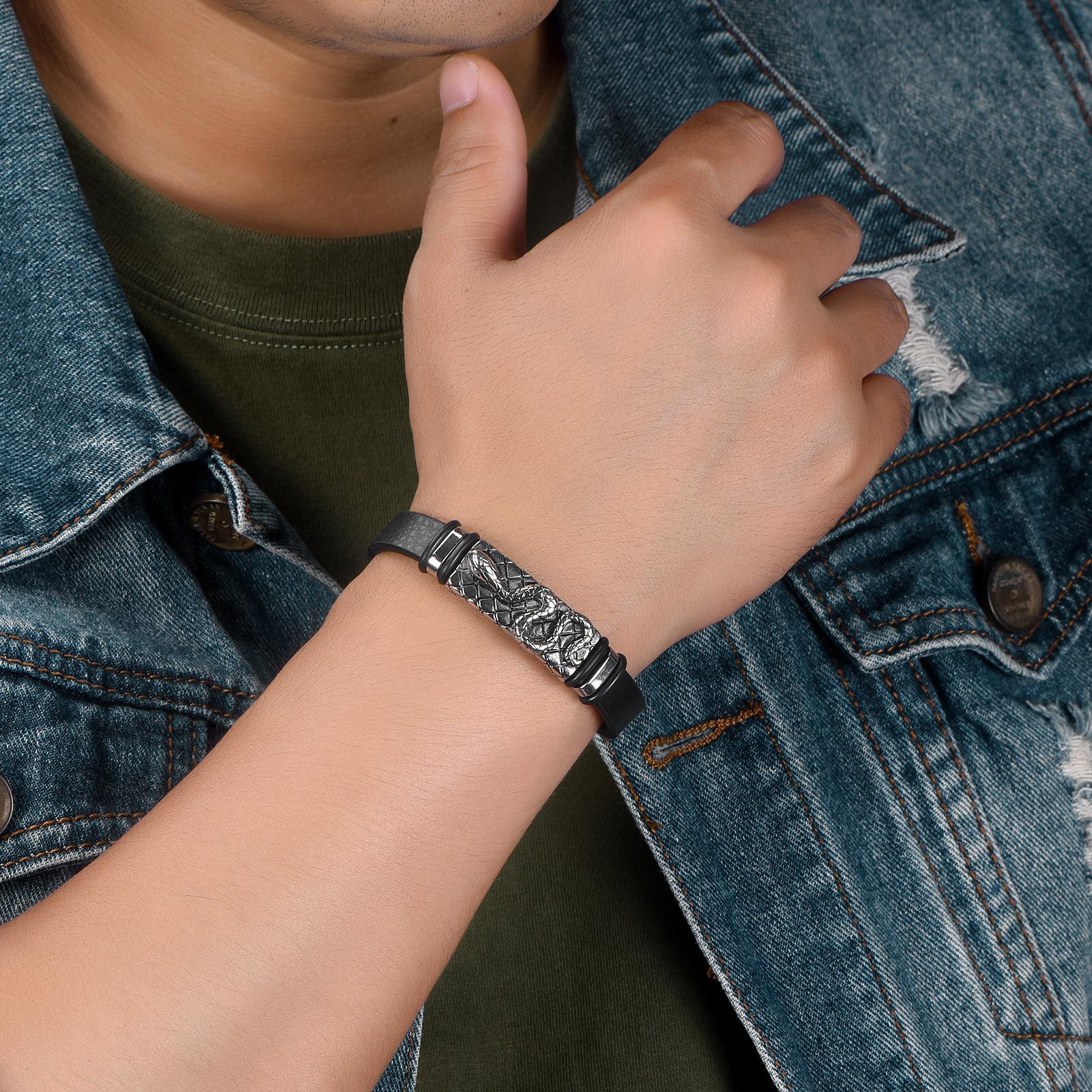Compra Joyería Transfronteriza Más Vendida Pulsera de Cuero Simple Retro Europea y Americana Accesorios de Moda con Patrón de Serpiente de Acero Inoxidable Pulsera para Pareja para Hombre al por mayor en Joom.pro