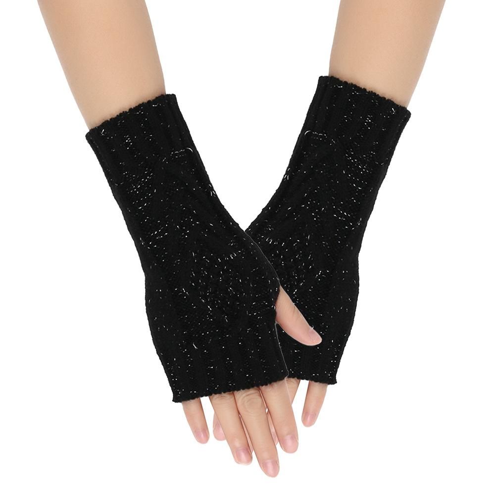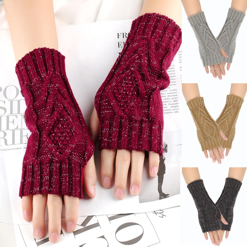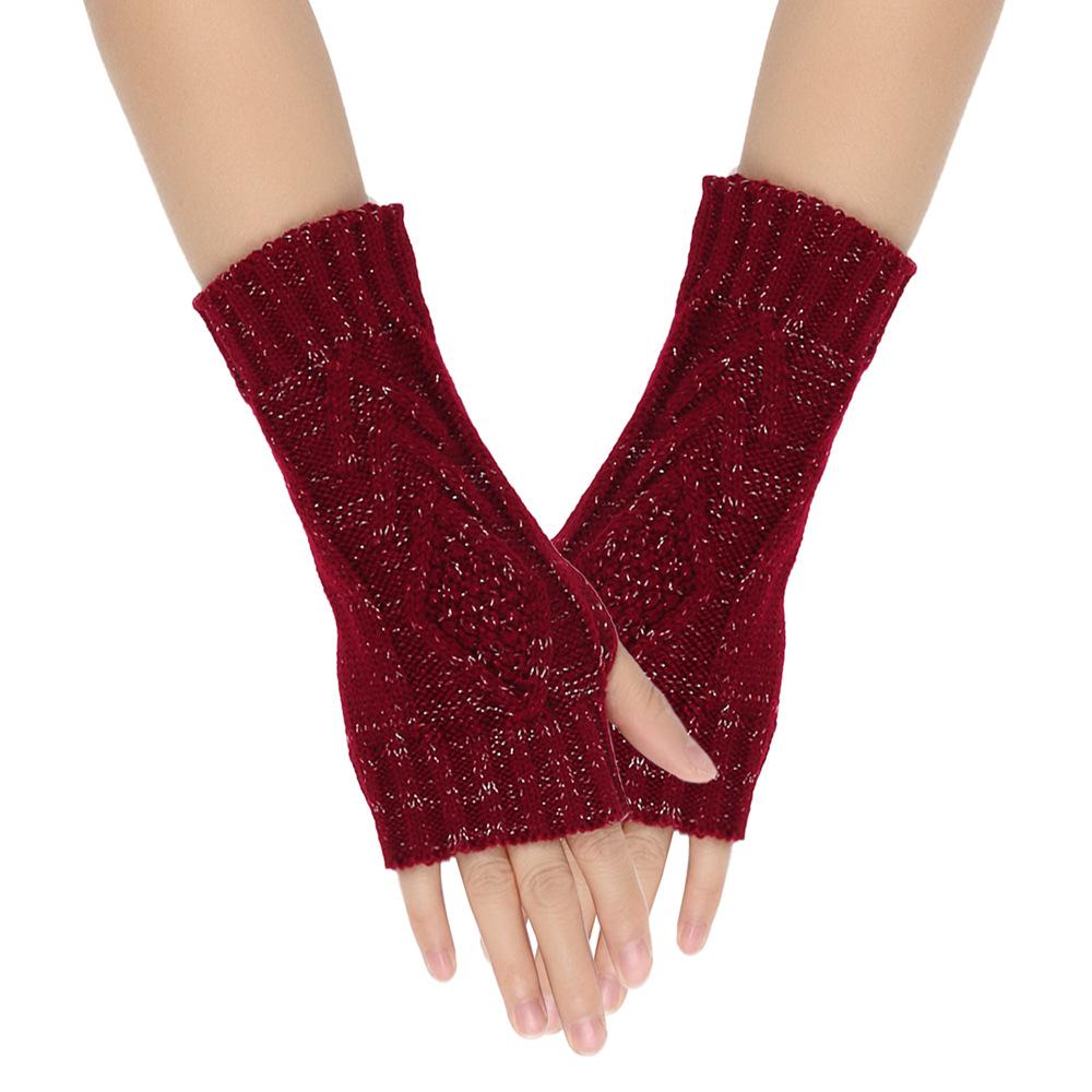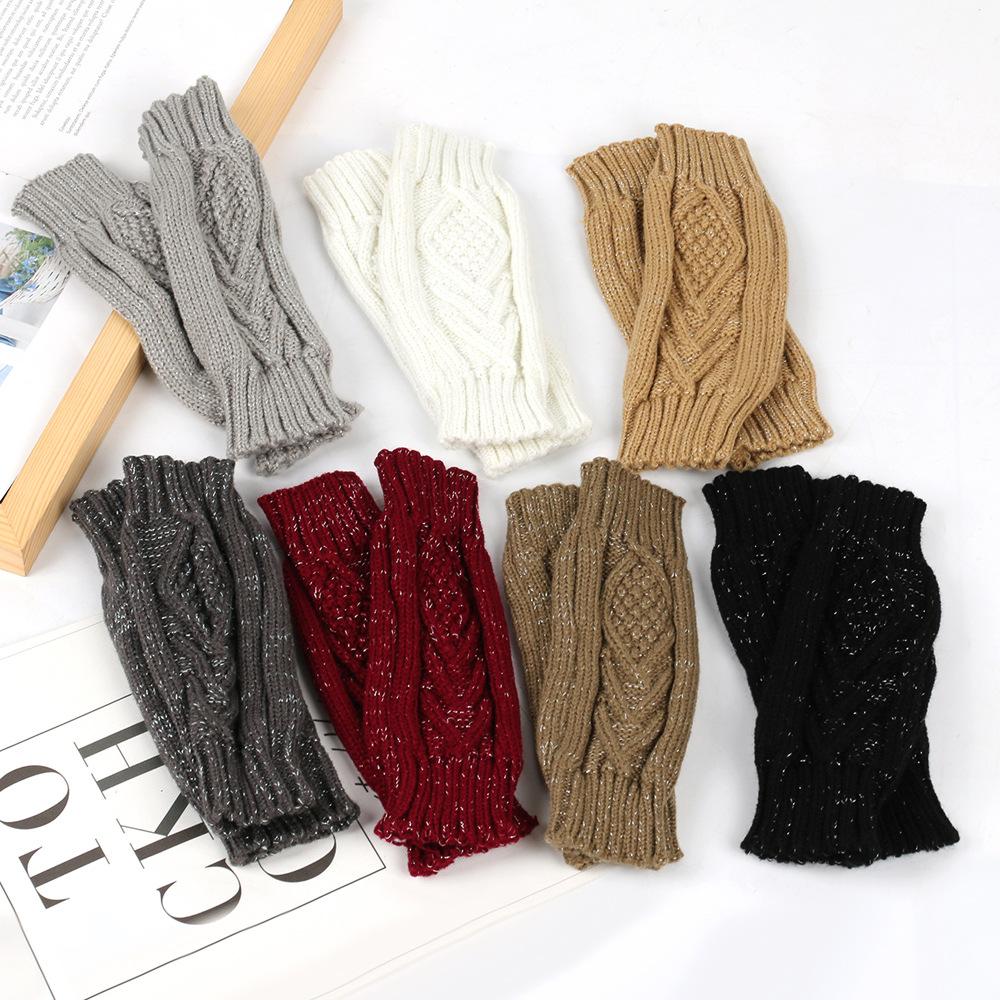 Compra Guantes de lana plateada brillante transfronterizos, guantes acrílicos con dedos con fugas en forma de diamante, guantes de punto cálidos de Amazon, guantes cálidos al por mayor en Joom.pro