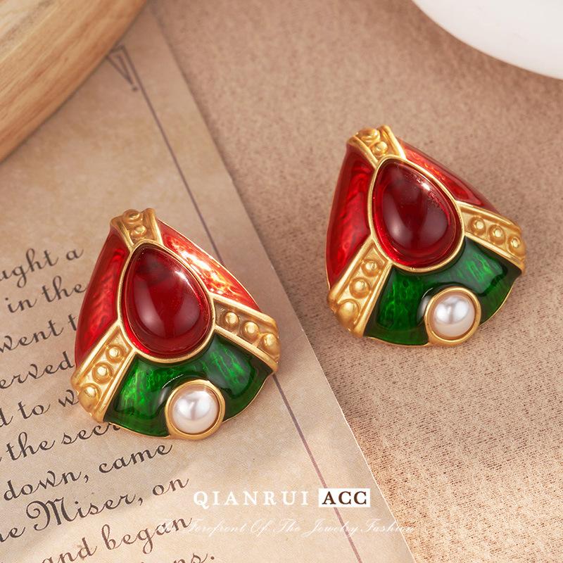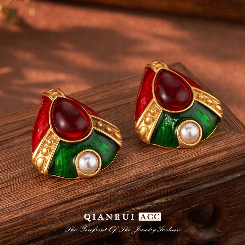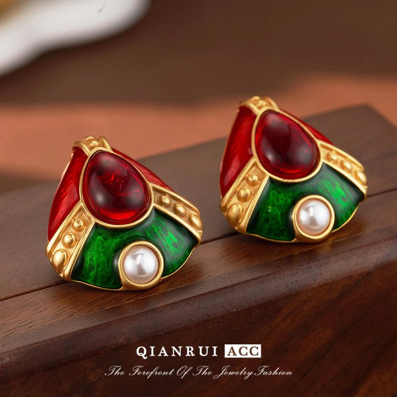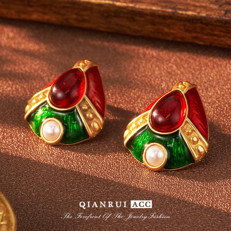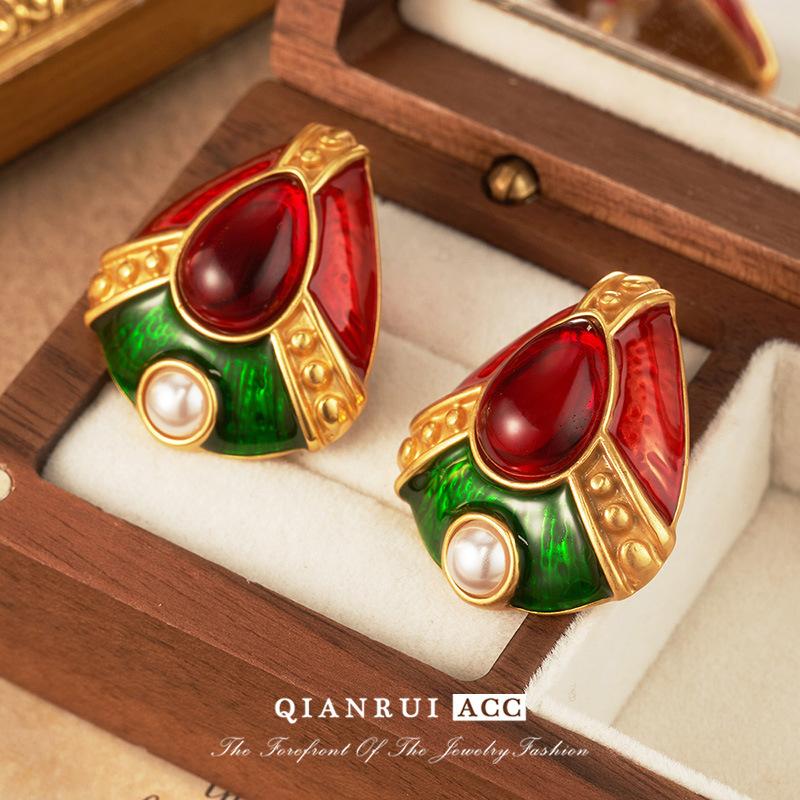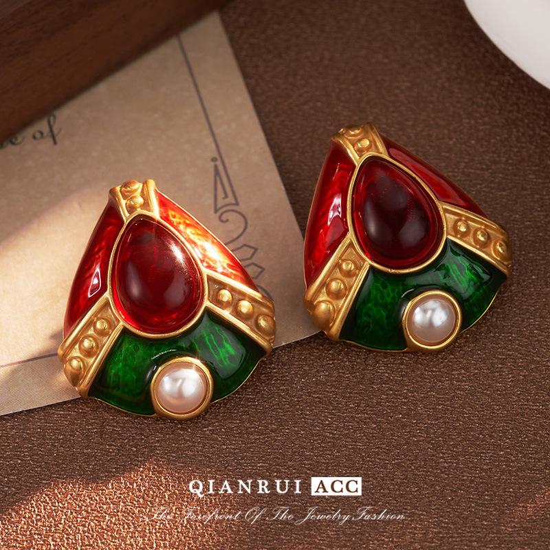 Aretes medievales antiguos vintage grabados aretes vintage esmalte glaseado gota glaseado estilo corte aretes de diosa