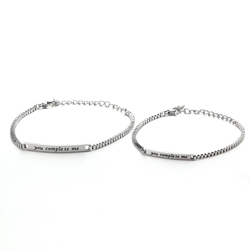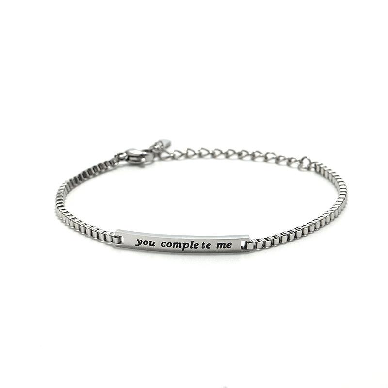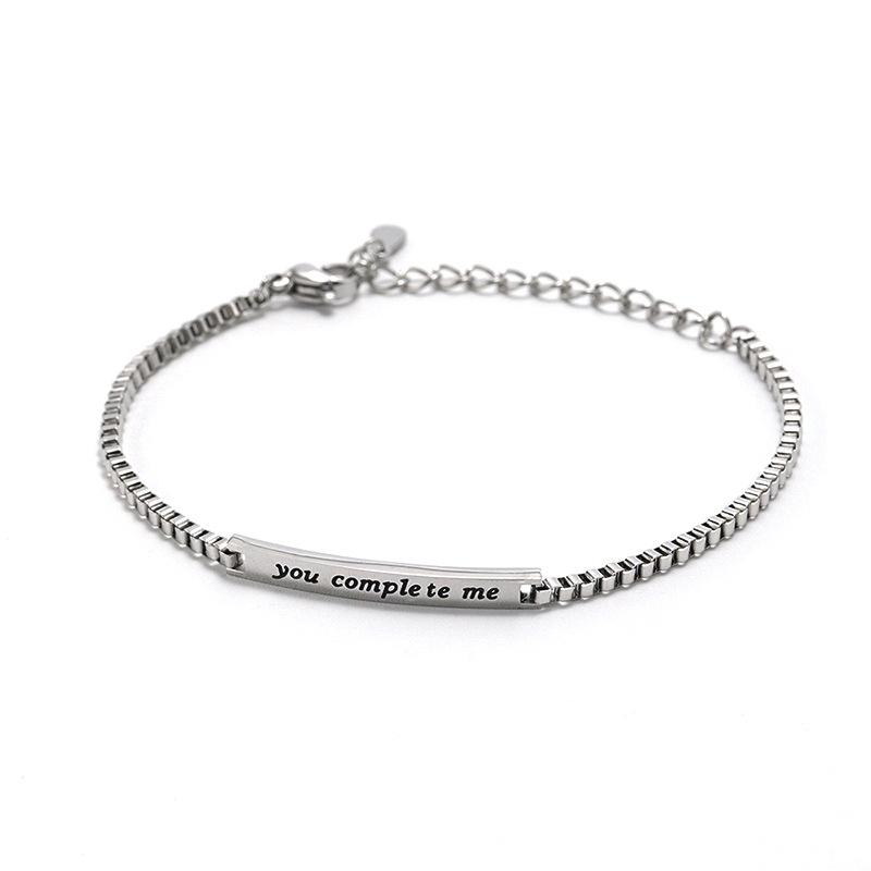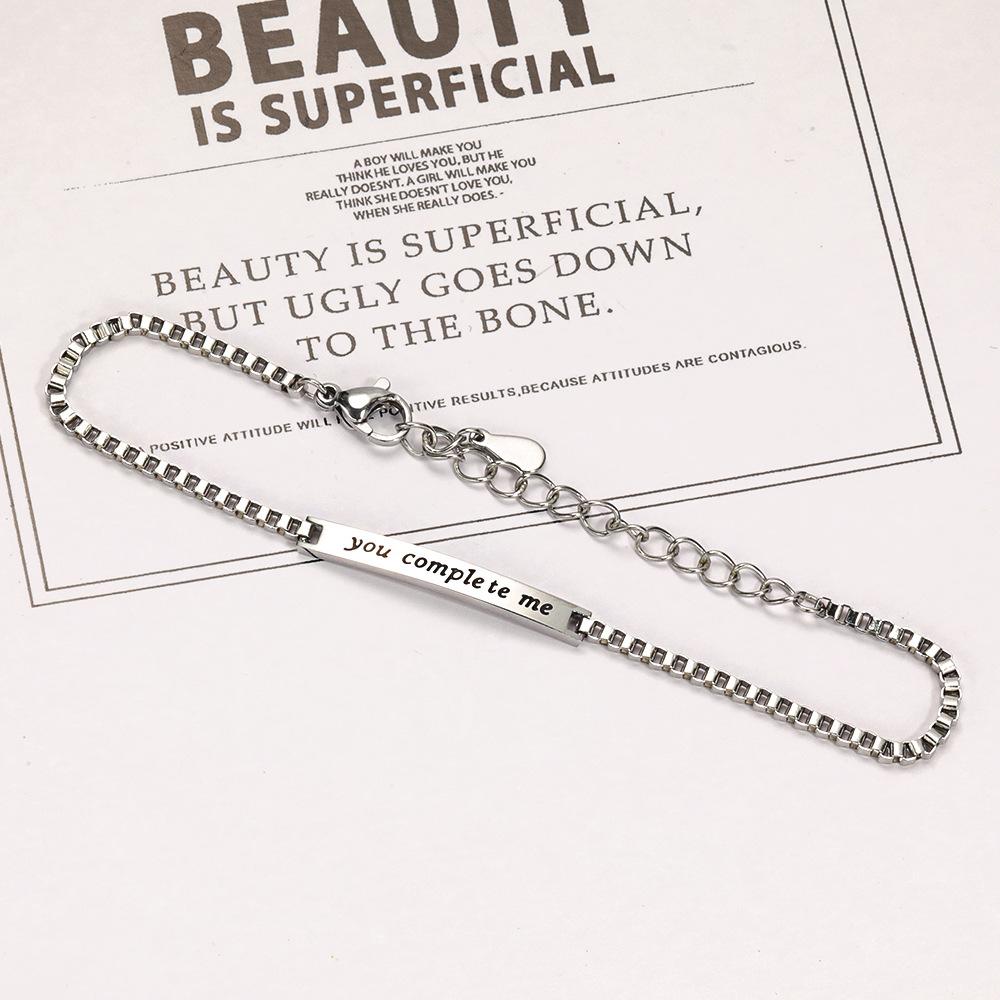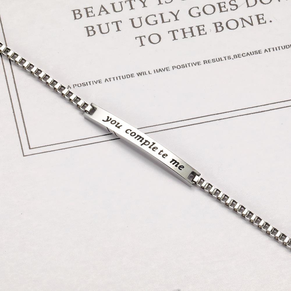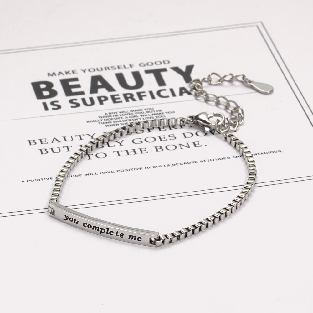 Versión coreana de ins nicho viento frío inglés me dejas completar pulsera de acero de titanio para pareja joyería de mano con letras de moda para mujer