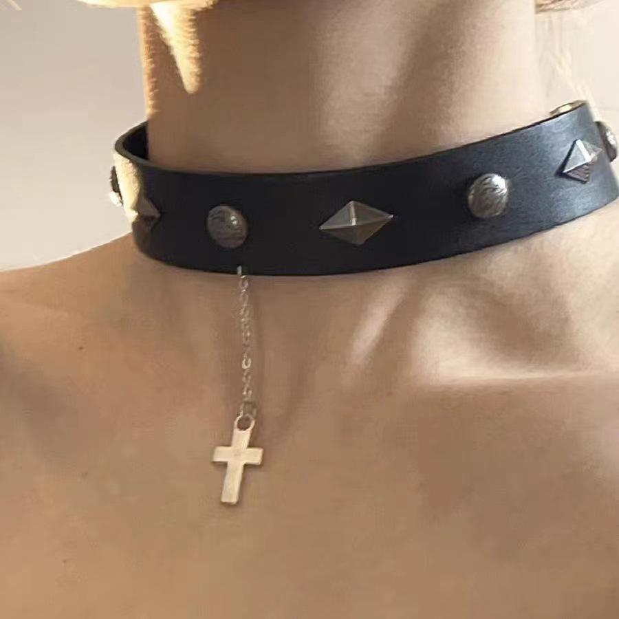 X0135B, Double layer leather collar x3947, Cross pendant stacked necklace x4044, Cat claw leather collar x4041...