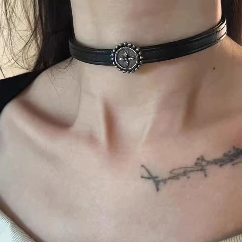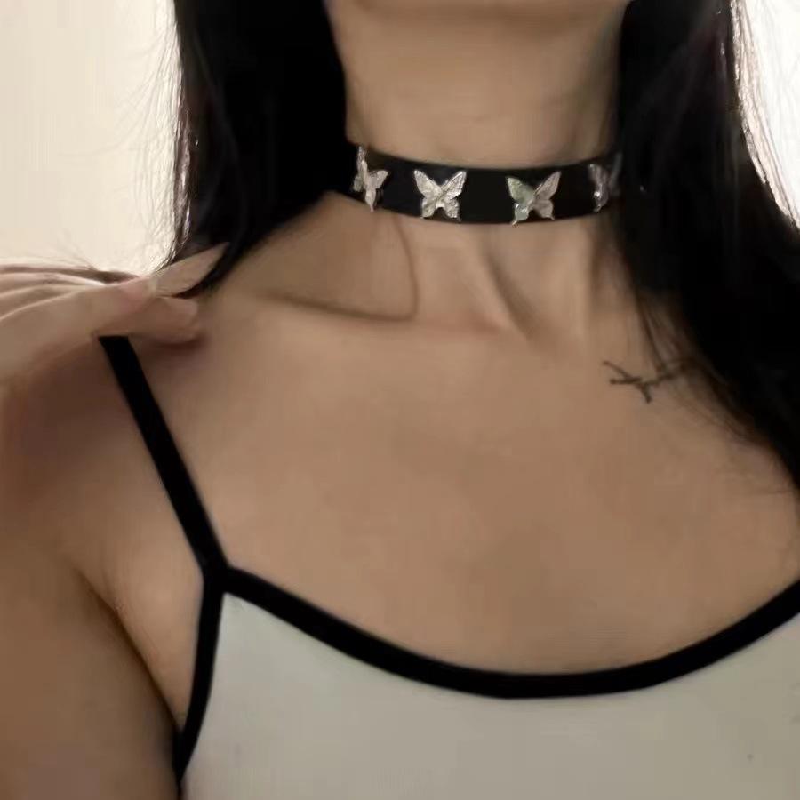Collar Europeo y Americano Transfronterizo Colgante Mariposa Gargantilla de Cuero Gótica Collar Y2K Punk Clavícula