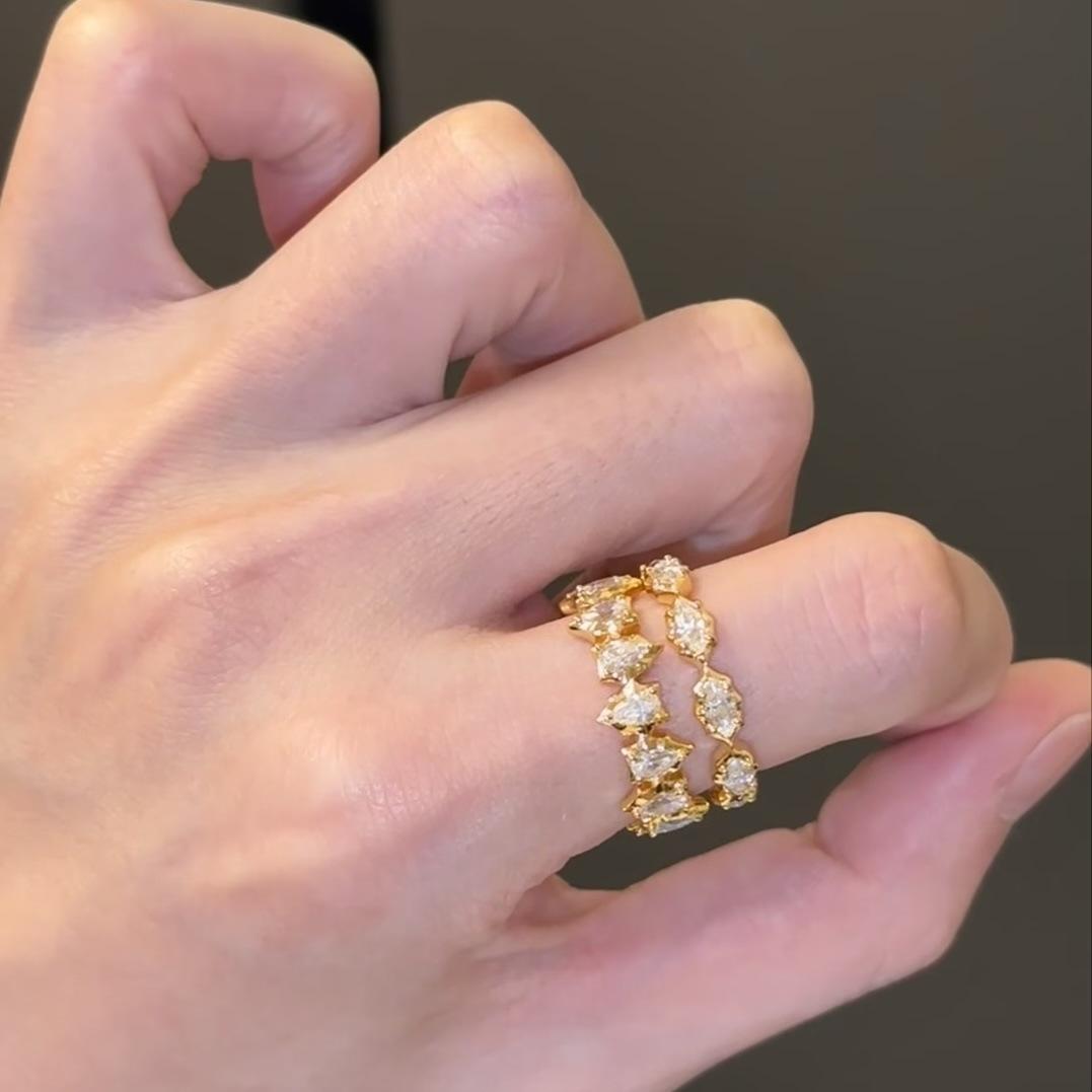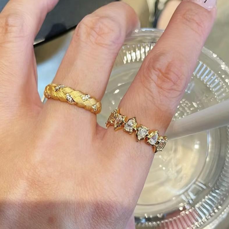 Anillo de lujo francés ligero y exquisito, nuevo anillo de ojo de caballo con diamantes, gota de agua extraviada, para verano, joyería de mano blanca a juego.