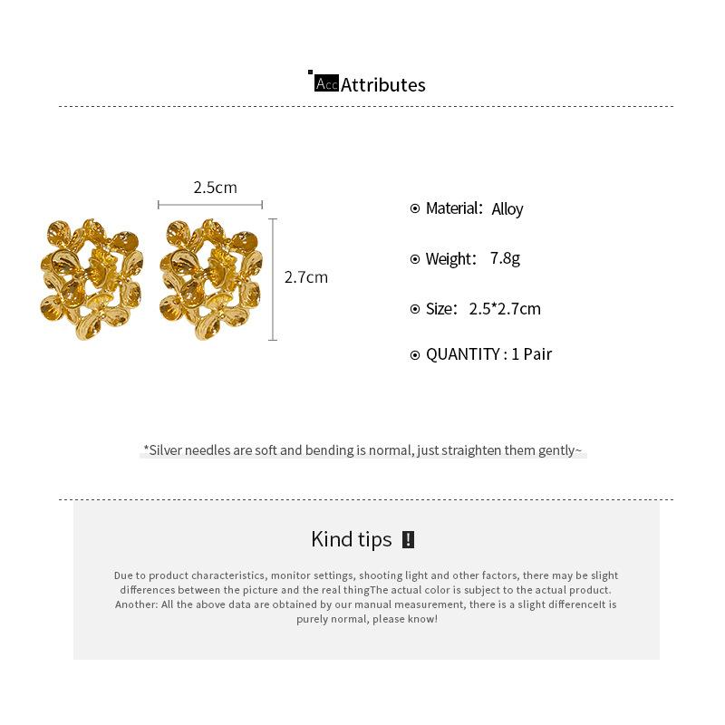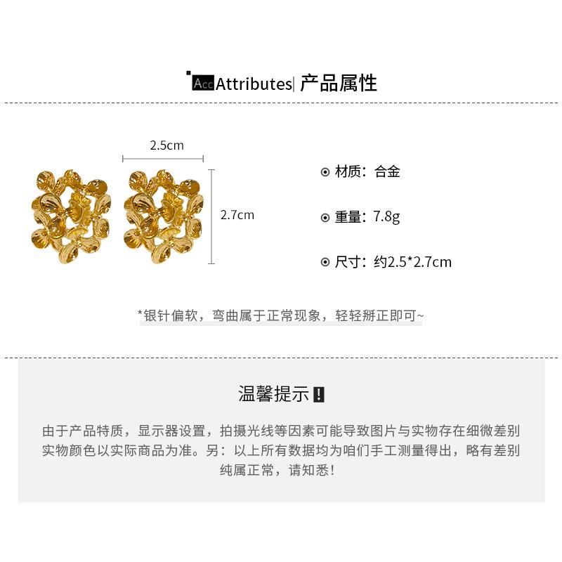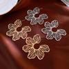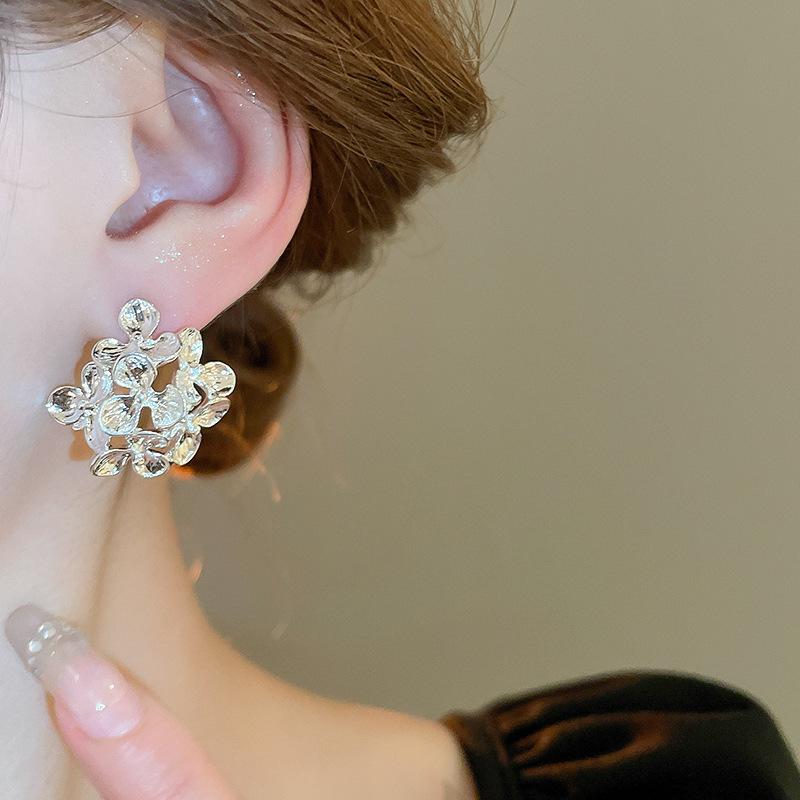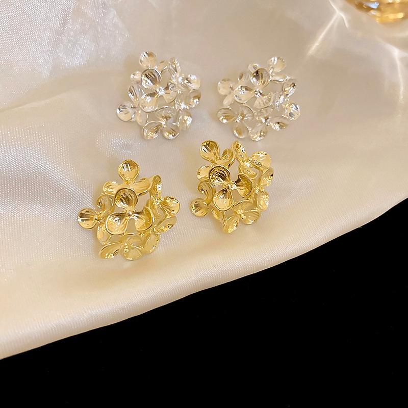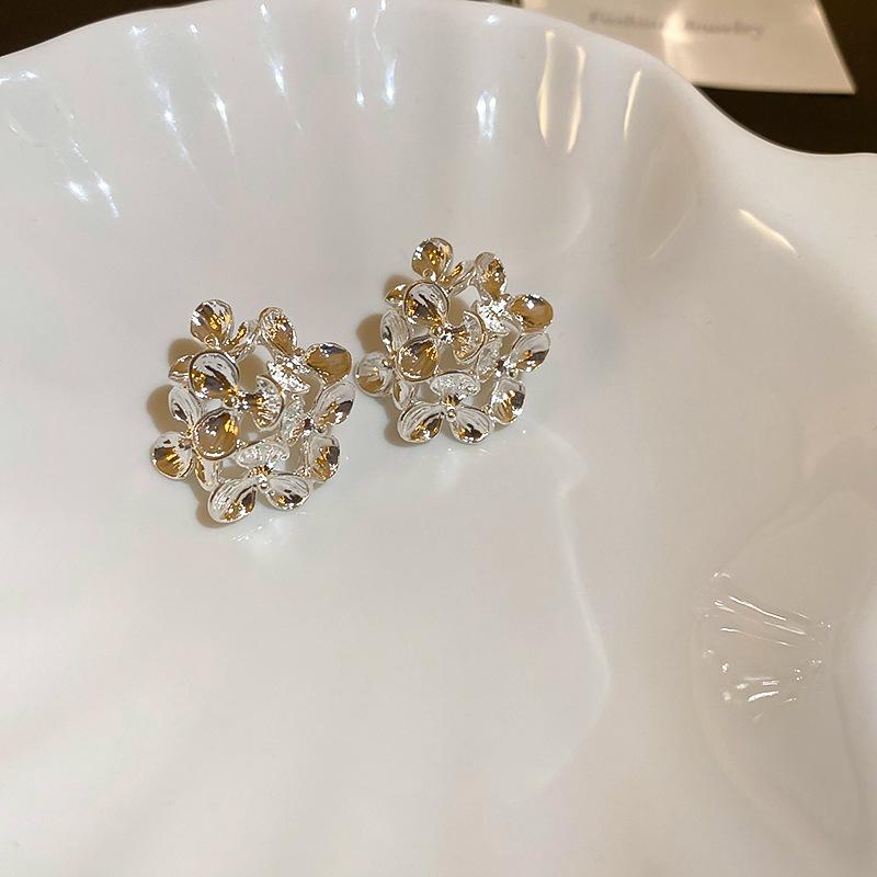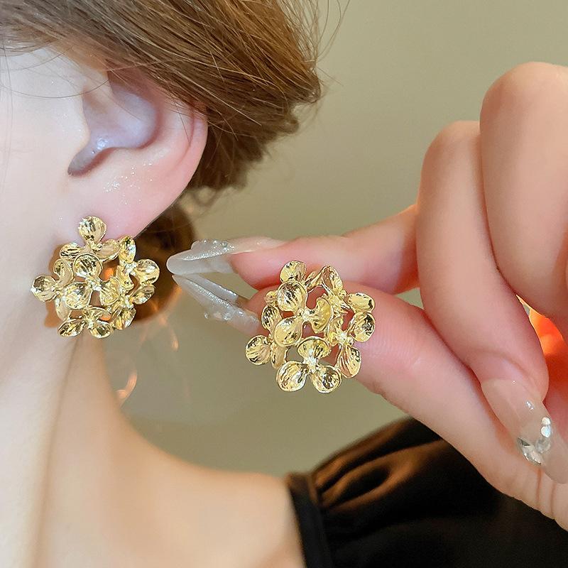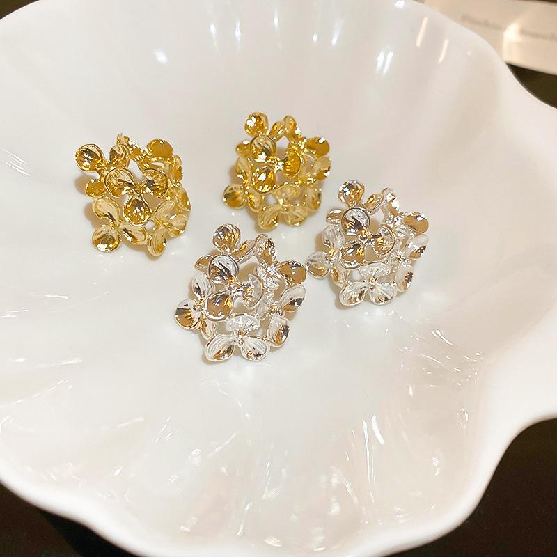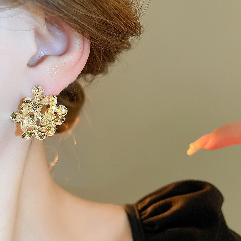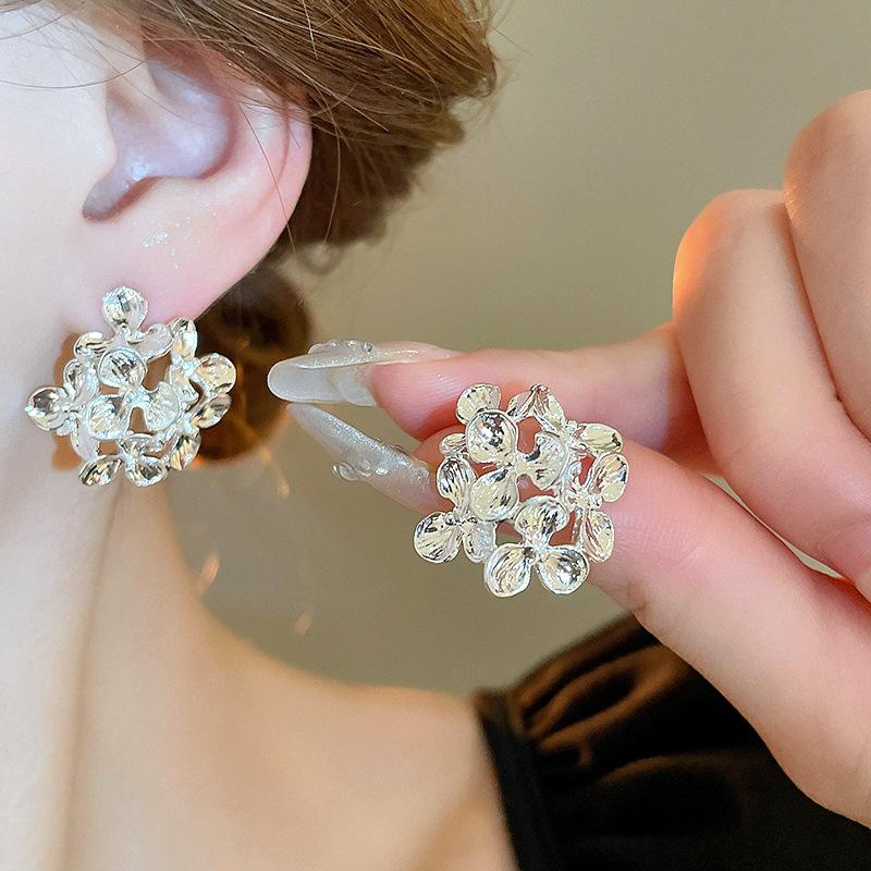 Aretes Metálicos Huecos de Flor de Gama Alta con Aguja de Plata Retro Francés Simple Nicho Elegantes Geométricos para Mujer