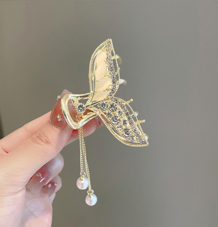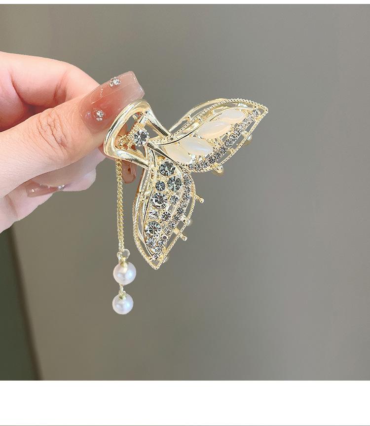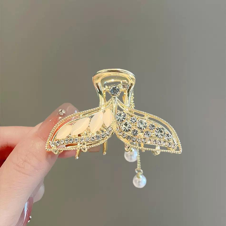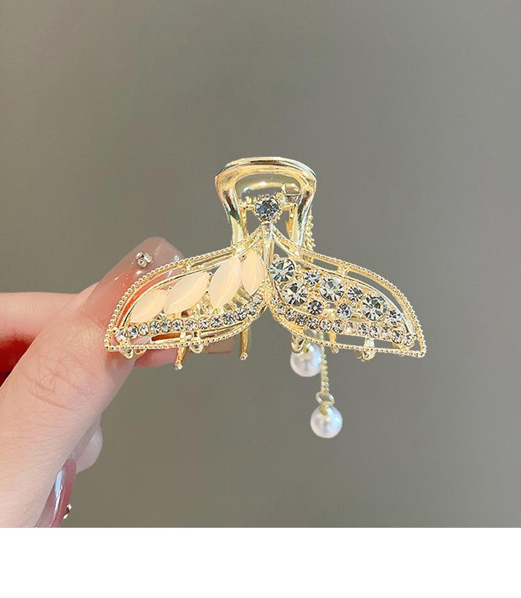Pinza para el Cabello con Borla Cola de Pez para Mujer de Alto Sentido Mediana Tipo Pinza Temperamento Parte Posterior de la Cabeza Medio Cabello Pinza de Tiburón Tocado Pinza para el Cabello