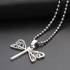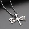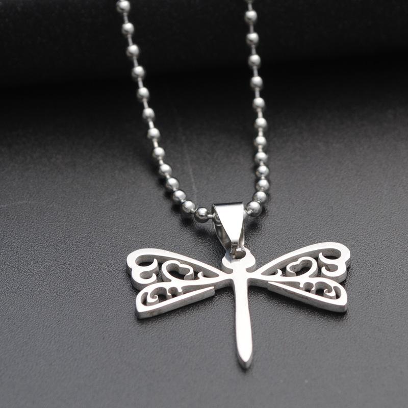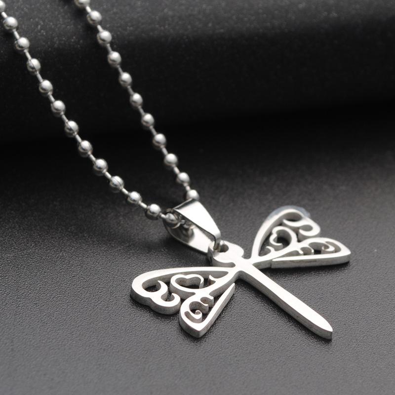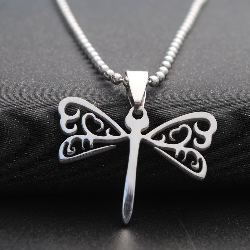 Collar de joyería europea y americana de estilo coreano para hombres y mujeres, colgante de acero de titanio, colgante de acero inoxidable, libélula hueca, accesorios de moda