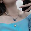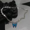 Collar de mariposa dulce y fresco para mujer con costura de perlas, diseño de nicho, cadena de clavícula de estilo hip-hop de alta calidad.