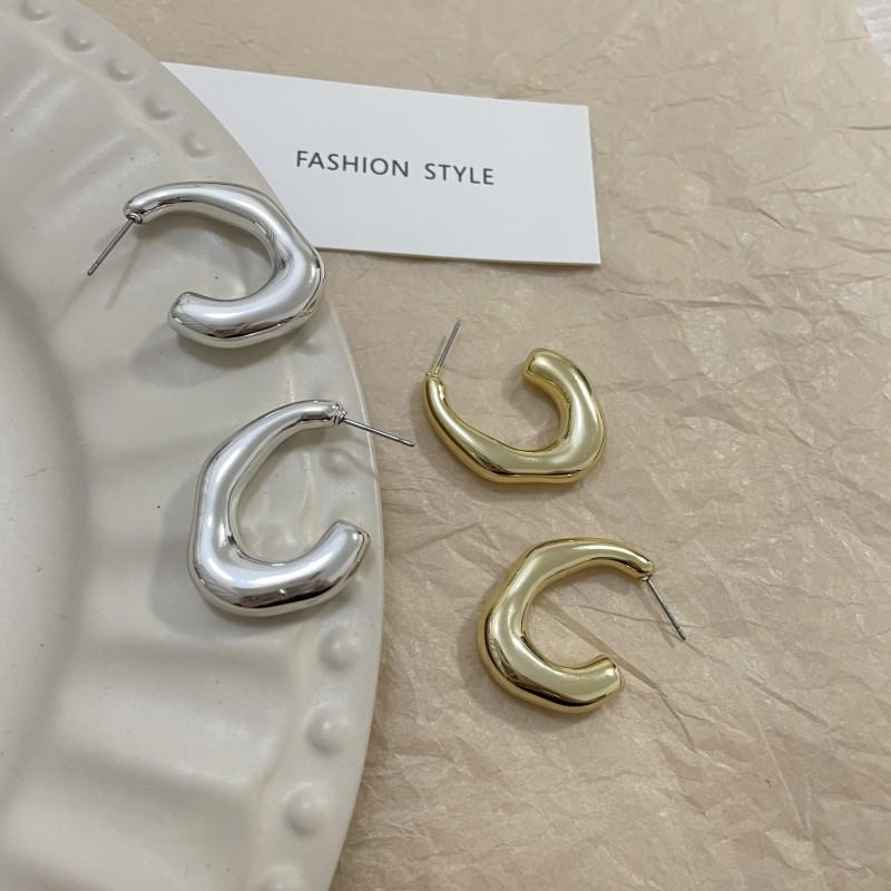 Pendientes geométricos irregulares en forma de C, exquisitos y ligeros de lujo, diseño de nicho de temperamento de moda para mujer, joyería de oído de alta calidad