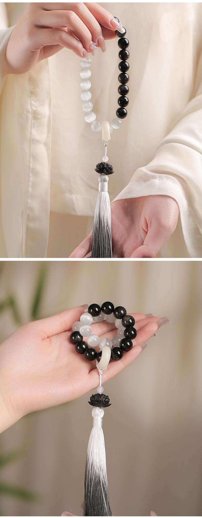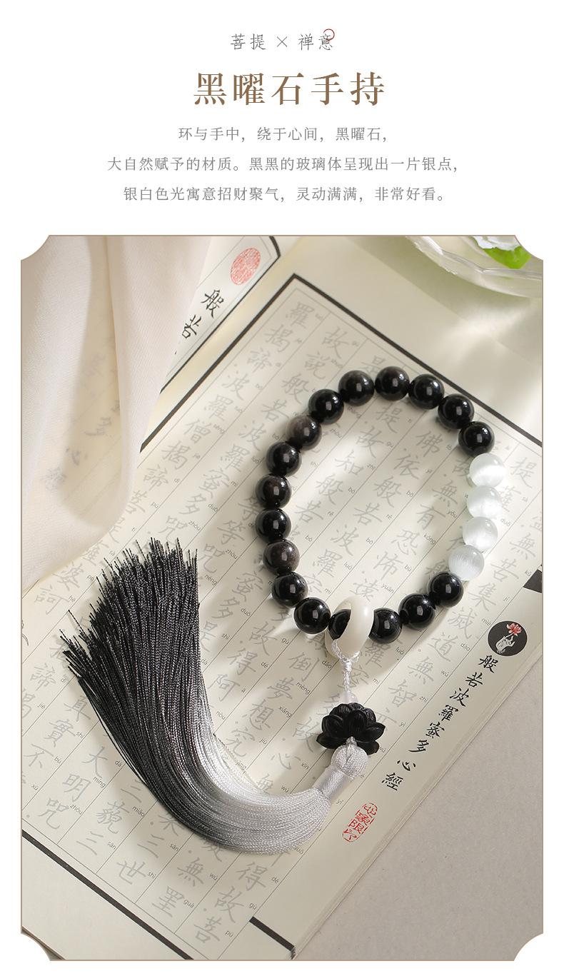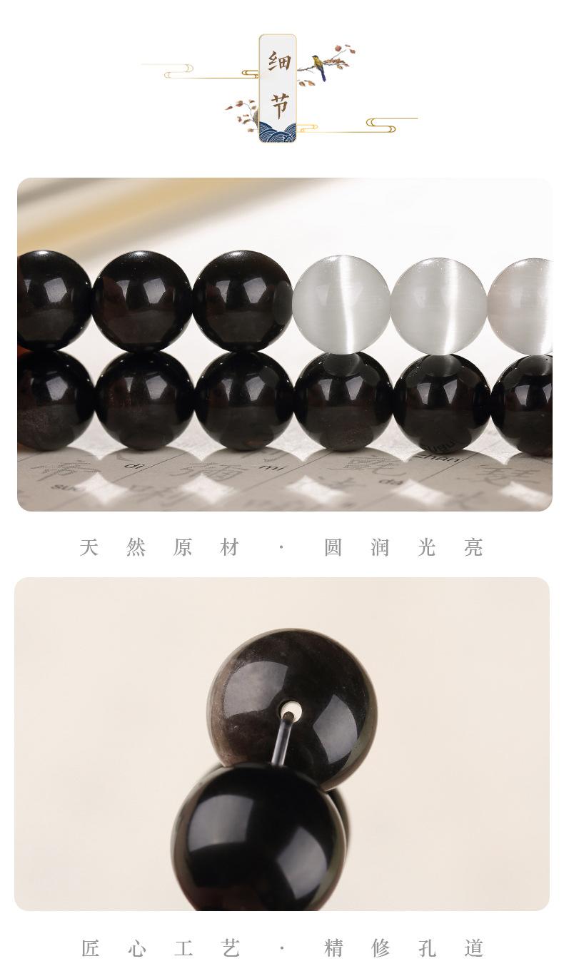 Pulsera de meditación de obsidiana de mano, rosario para mujer, juego de placa para hombre, pulsera de obsidiana plateada, ojo de gato blanco para estudiante