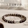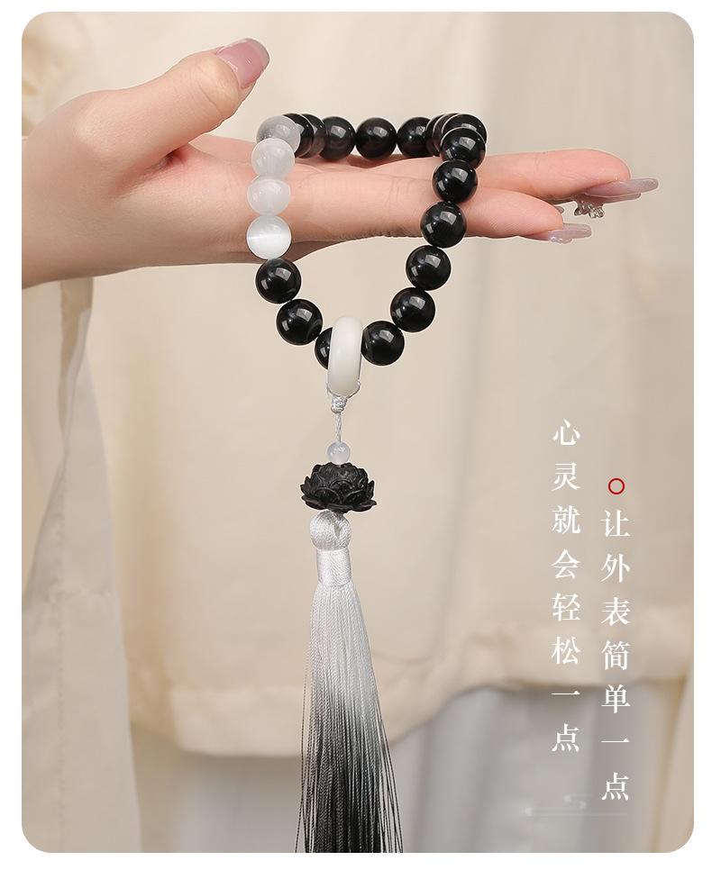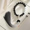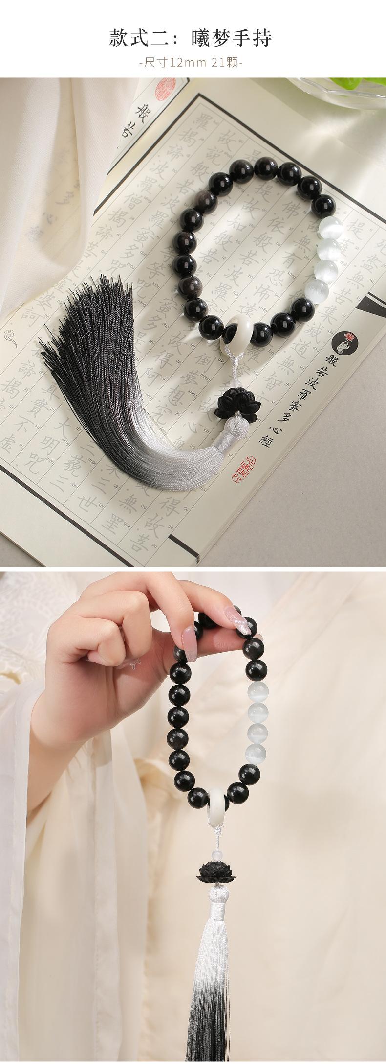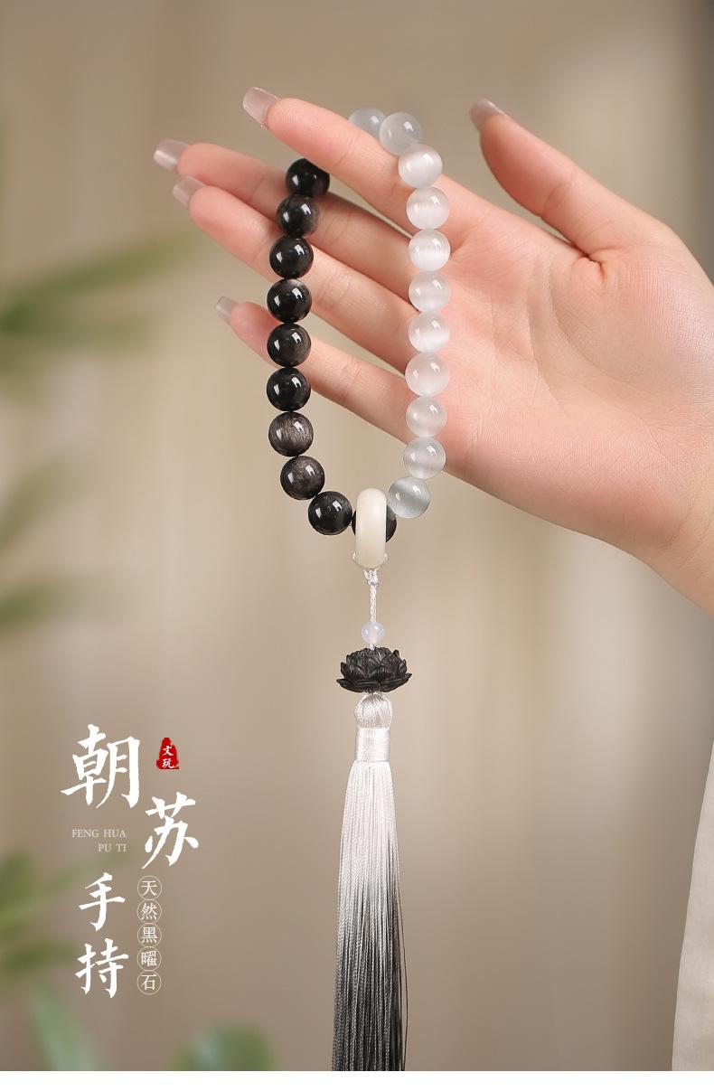 Pulsera de meditación de obsidiana de mano, rosario para mujer, juego de placa para hombre, pulsera de obsidiana plateada, ojo de gato blanco para estudiante