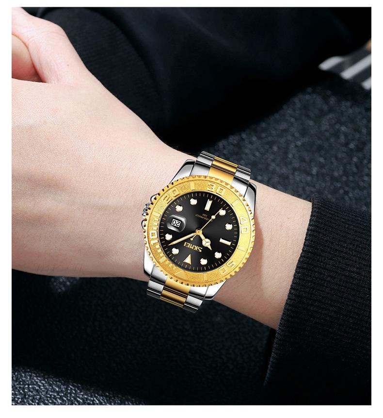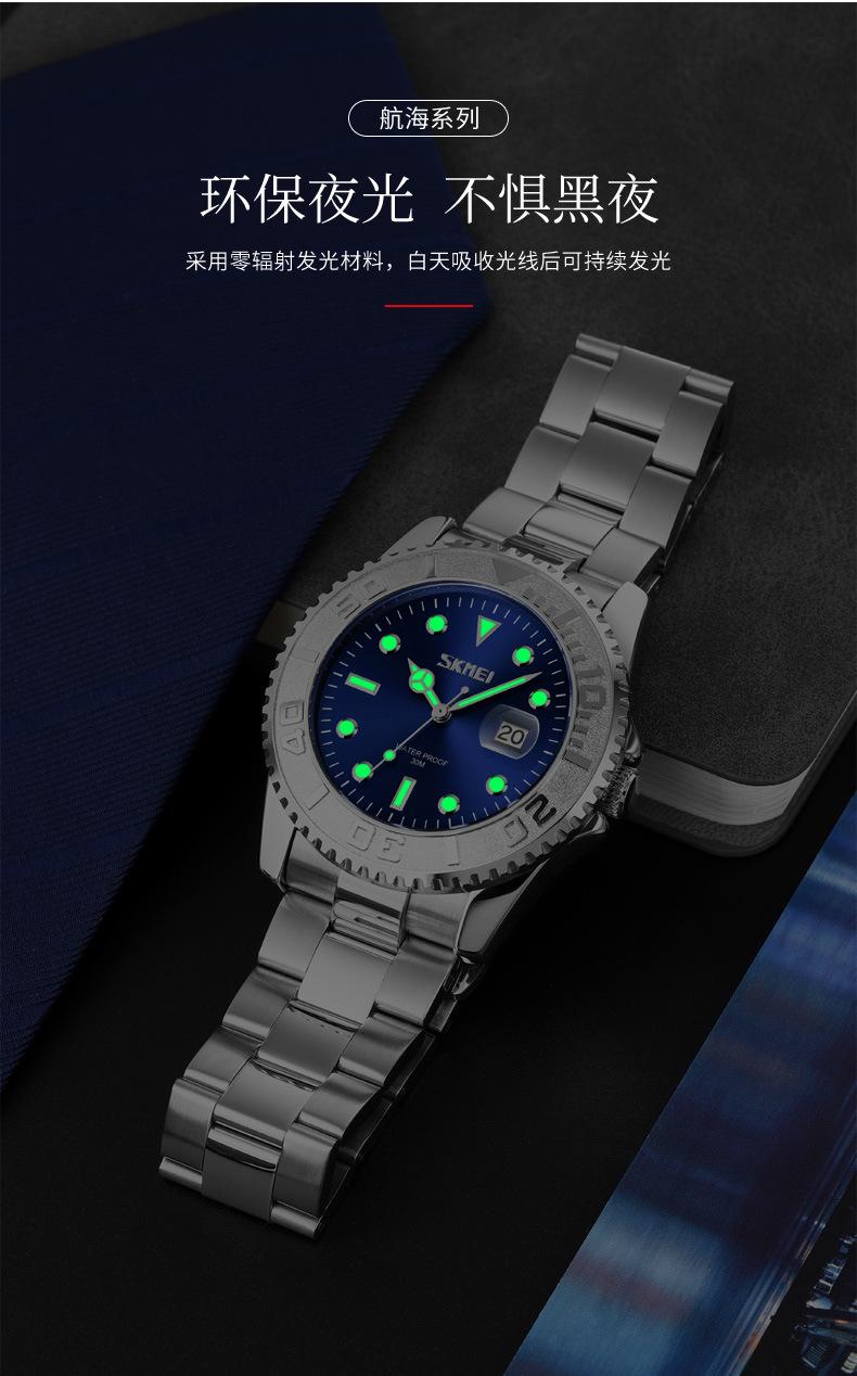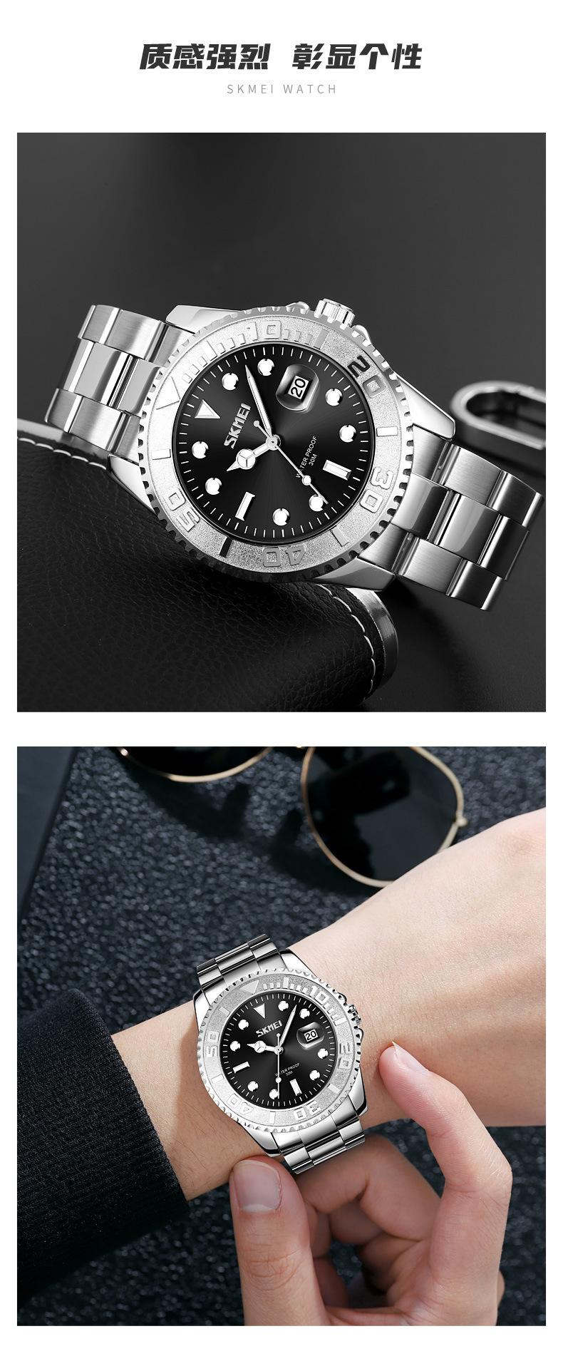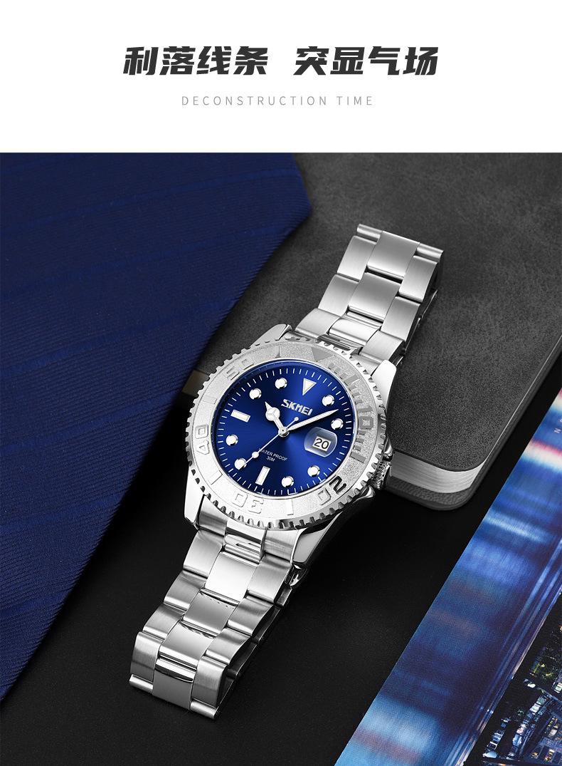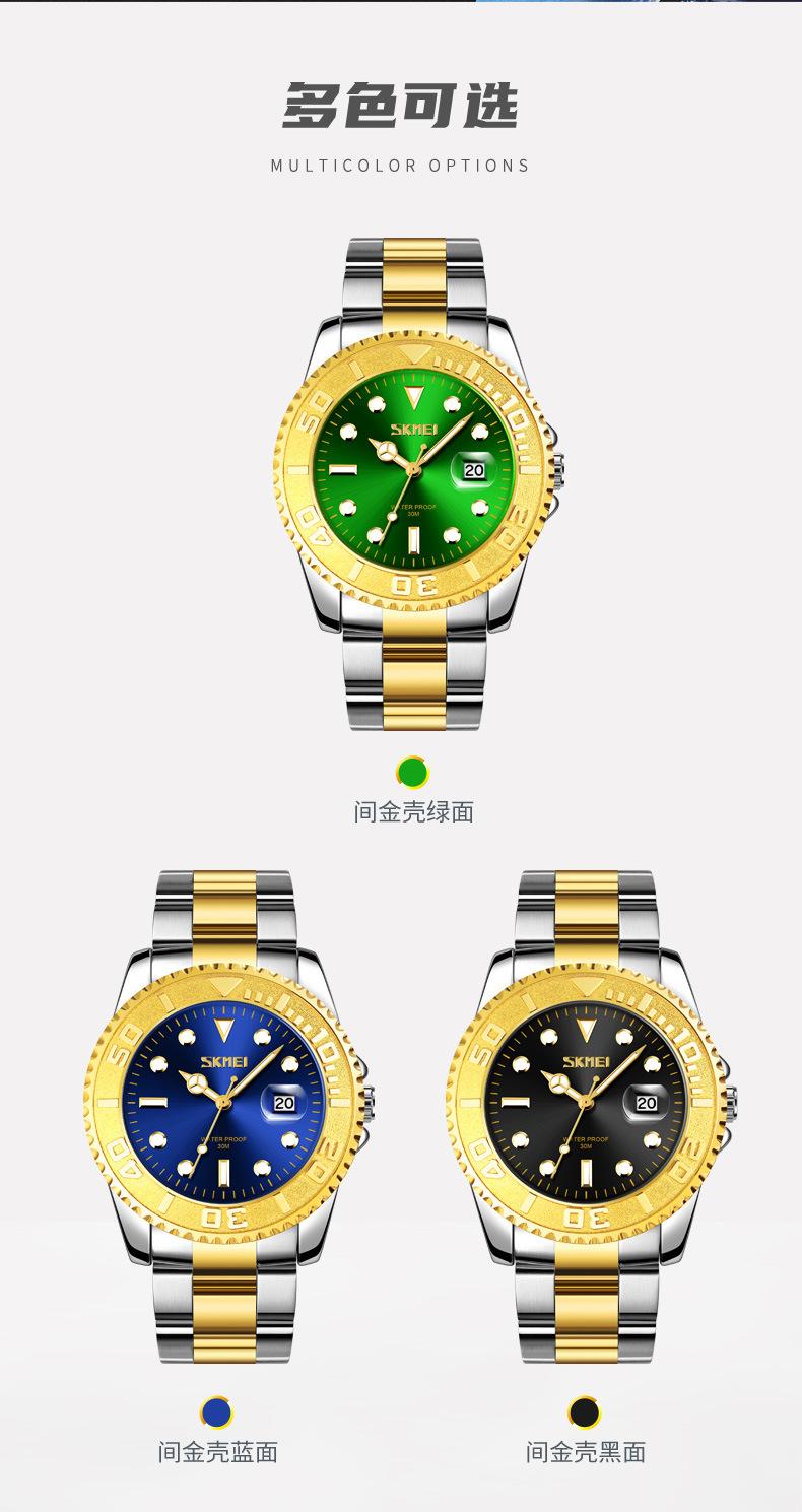 Reloj de cuarzo Skmei con esfera de puntero luminoso verde 'Fantasma de Agua', correa de acero sólido, reloj de hombre con calendario para negocios