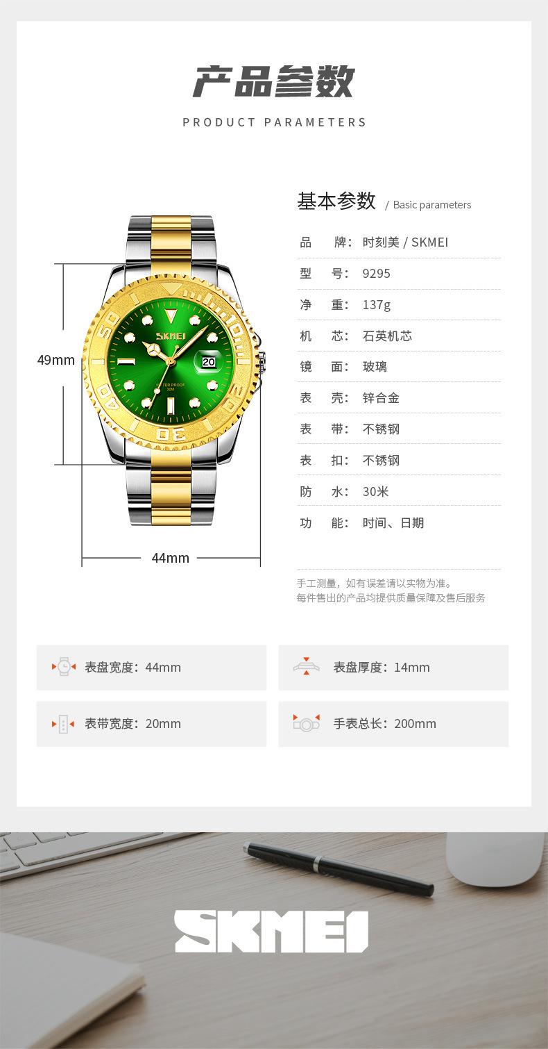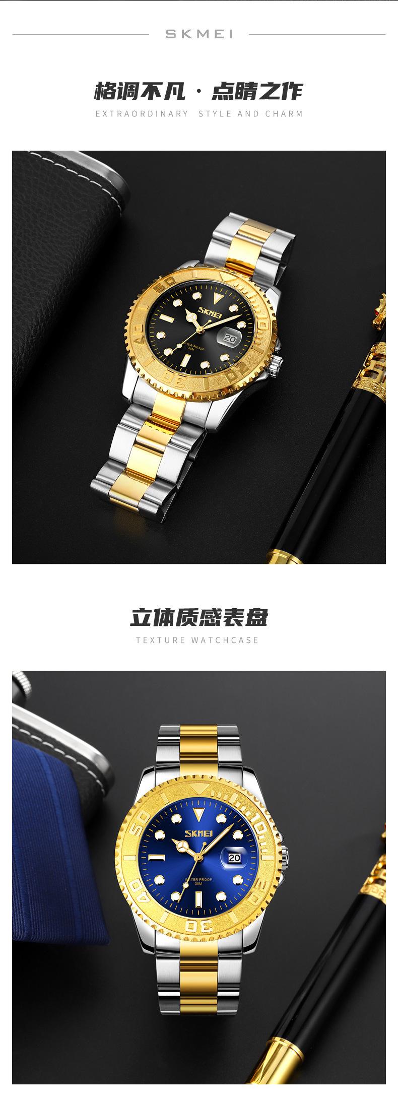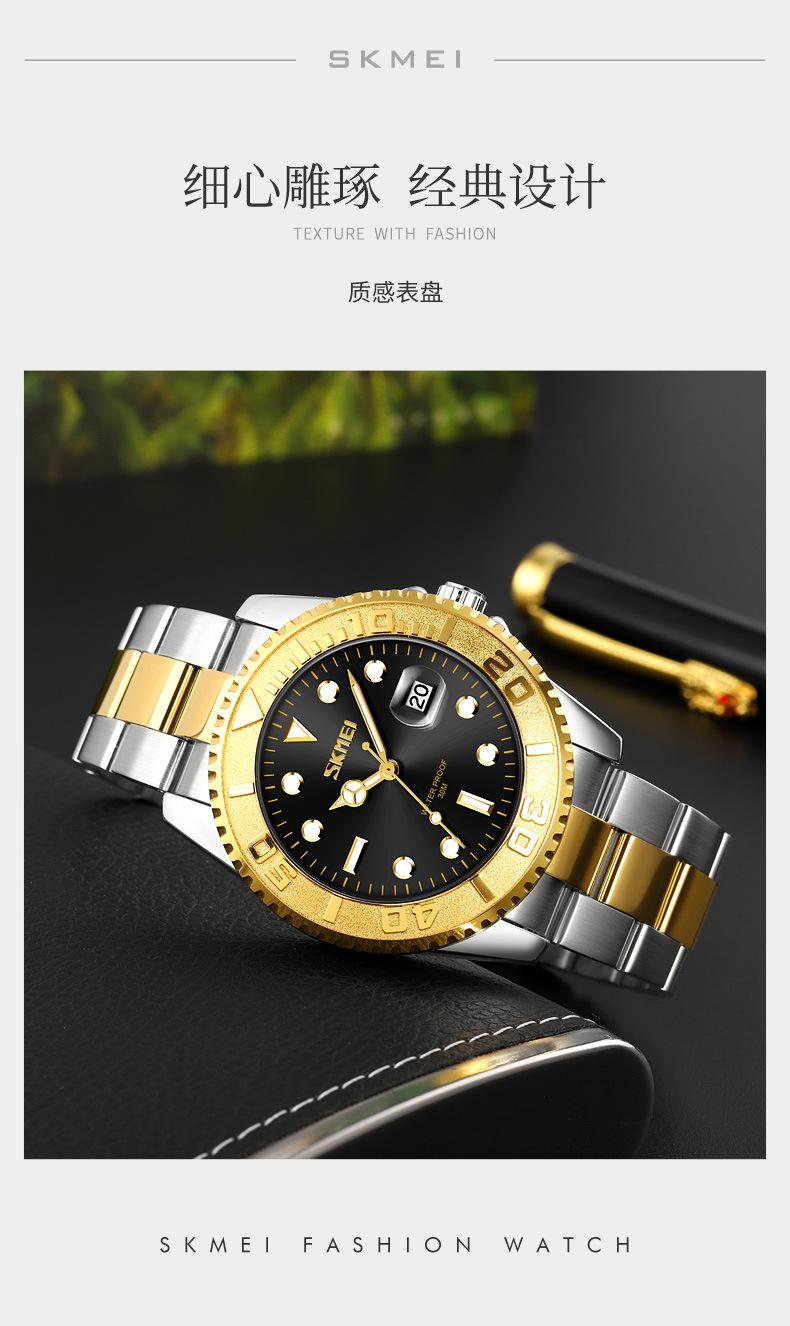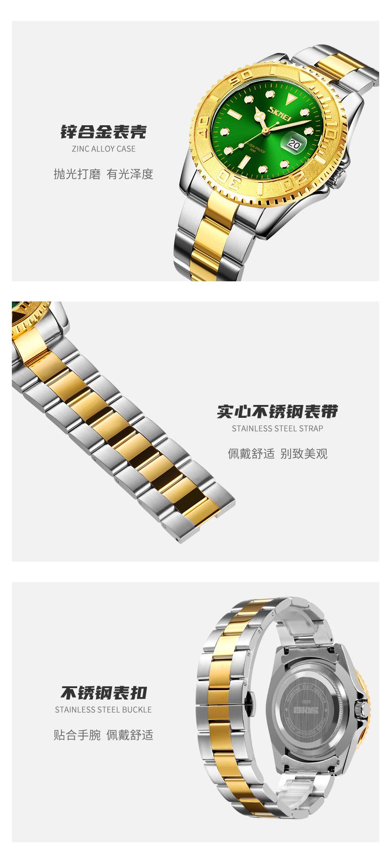 Reloj de cuarzo Skmei con esfera de puntero luminoso verde 'Fantasma de Agua', correa de acero sólido, reloj de hombre con calendario para negocios