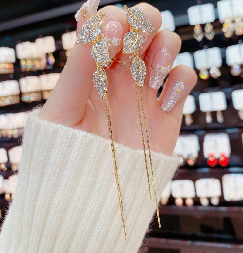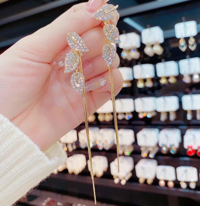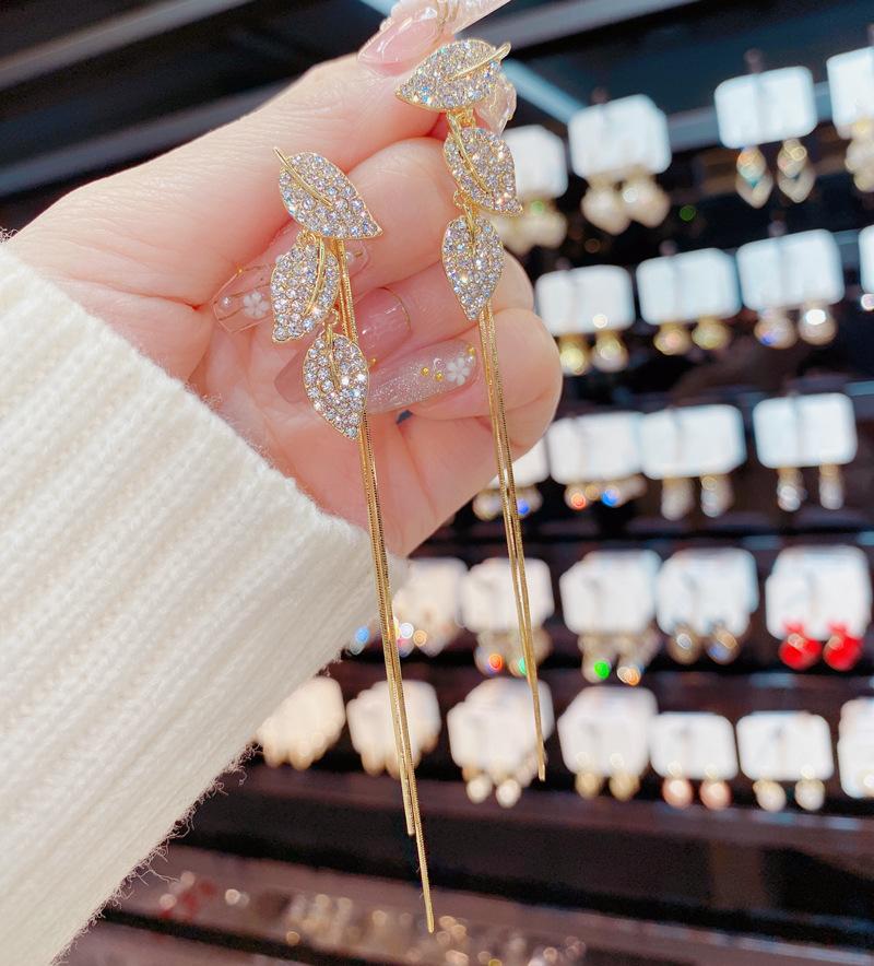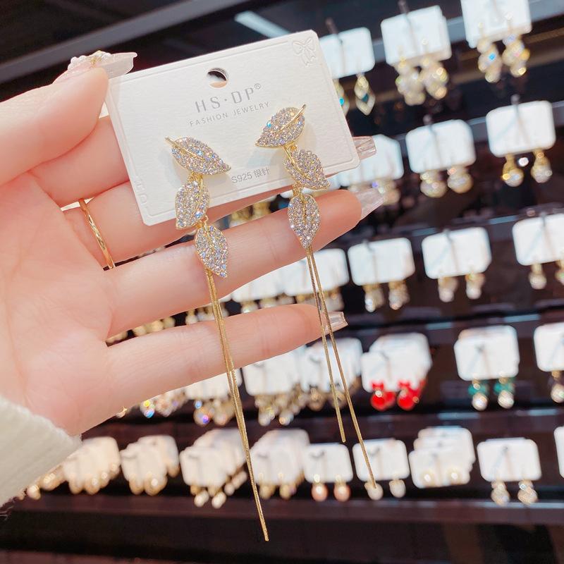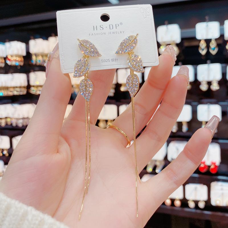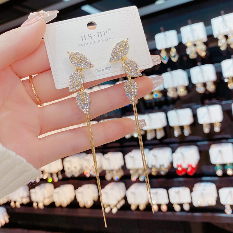 Compra Pendientes de plata s925 con borlas y hojas de diamante coreano, diseño de nicho único y moderno, de alta calidad, 2023 al por mayor en Joom.pro