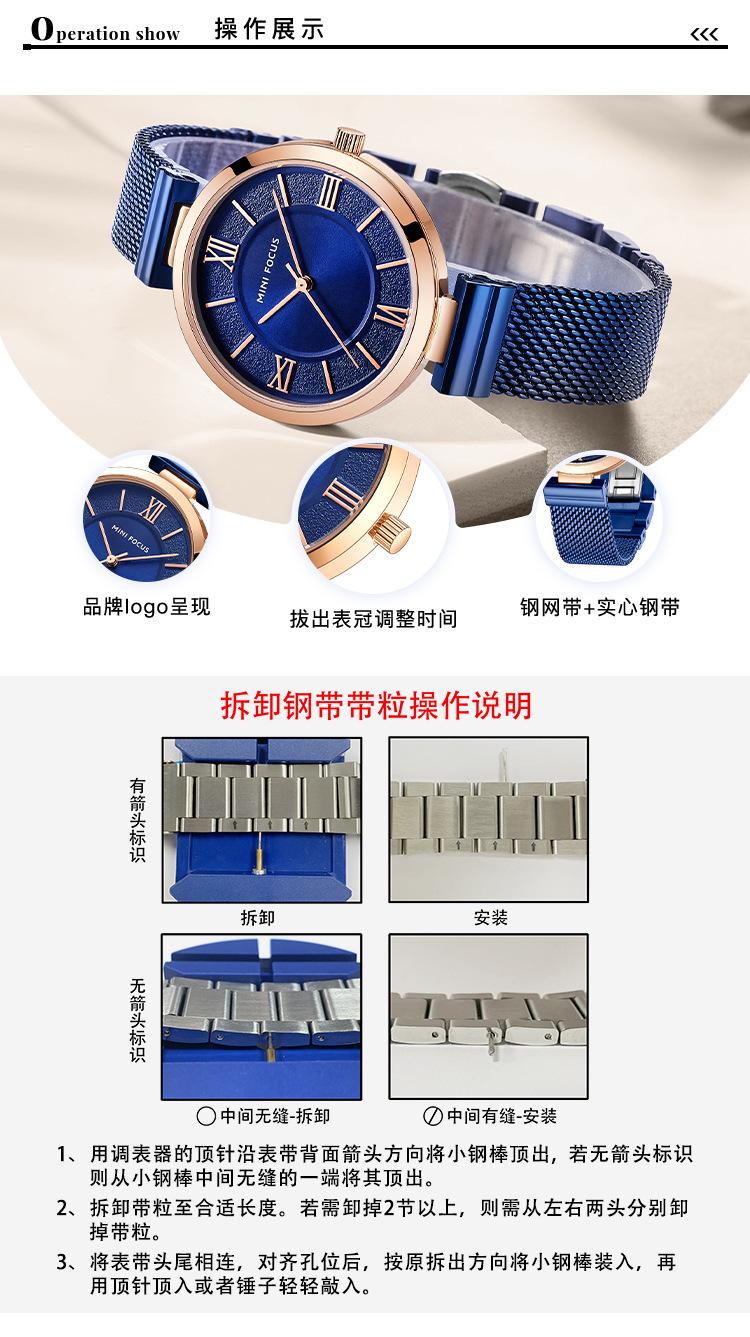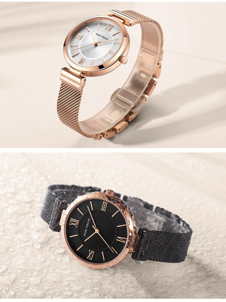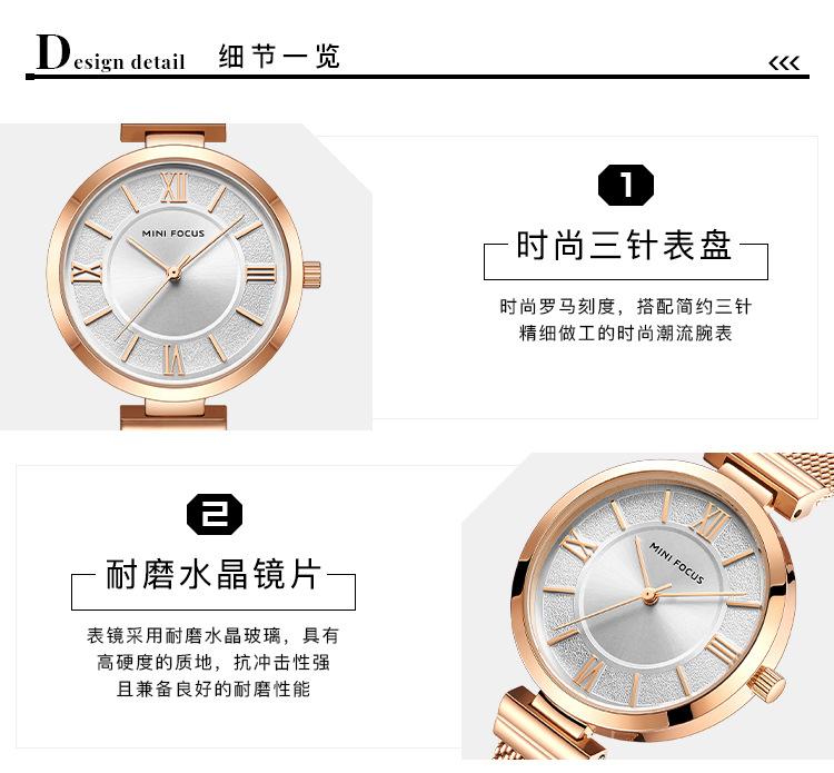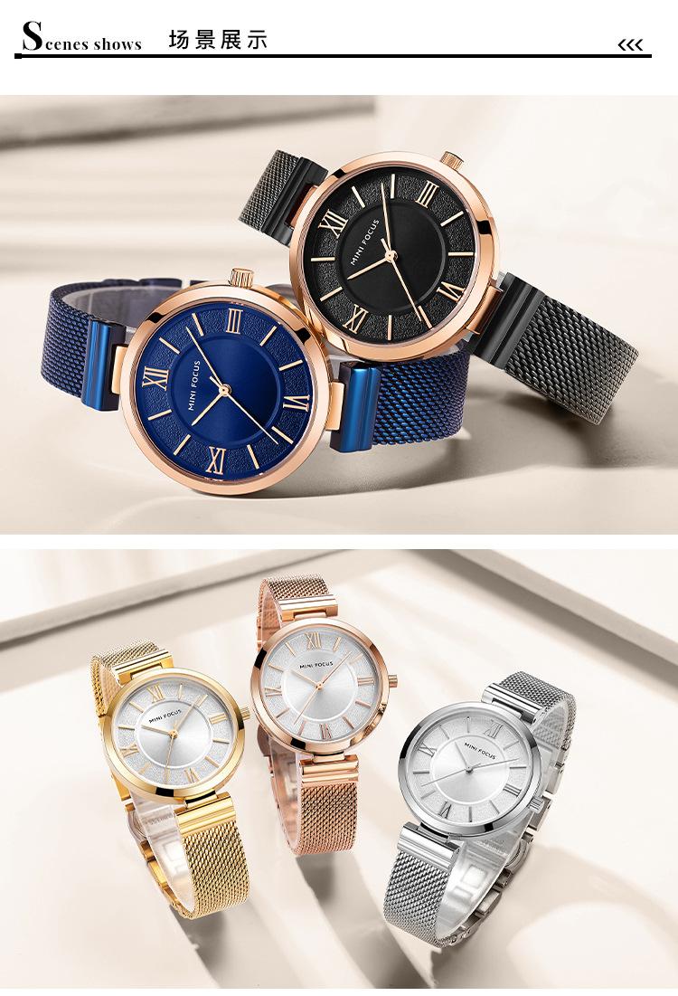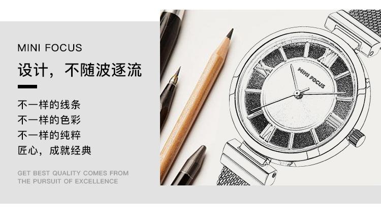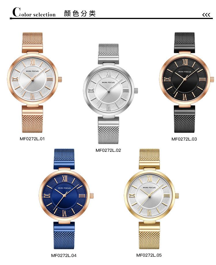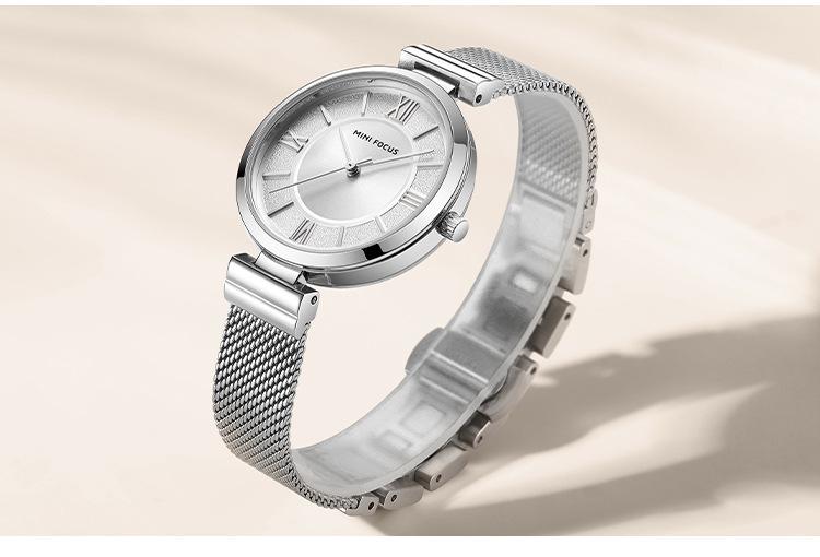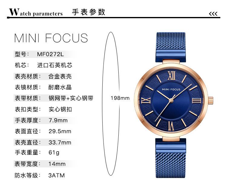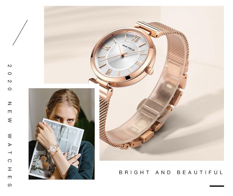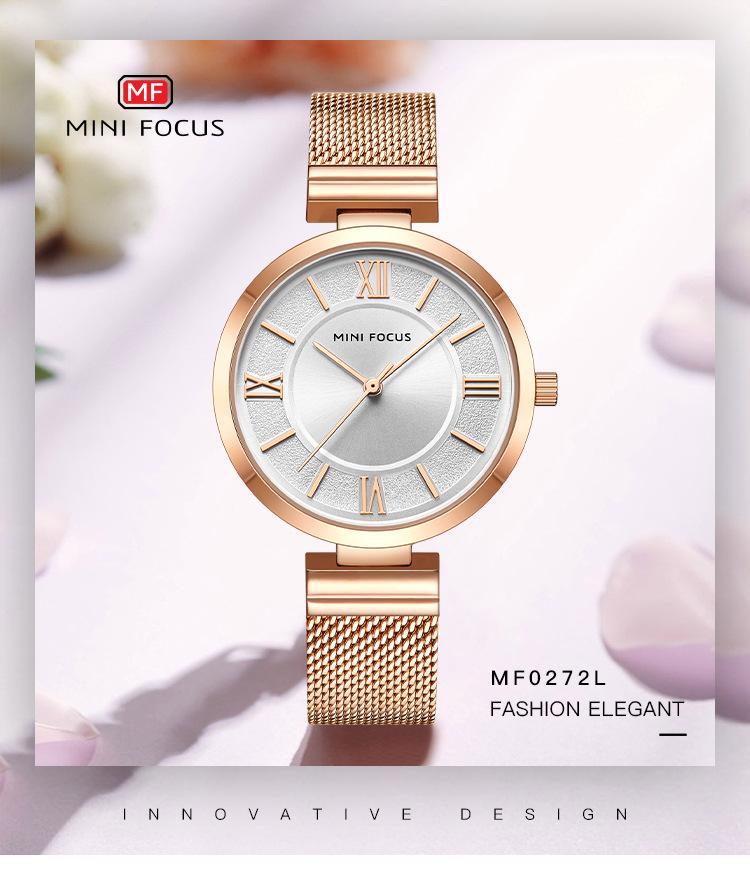 Compra Reloj de mujer sencillo de la marca MINI FOCUS, esfera pequeña, movimiento japonés, correa de malla de acero resistente al agua, reloj de mujer 0272L al por mayor en Joom.pro