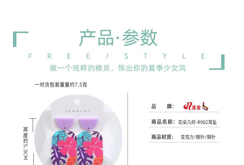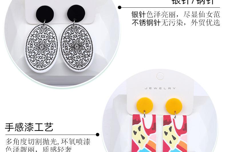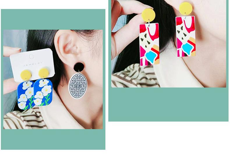 Nuevos pendientes acrílicos con estampado geométrico de flores, pendientes sencillos, modernos, rectangulares y ovalados.