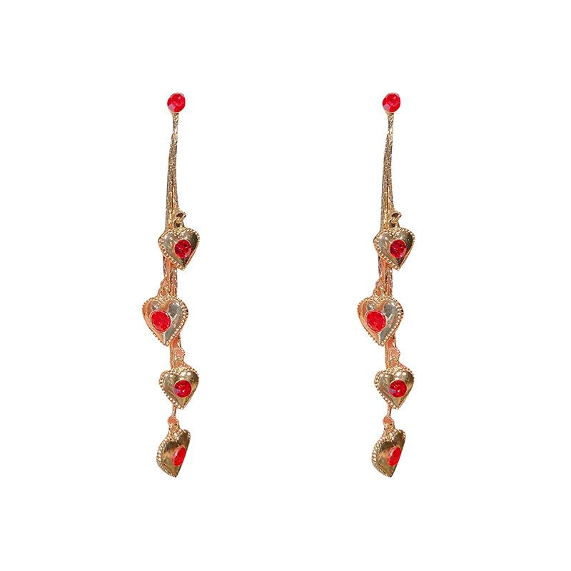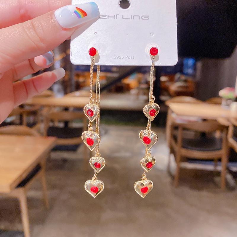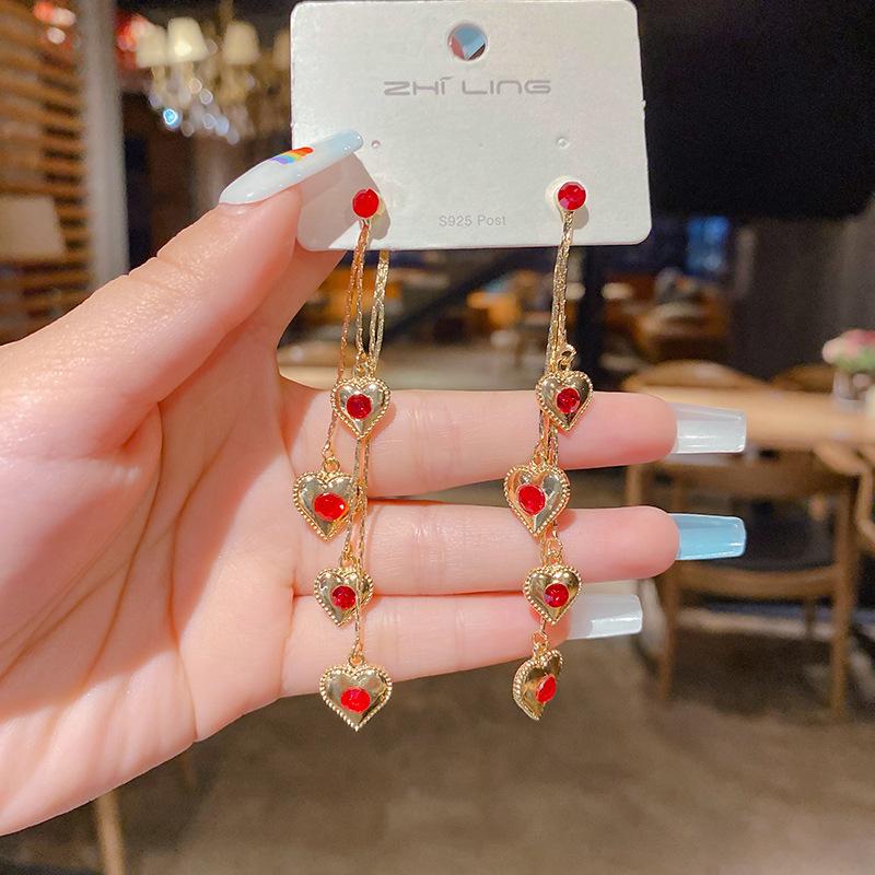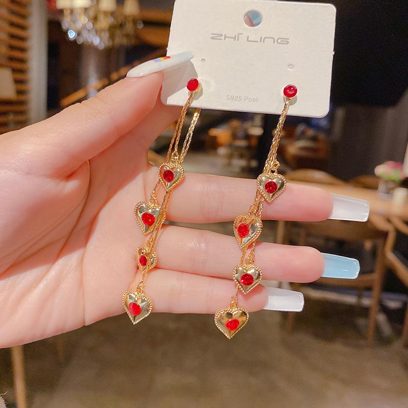 Pendientes de plata s925 con aguja multiusos de cristal rojo, encantadores, para mujer, con borlas de corazón de melocotón y temperamento rojo, pendientes adelgazantes.