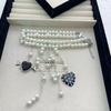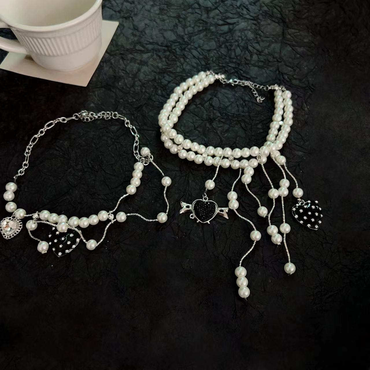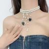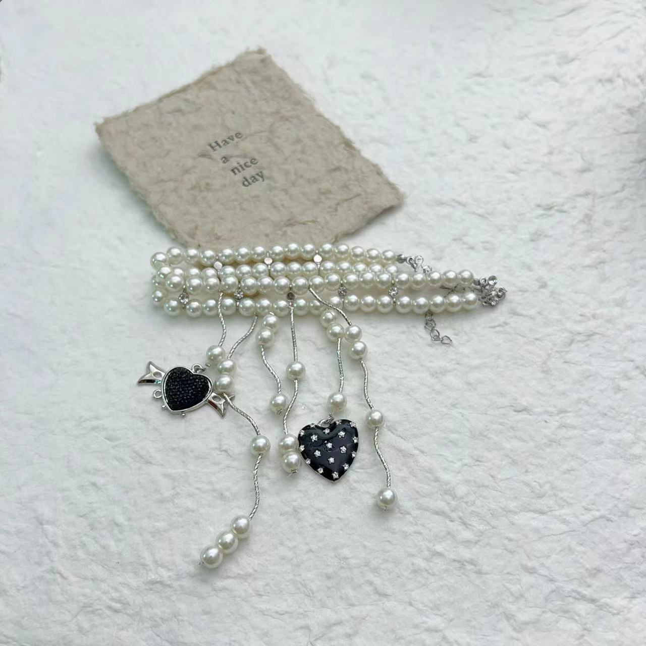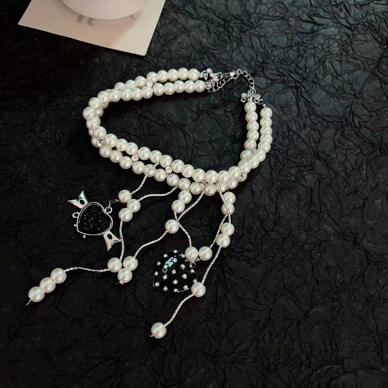 Estilo Dulce y Cool Europeo y Americano Negro Amor Borla Doble Capa Collar de Perlas Cadena Irregular para Clavícula Nuevo Estilo 2024 Elegante Trendy