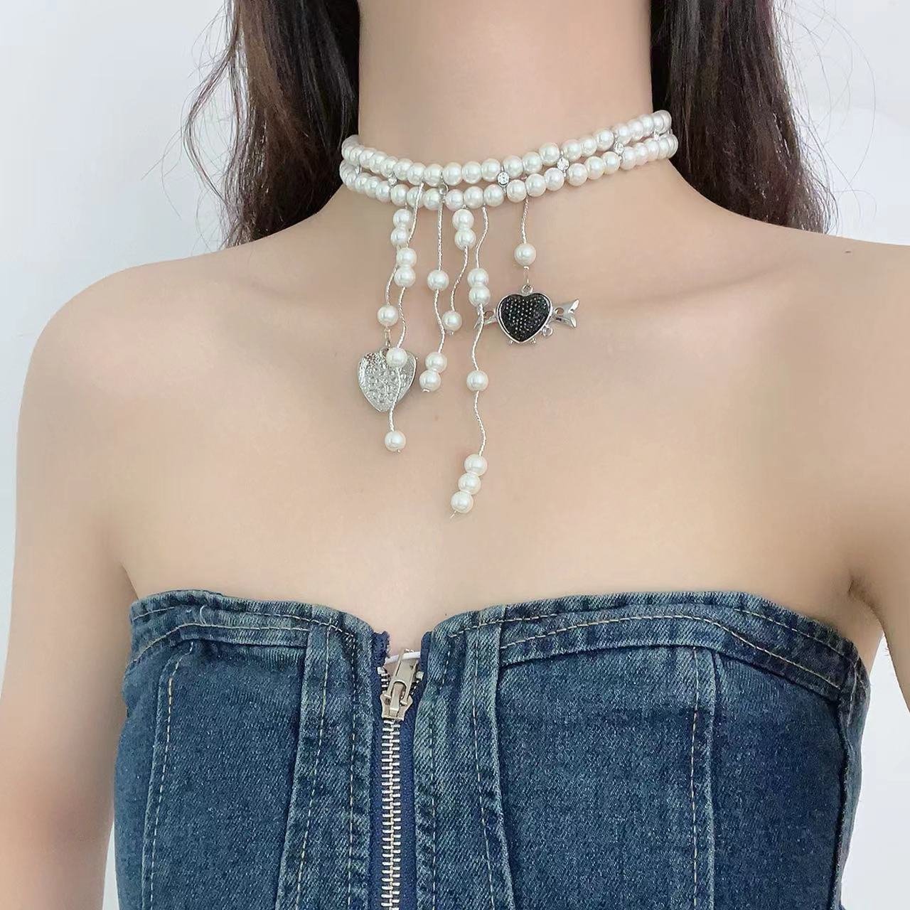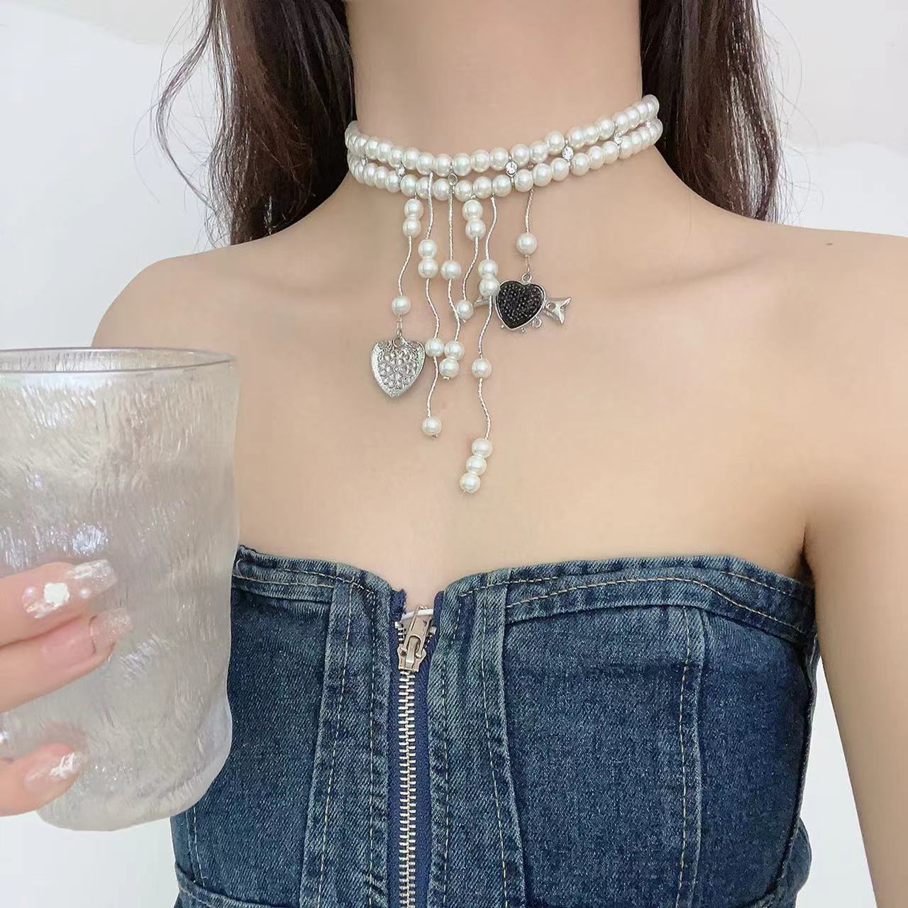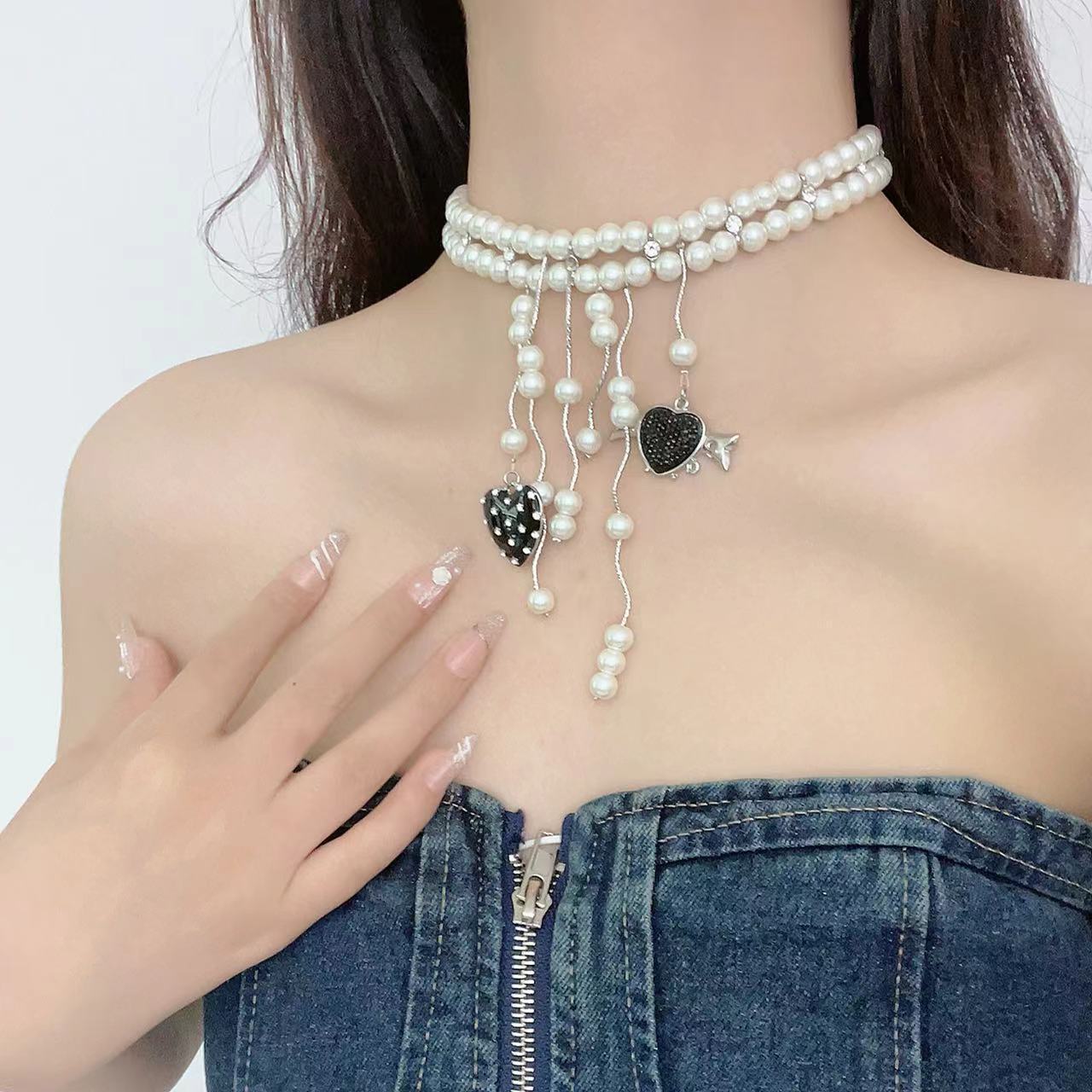 Compra Estilo Dulce y Cool Europeo y Americano Negro Amor Borla Doble Capa Collar de Perlas Cadena Irregular para Clavícula Nuevo Estilo 2024 Elegante Trendy al por mayor en Joom.pro