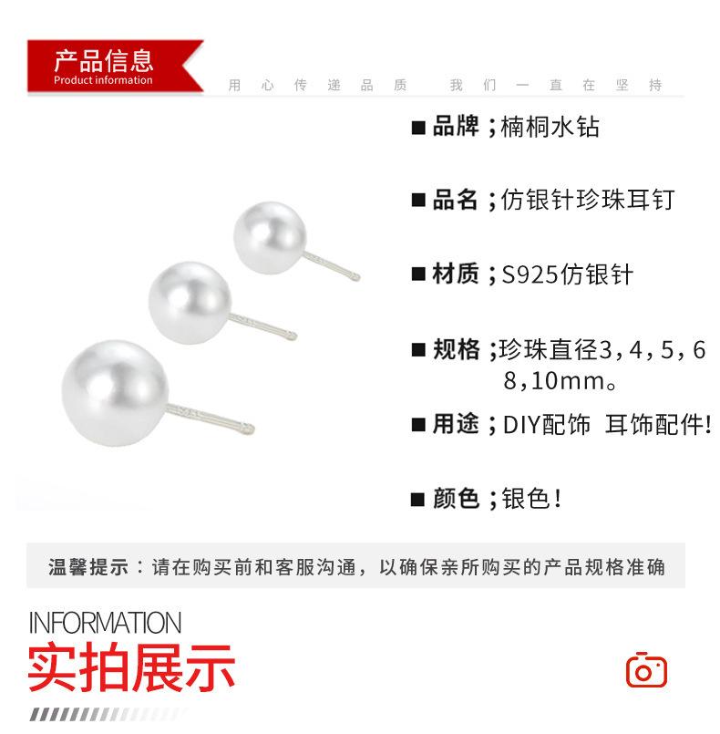 3mm pearl s925 silver needle, 4mm pearl s925 silver needle, 5mm pearl s925 silver needle, 6mm pearl s925 silve...
