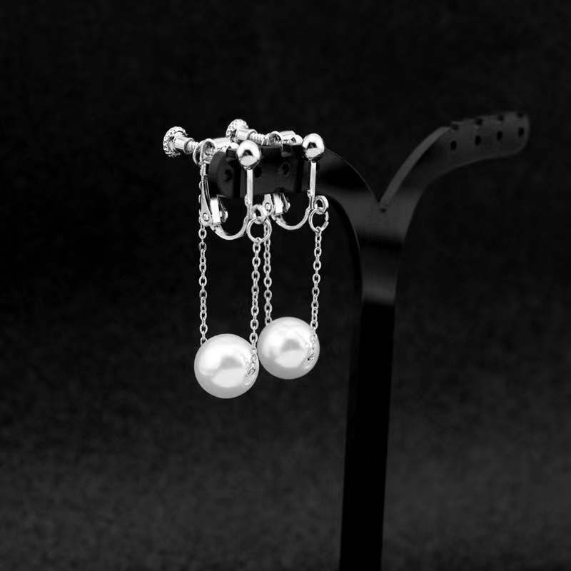 Pendientes de perlas atmosféricas de nuevo estilo a la moda, pendientes de dos perlas con temperamento, pendientes de clip de oreja en espiral simples a la moda, lote