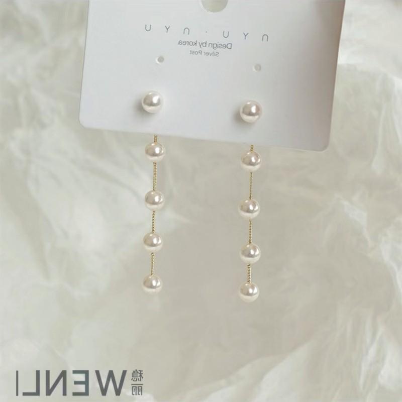Compra Aretes S925 Simples Elegantes de Borla de Perlas para Mujer Moda Nicho Diseño Aretes Estilo Popular Caliente al por mayor en Joom.pro
