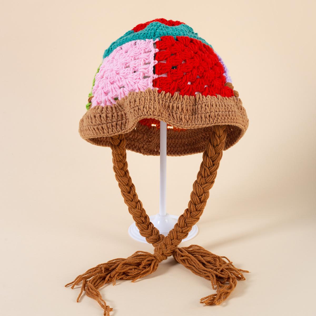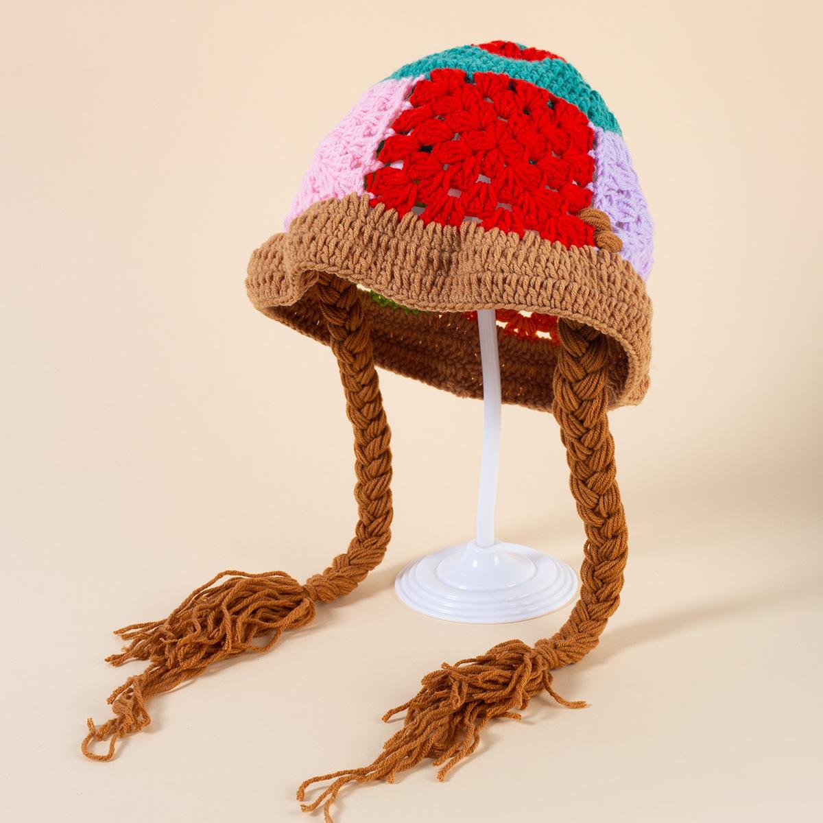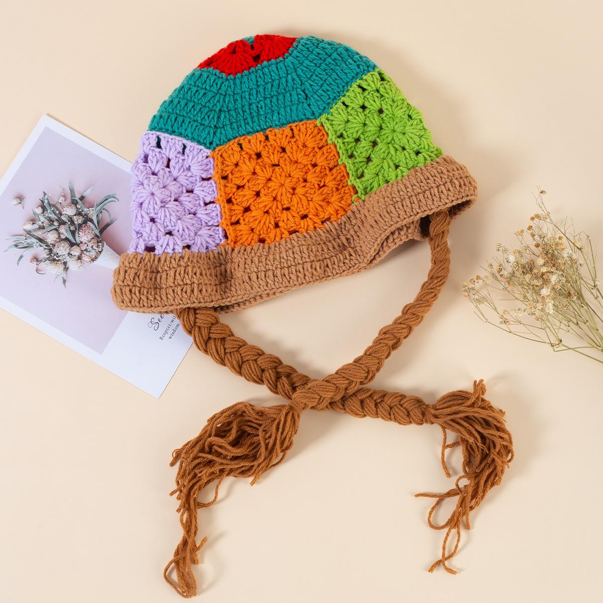 Sombrero de Cubo Tejido a Mano con Flor Hueca Vintage Japonés para Mujer Otoño e Invierno Dulce Combinable Sombrero de Lana para la Cara