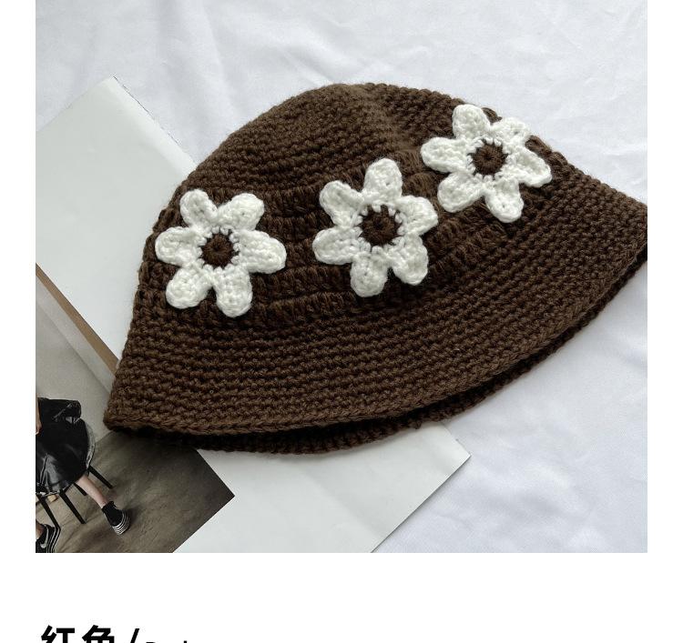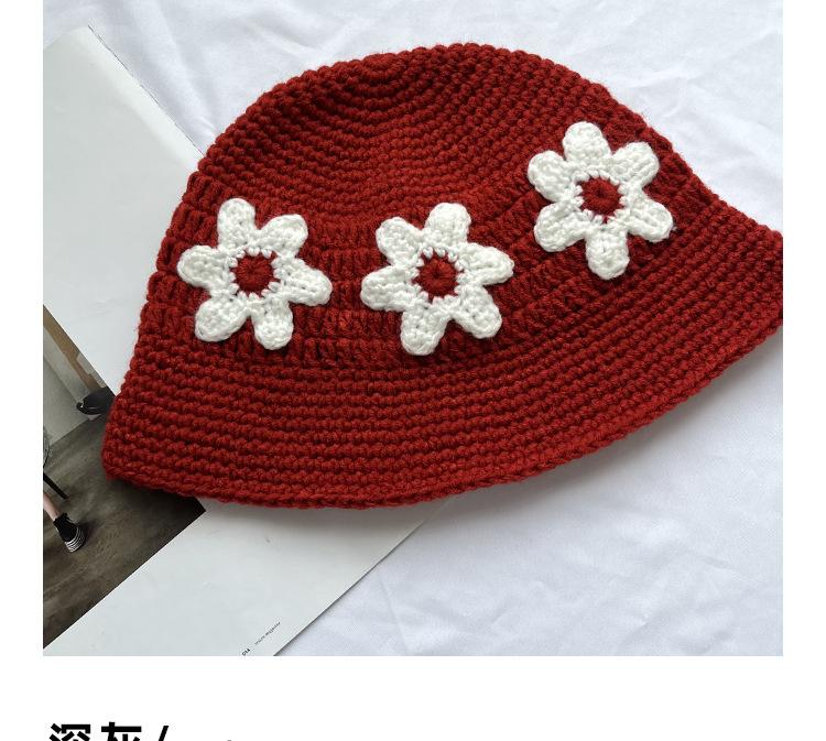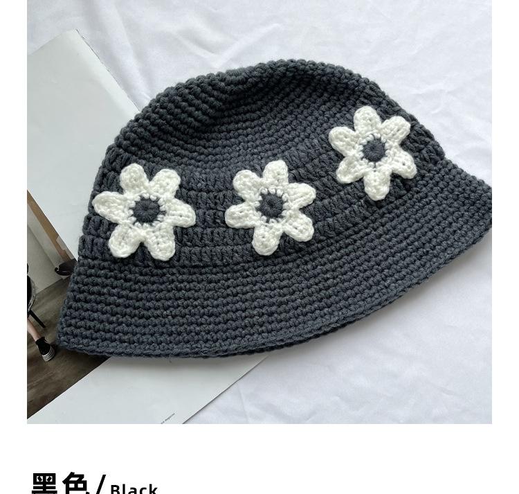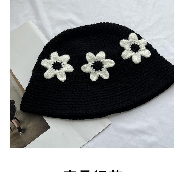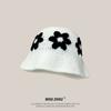 Sombrero Cubo de Flores Tejido a Mano Dulce y Lindo Estilo Japonés para Mujer Diseño Nicho Primavera y Verano Versátil Sombrero de Pescador Pequeño que Favorece el Rostro