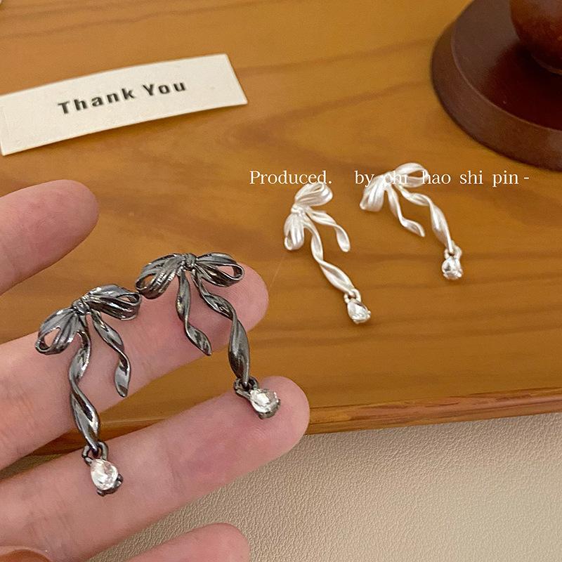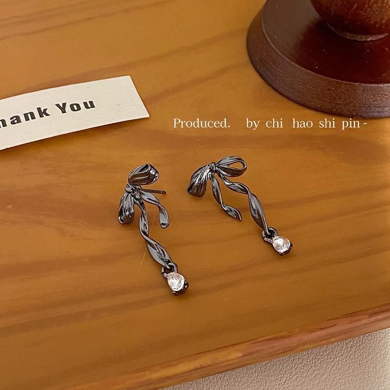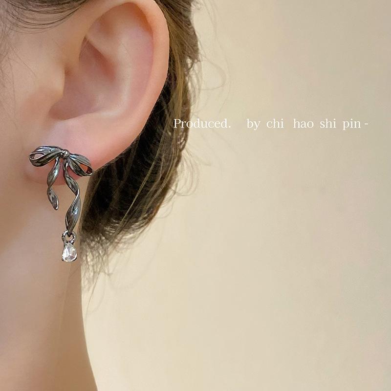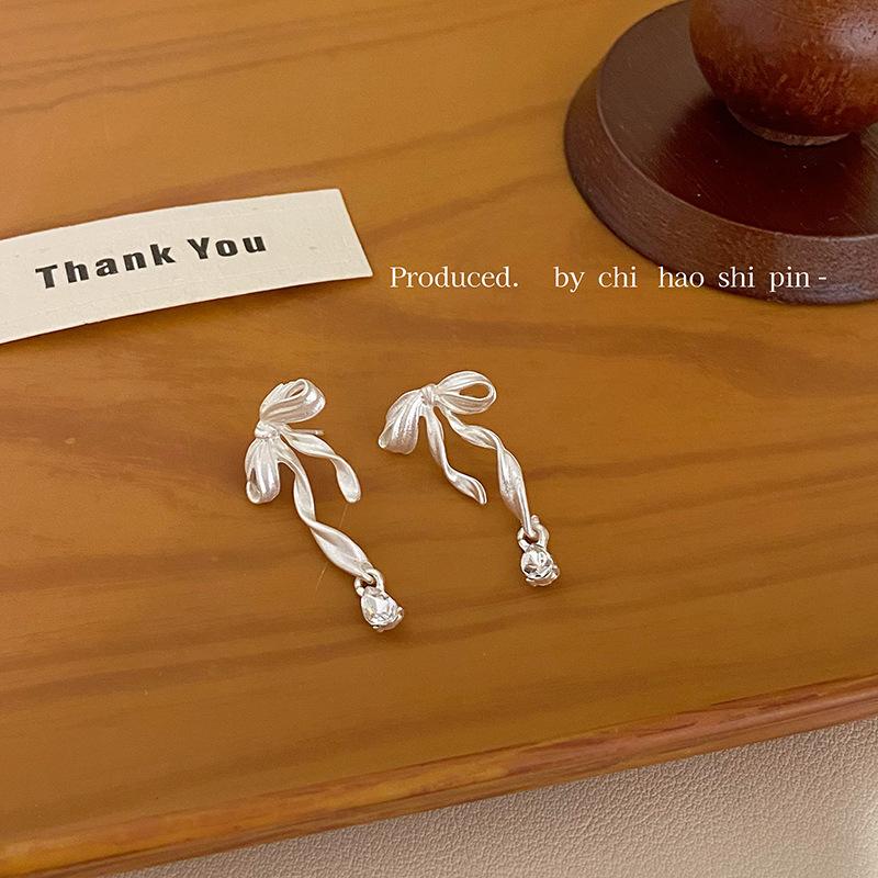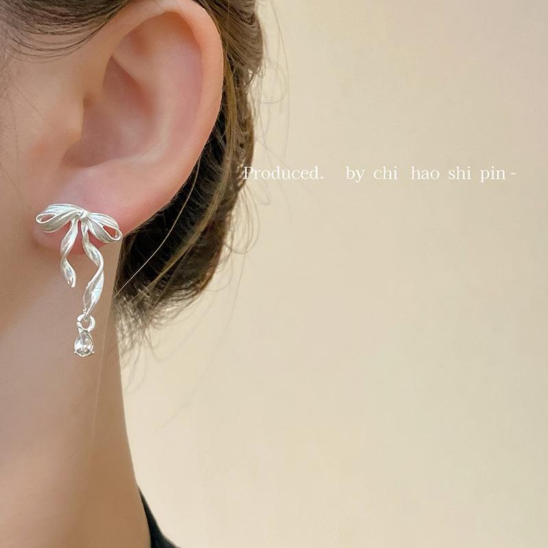 Pendientes de circonita con lazo de estilo francés, ligeros y lujosos, para mujer, exquisitos, de alto valor, a la moda, dulces y combinables.