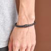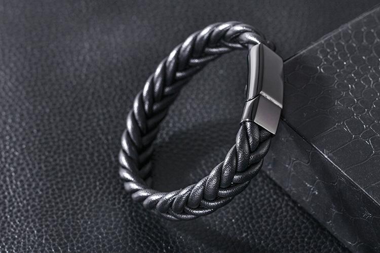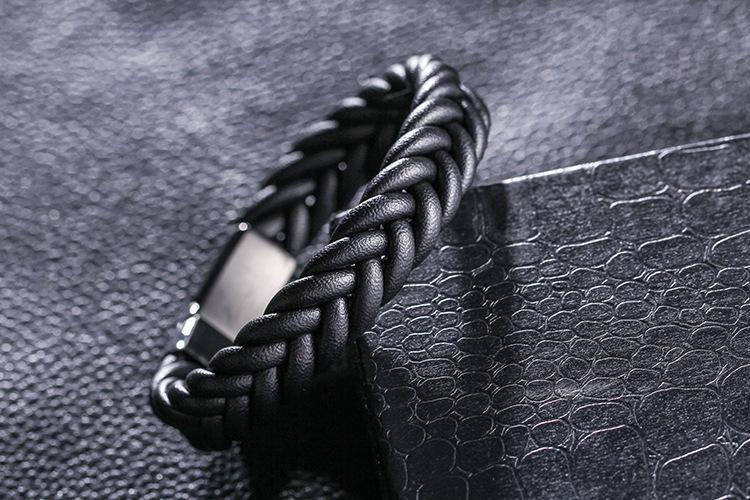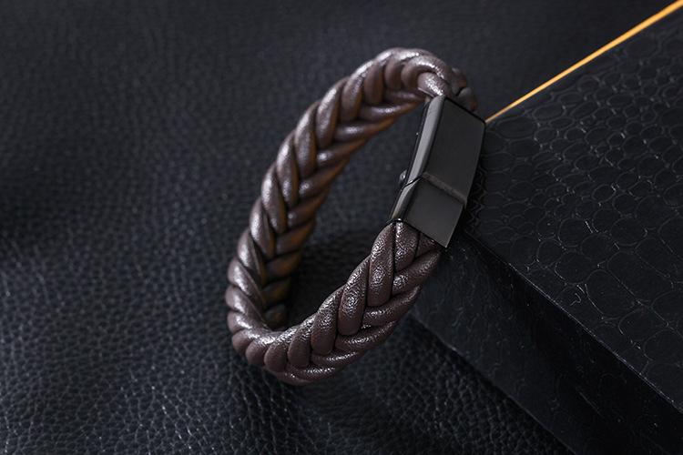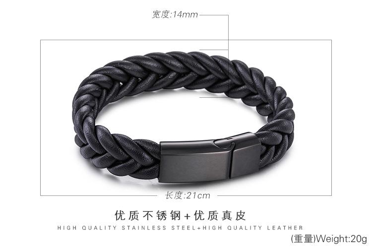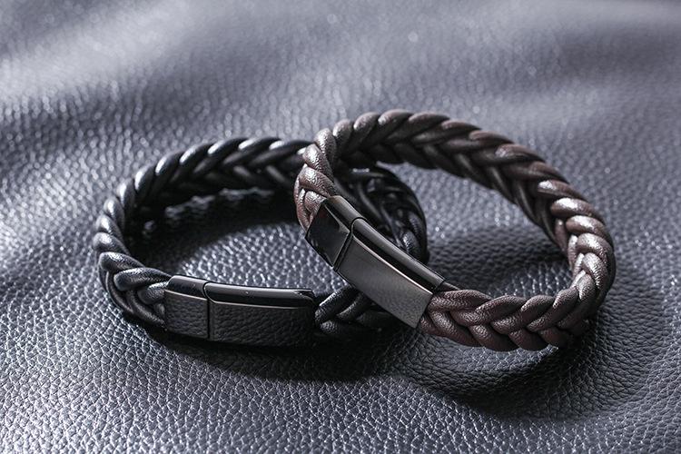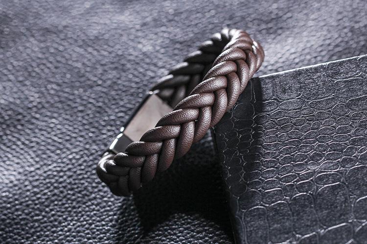 Pulsera tejida de cuerda de piel de vaca sencilla para hombres europeos y americanos, pulsera de cuero de acero inoxidable, pulsera de cuero, joyería al por mayor