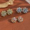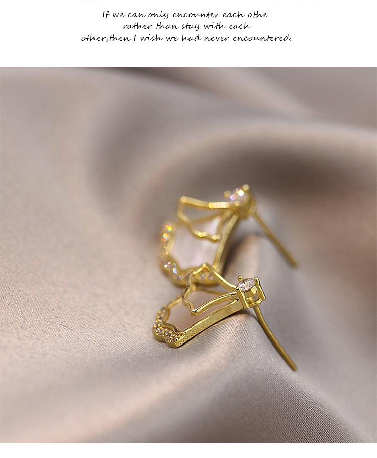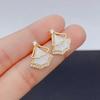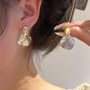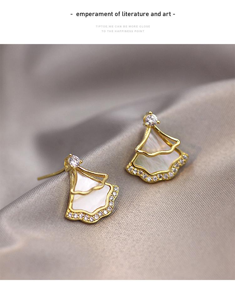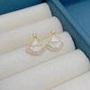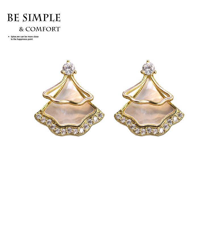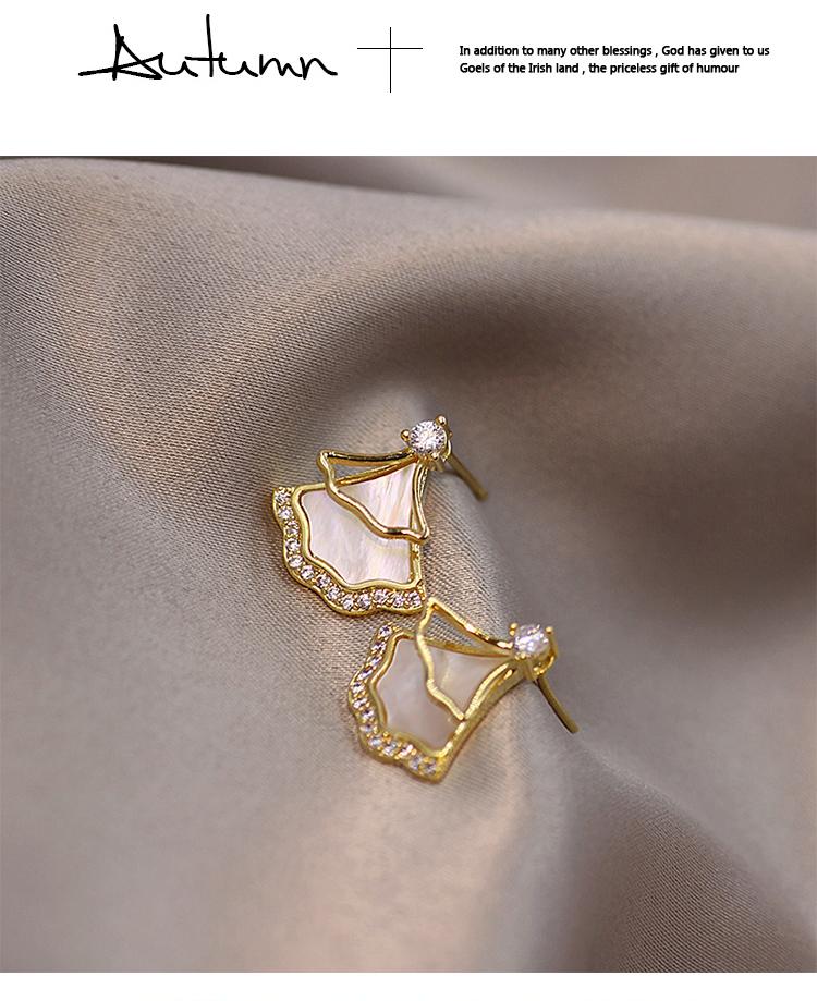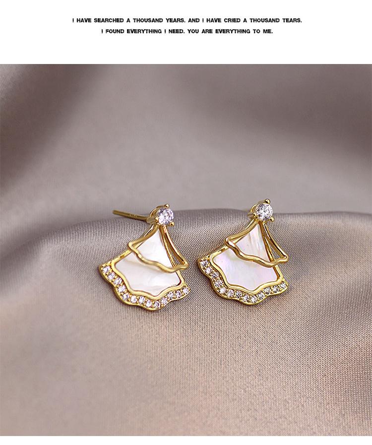 Aretes de Tuerca S925 Aguja de Plata Coreanos en Forma de Concha Tridimensional en Forma de Abanico Elegantes Moda Lujo Ligero Simples Zircón Nuevos de Moda