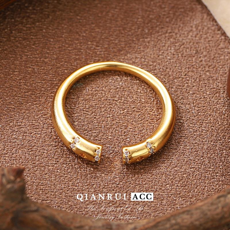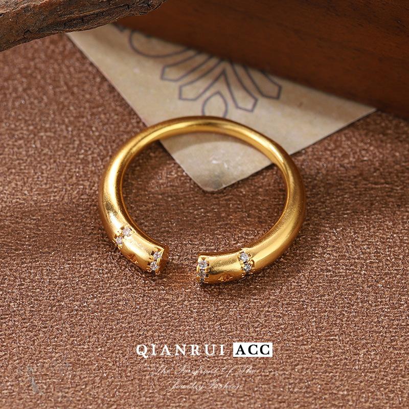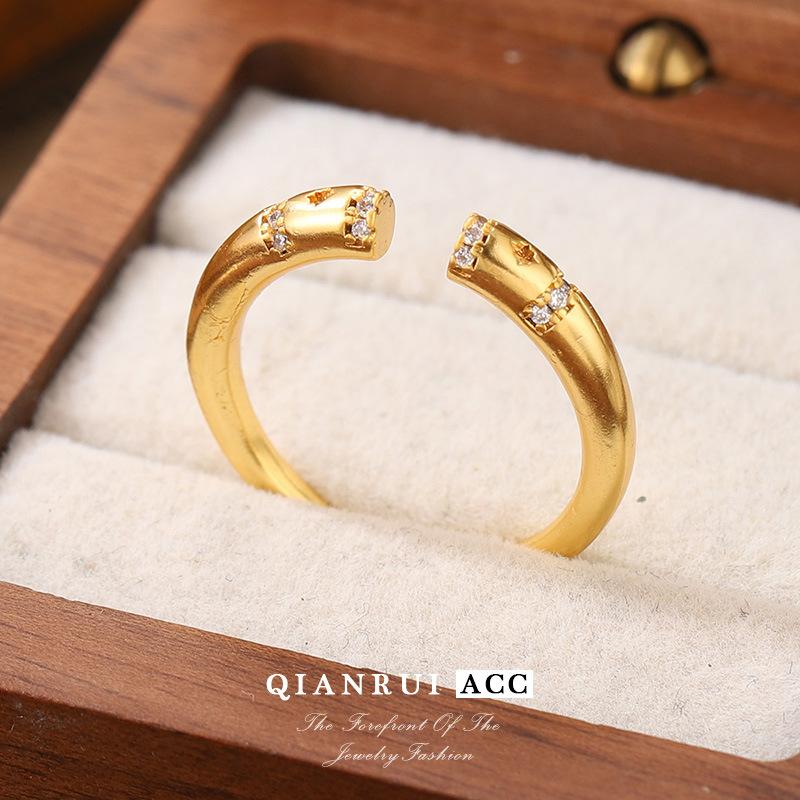 Compra Nuevo anillo de moda transfronterizo europeo y americano, personalizado, con diseño de nicho que combina con todo, anillo abierto con luz francesa dorada de lujo. al por mayor en Joom.pro