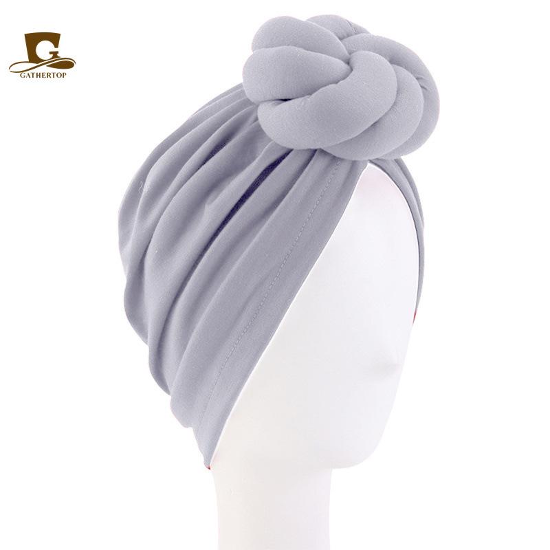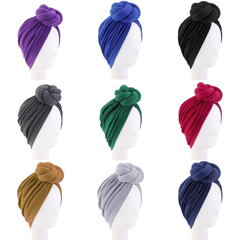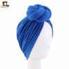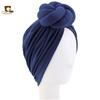 Turbante elástico plisado con flores para adultos, color liso, estilo baotou, con lazo y nudo étnico, JDT-52