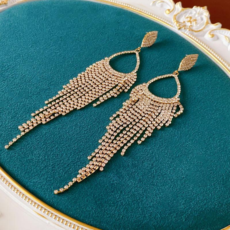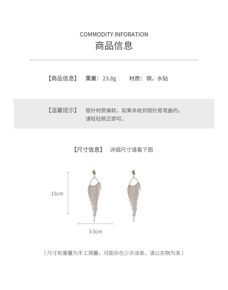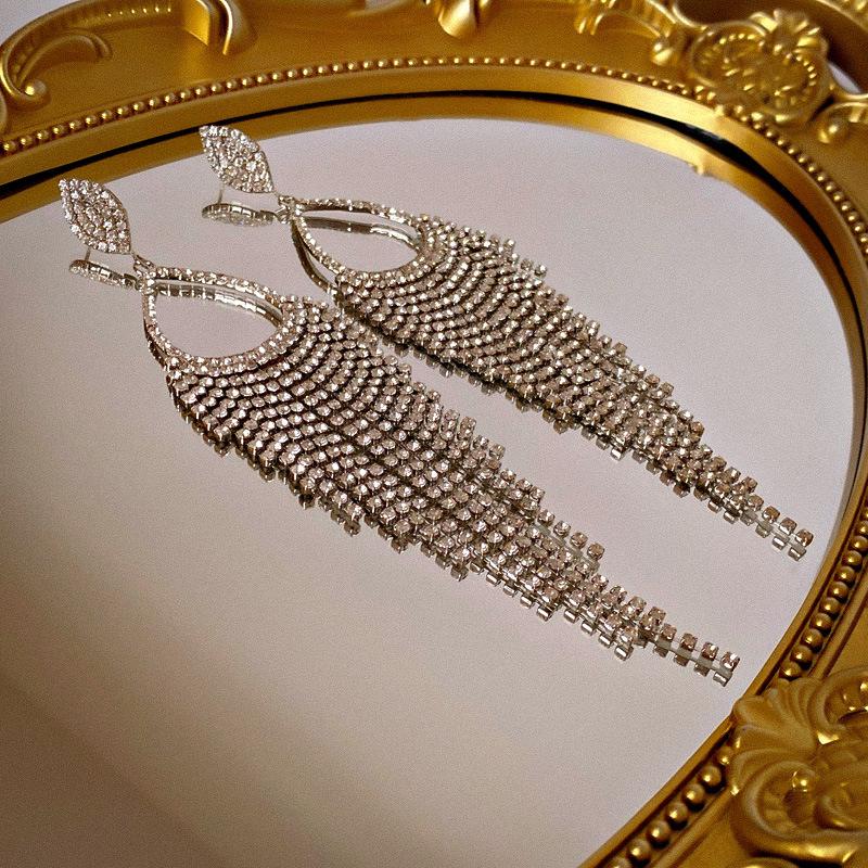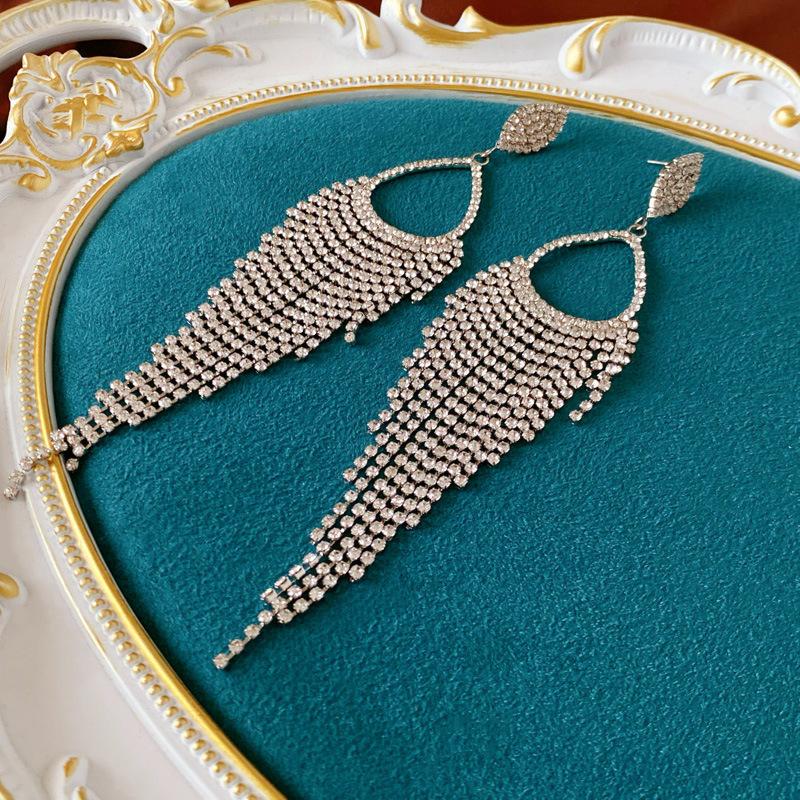Silver Needle-silver Diamond Drop Tassel Drop Earrings