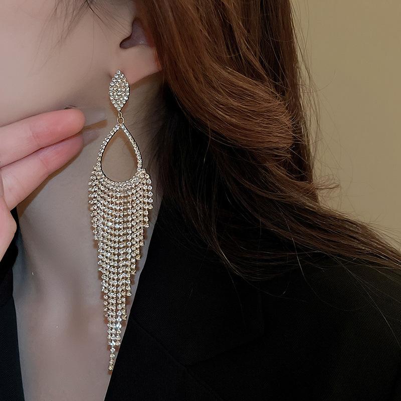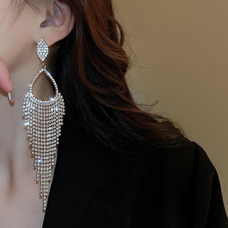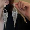 Pendientes de Diamantes Estilo Lujo Ligero Gota de Agua Borla Larga Pin Plateado Moda Personalidad Exagerada Nicho Elegante Pendientes de Alta Gama para Mujer