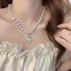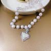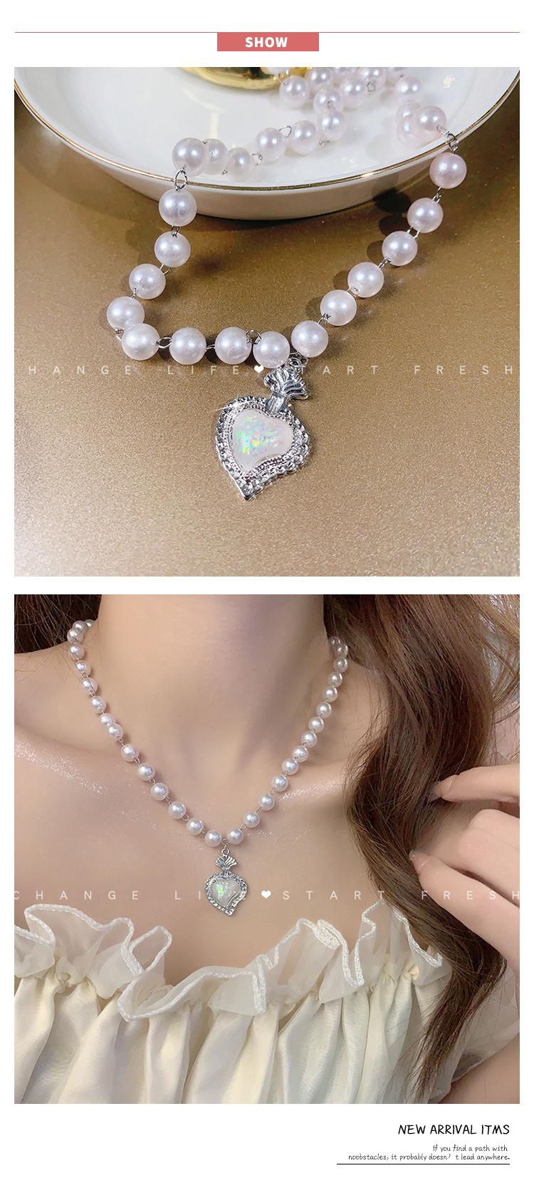 Collar de perlas con colgante de amor de diseño retro nicho para hombres y mujeres Moda Red popular collar de clavícula combinable nueva moda