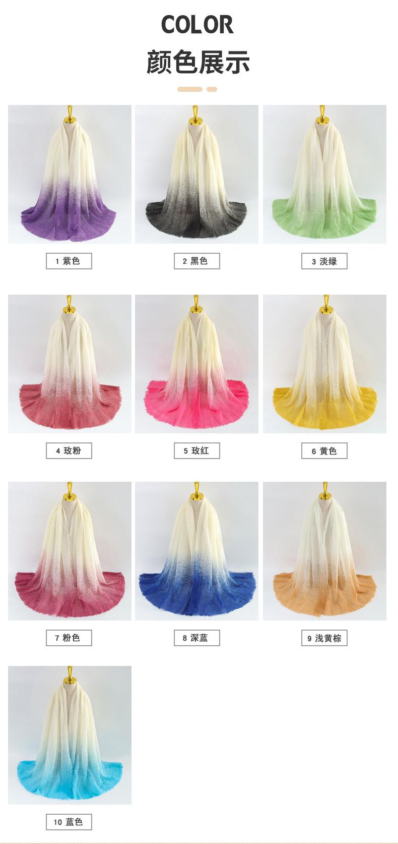 Bufanda de seda nueva de primavera y verano de gran tamaño, bufanda fina de gasa con color degradado, chal fino para protección solar, bufanda de gran venta en Medio Oriente
