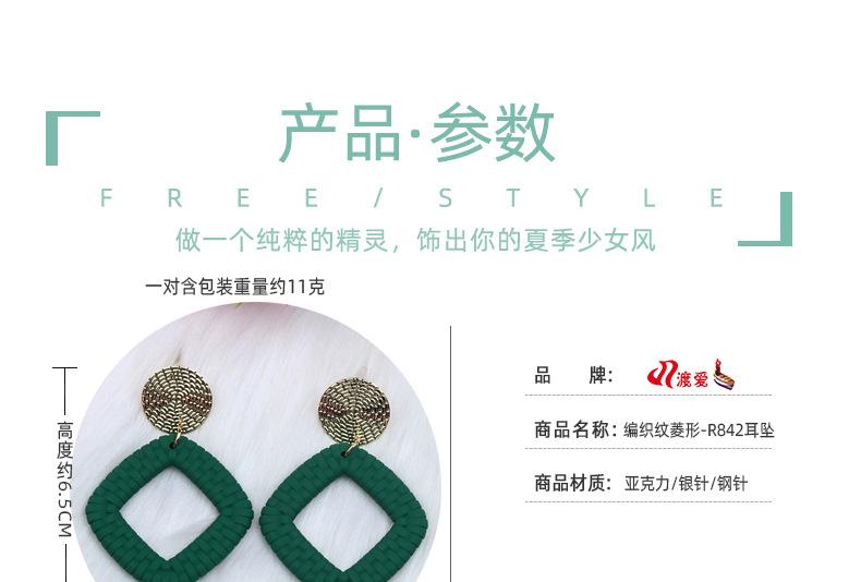 Nuevos pendientes de acrílico con patrón tejido de 12 colores, pendientes de moda con personalidad sencilla y huecos de diamantes, joyería para las orejas para mujer