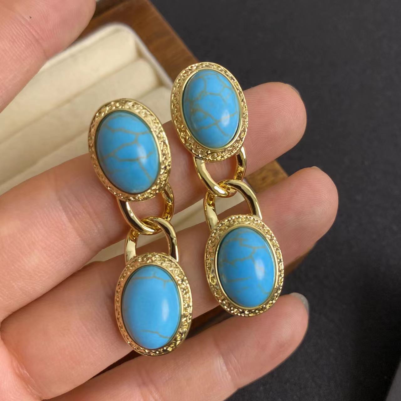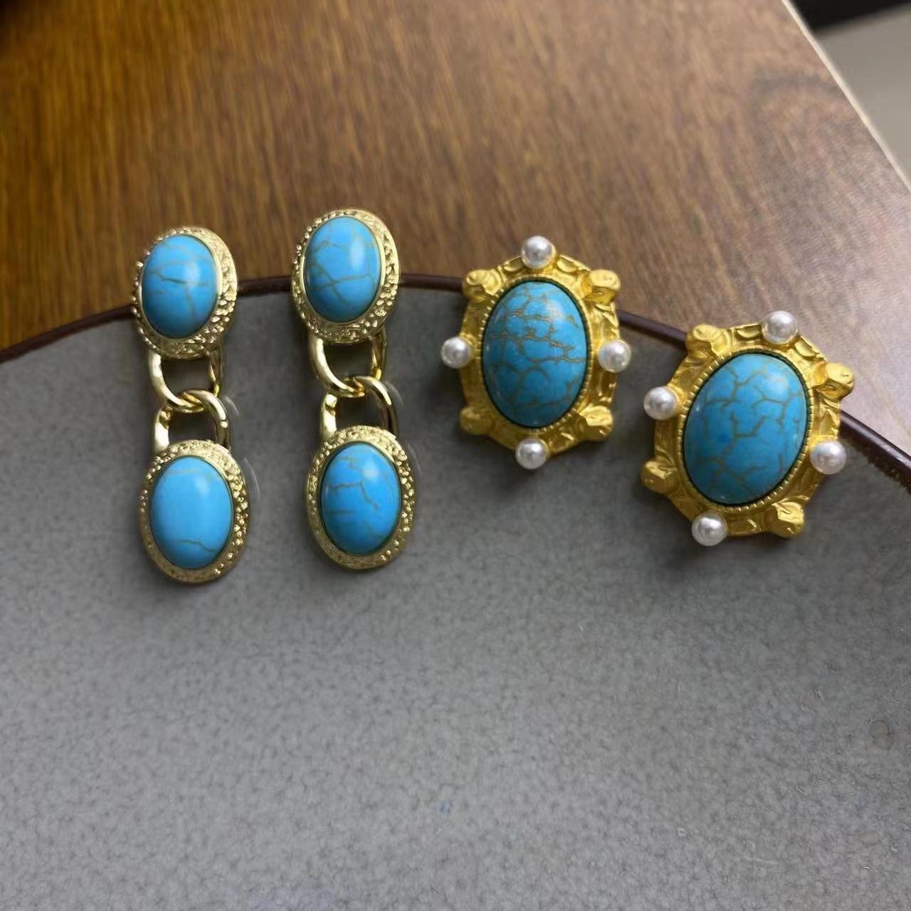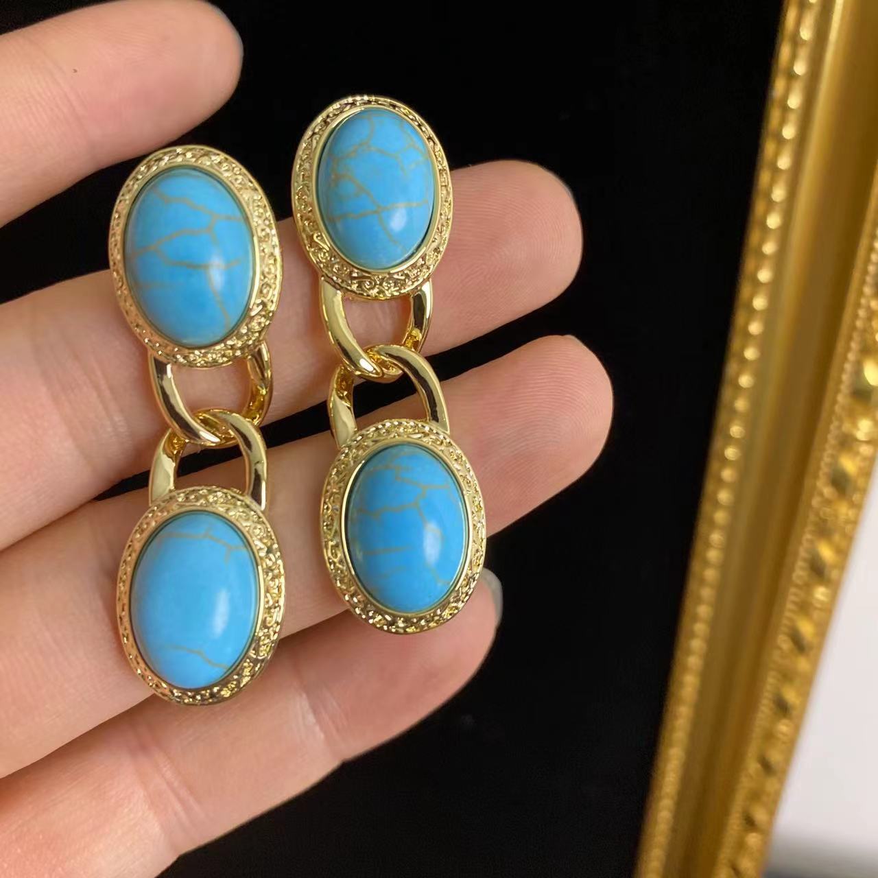 Compra Pendientes azules de moda europeos y americanos exagerados, pendientes de lujo ligeros y distintivos, pendientes de nicho de sentido avanzado, retro elegantes y elegantes, pendientes de nicho para mujeres al por mayor en Joom.pro