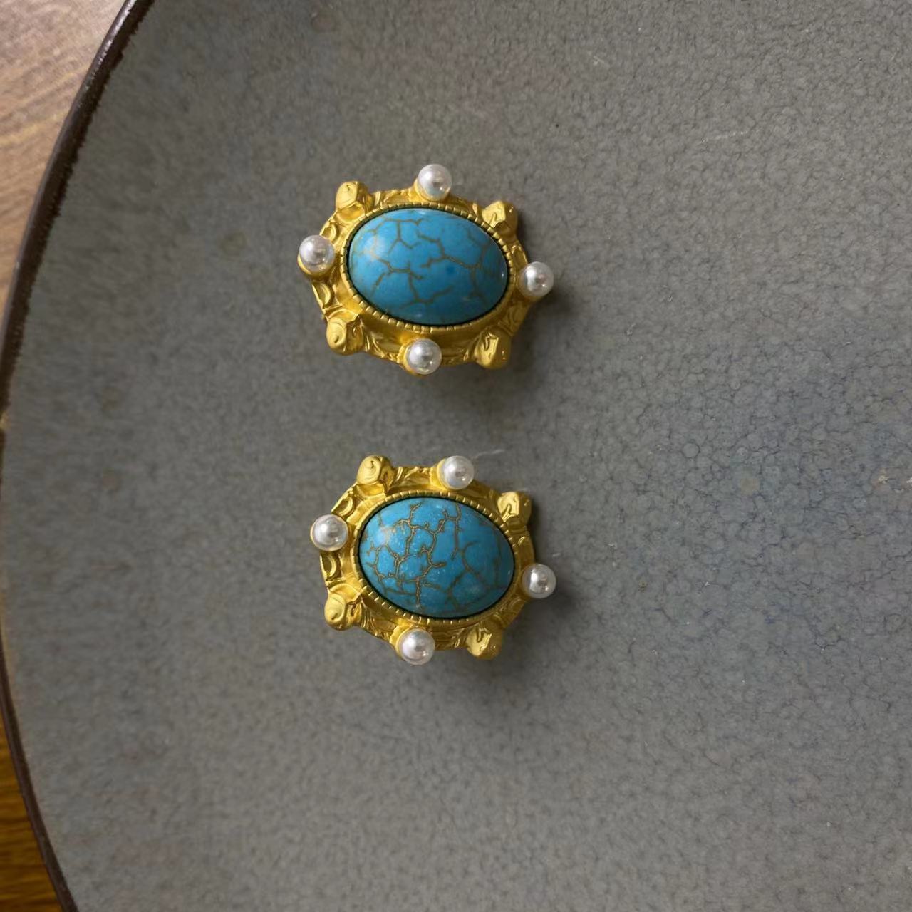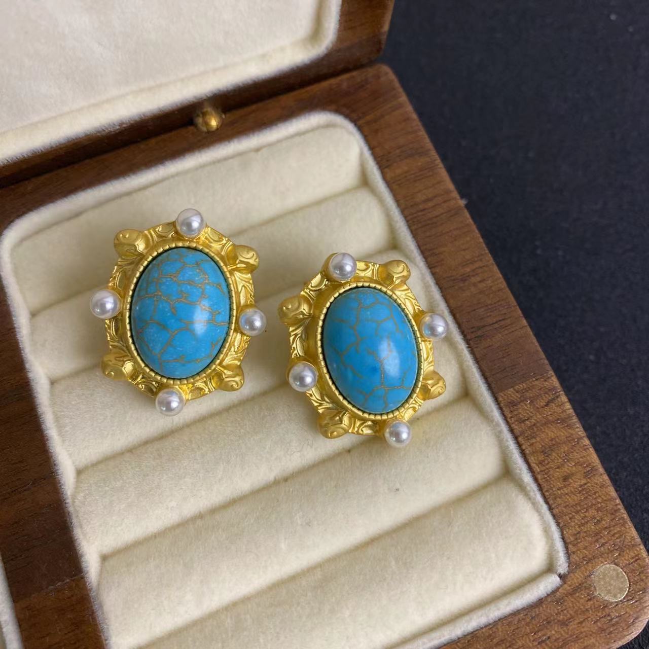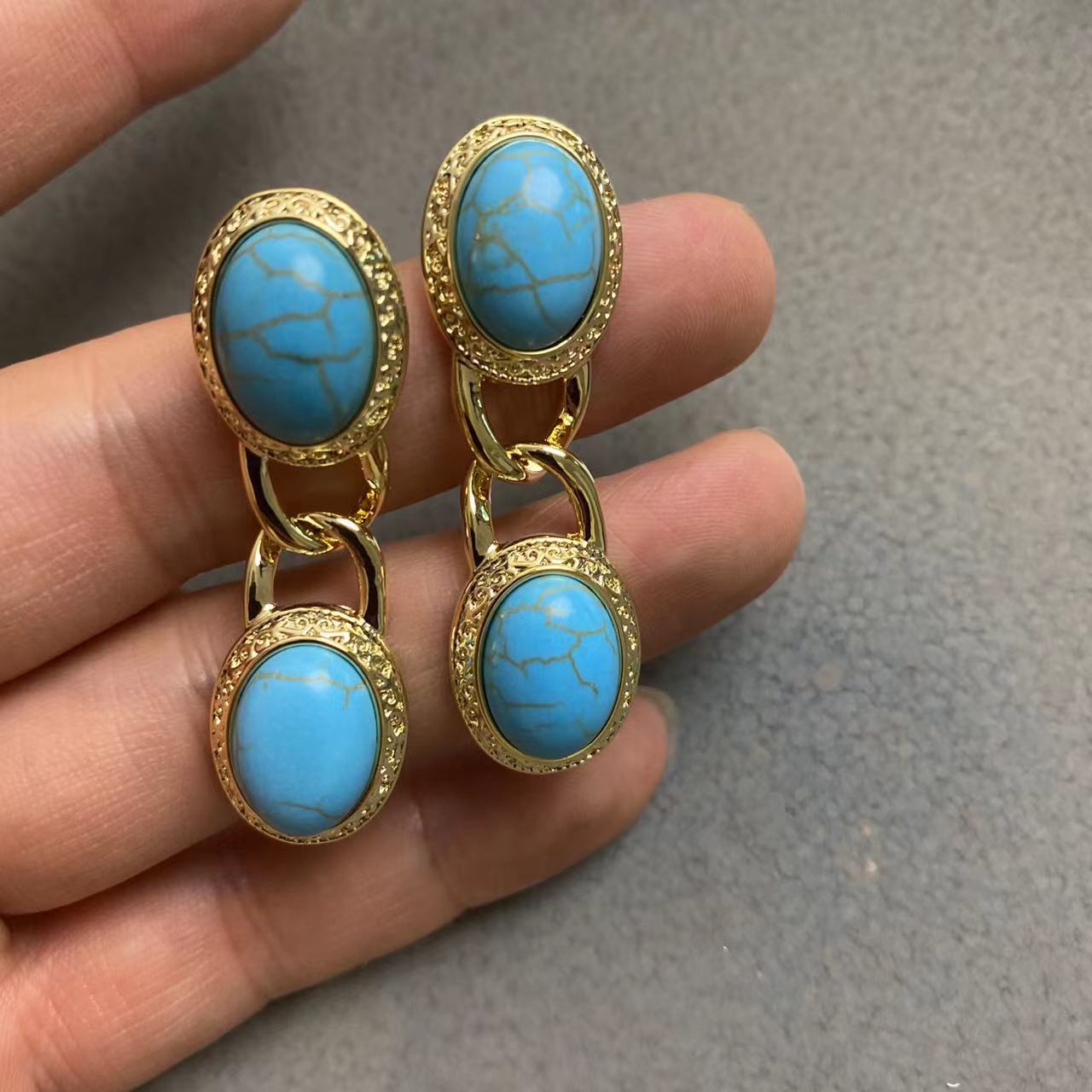 Compra Pendientes azules de moda europeos y americanos exagerados, pendientes de lujo ligeros y distintivos, pendientes de nicho de sentido avanzado, retro elegantes y elegantes, pendientes de nicho para mujeres al por mayor en Joom.pro