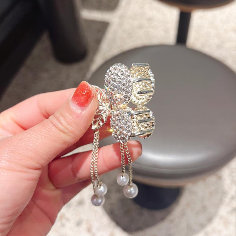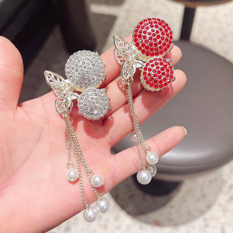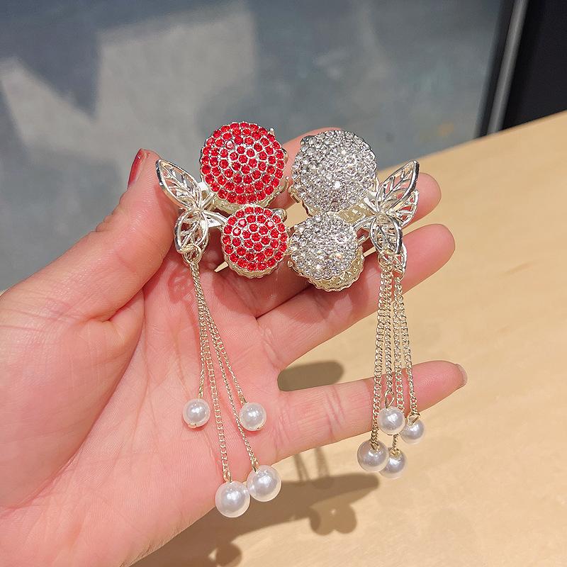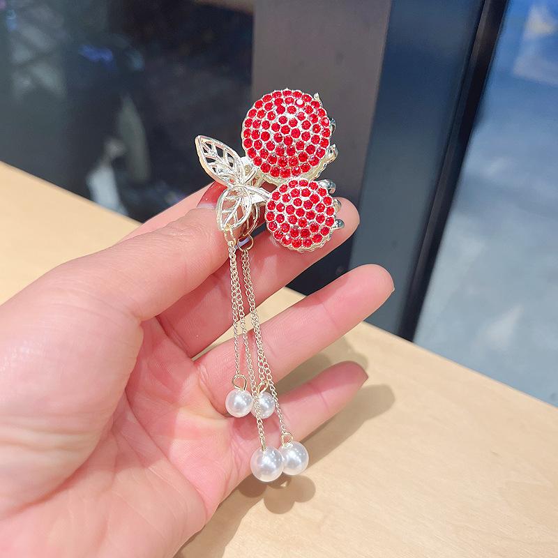 Horquilla de cereza con diamantes y borlas de perlas de hadas para el pelo, horquilla con media horquilla, accesorio coreano para la cabeza, venta al por mayor