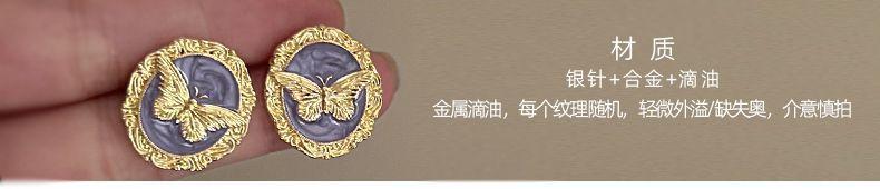 Pendientes de metal con diseño de mariposa estilo retro francés, ligeros y lujosos, con esmalte de gota, para mujer