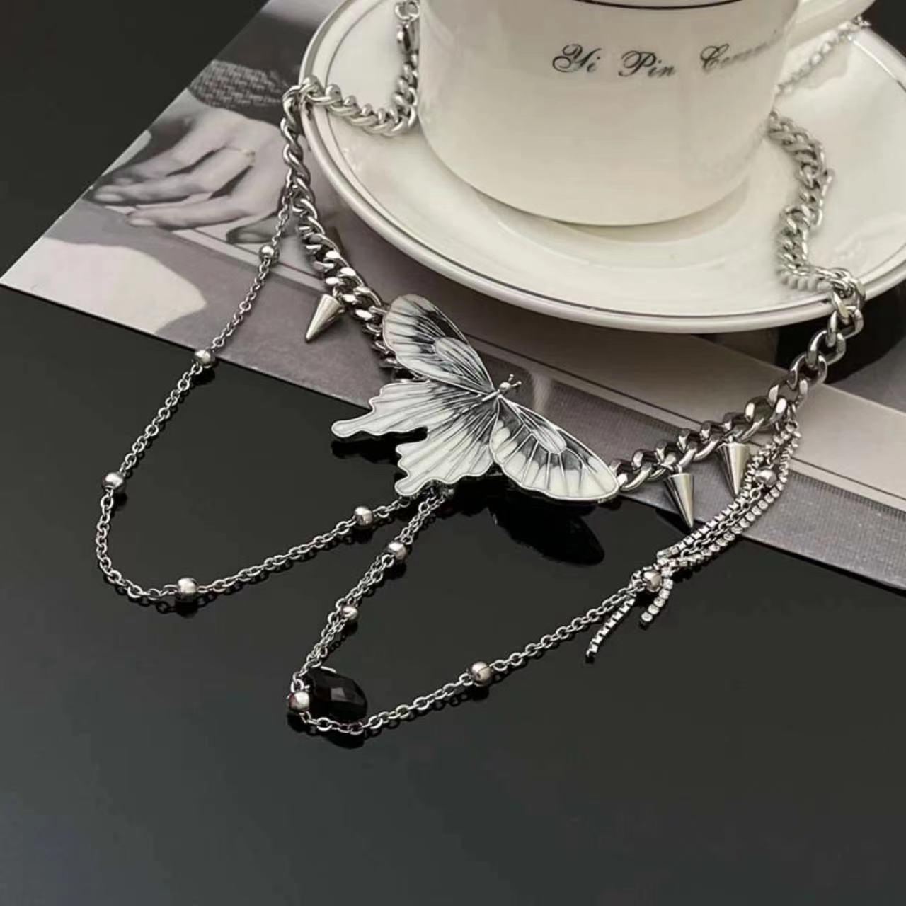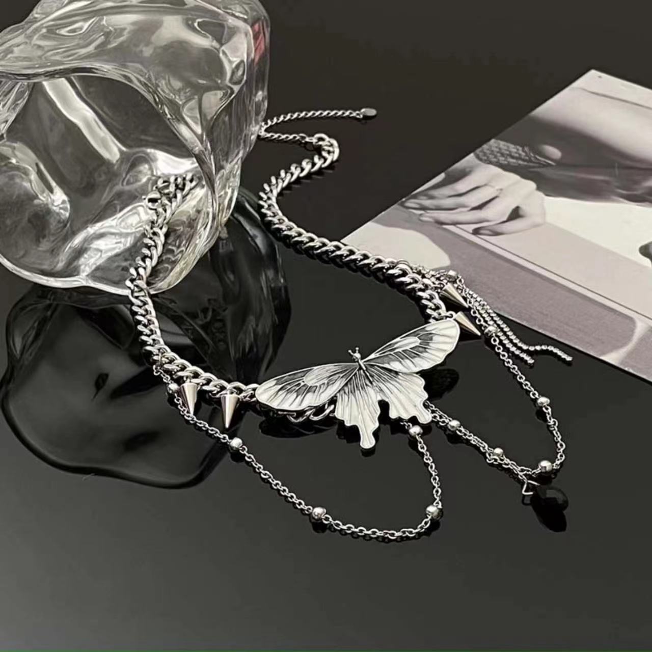 Cadena de clavícula con borla y remache de mariposa de Super Fairy, diseño de nicho femenino, collar de moda de temperamento fresco y dulce de alta calidad que combina con todo.