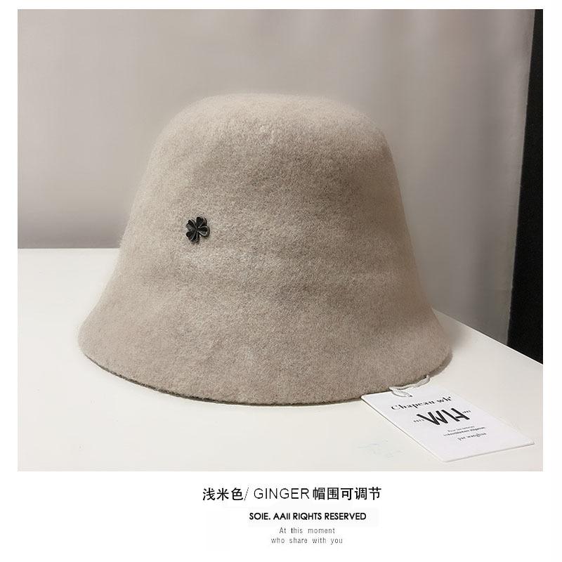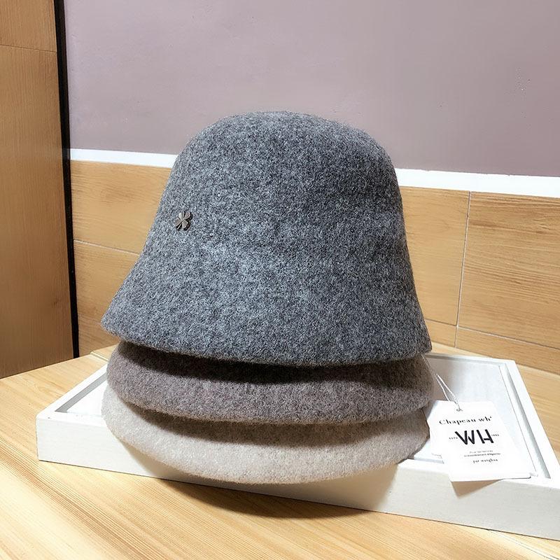 Sombrero de pescador de lana de color sólido japonés para mujer, otoño e invierno, combina con todo, literario, simple, tipo cubeta, de moda estilo coreano, hace la cara pequeña
