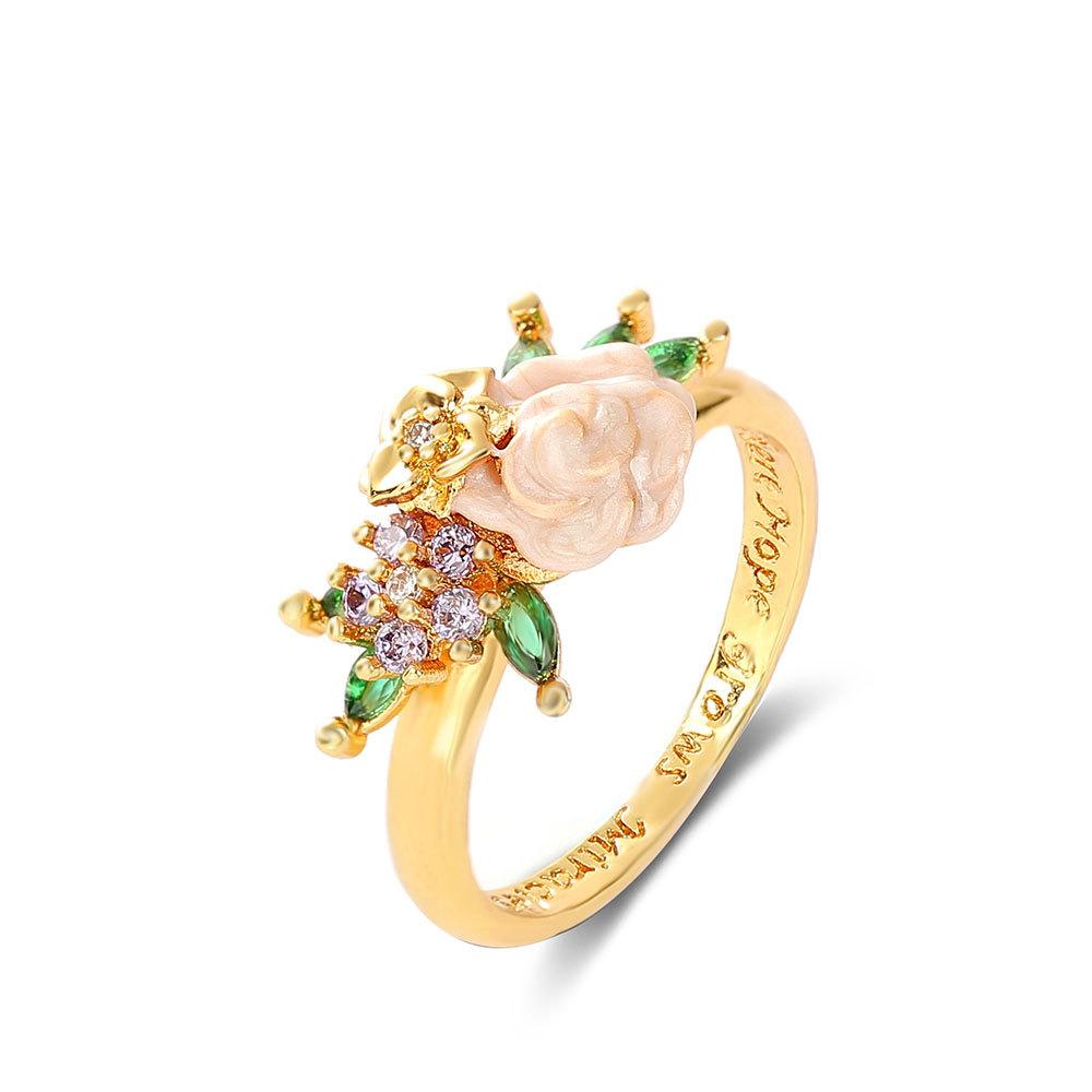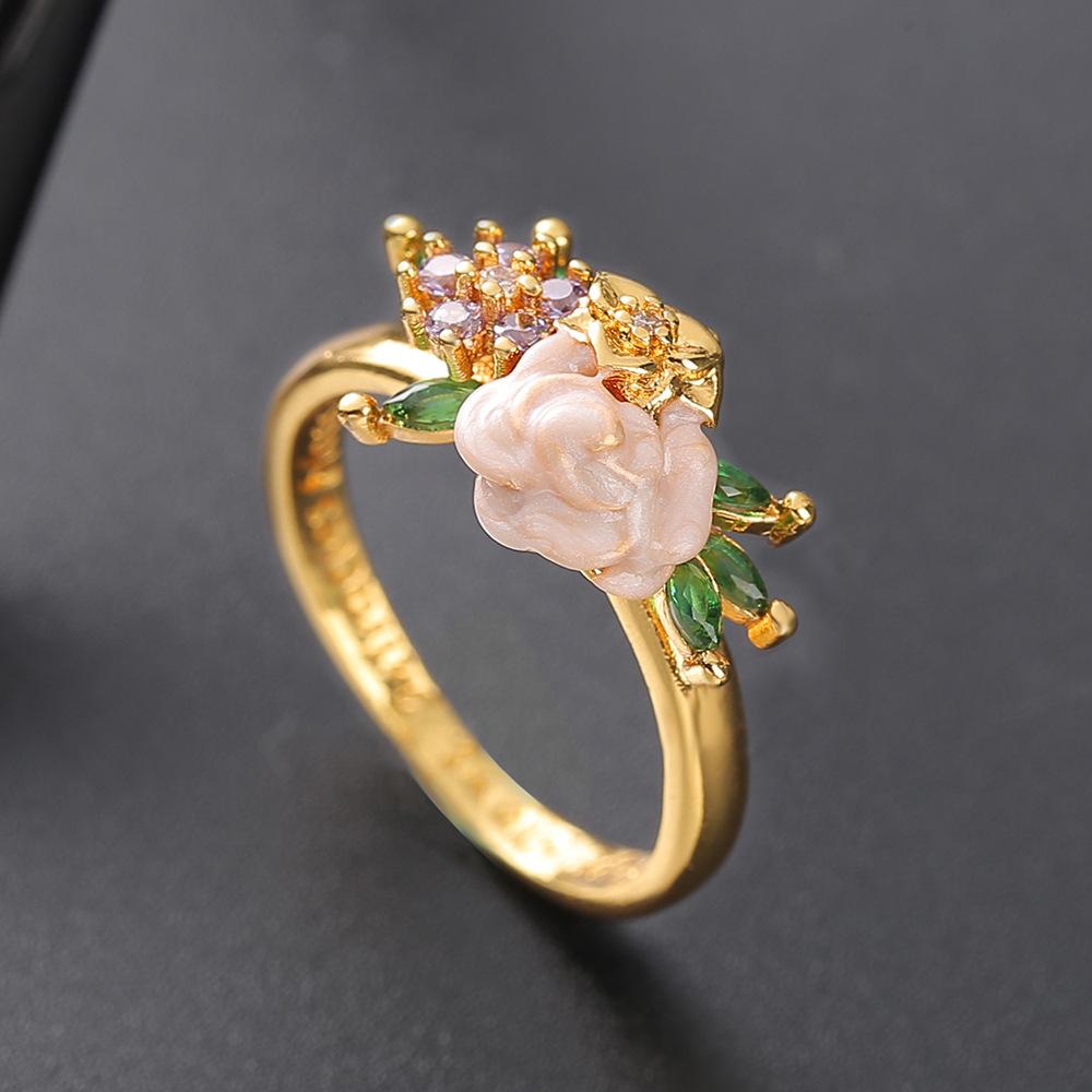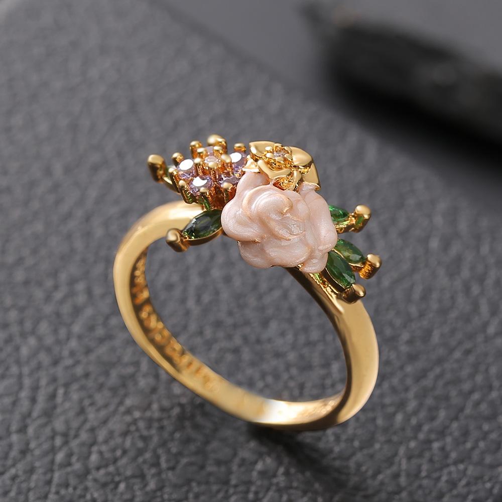 Zhen Rong desea un nuevo y creativo anillo con flor de diamante con incrustaciones de esmeralda y ojo de caballo para AliExpress, eBay, Amazon, Europa y Estados Unidos.