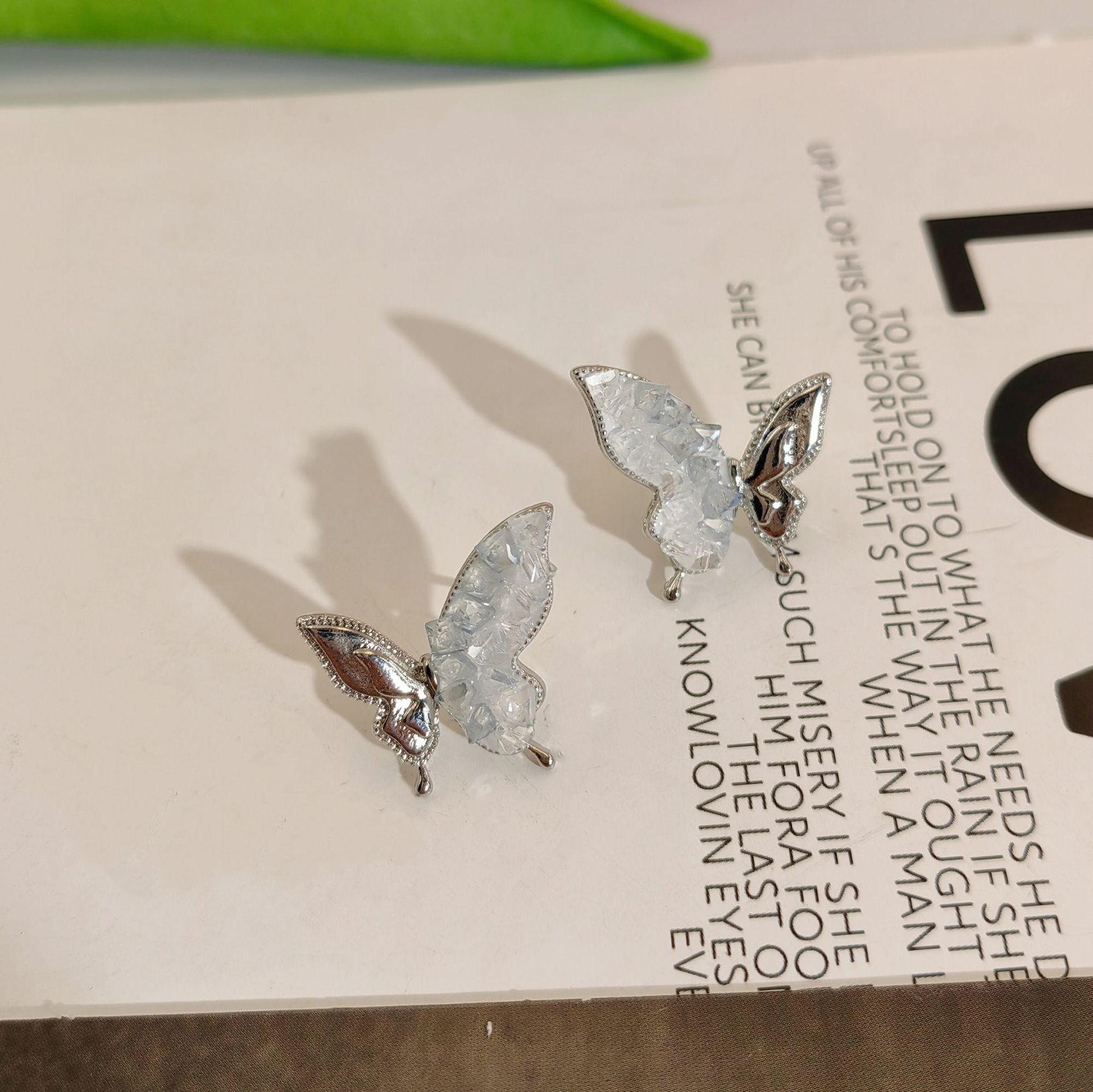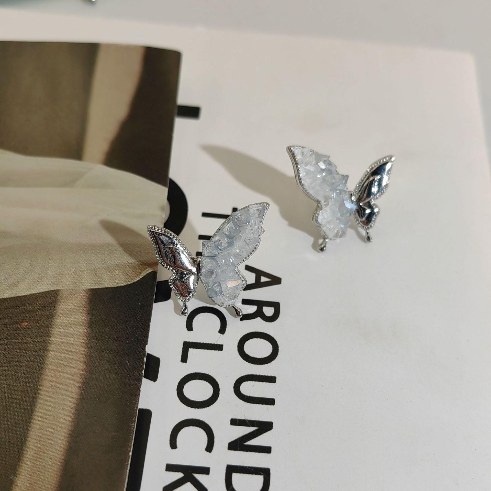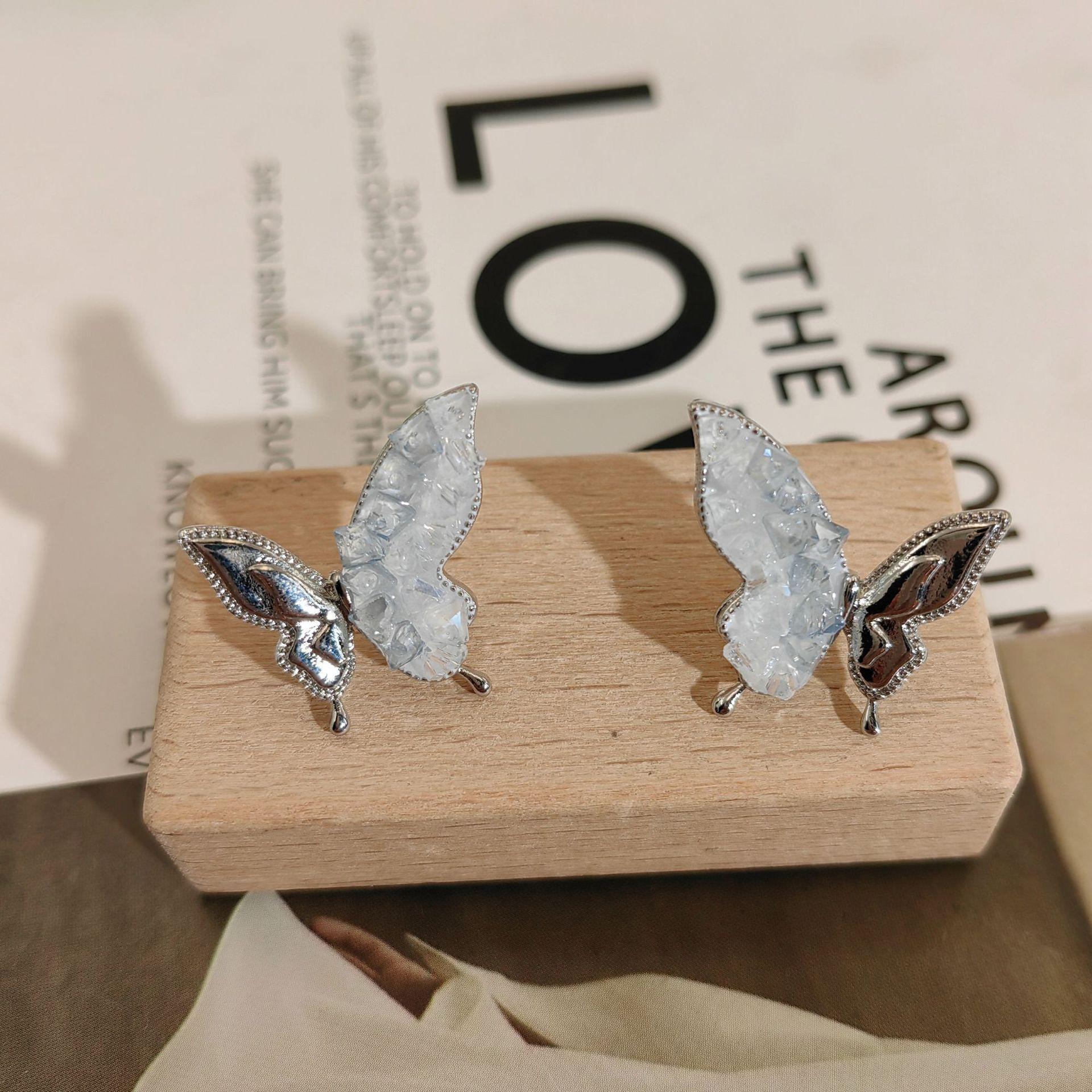 Nuevos pendientes de mariposa asimétricos, diseño único, pendientes de nicho avanzados, pendientes de cristal azul, elegantes y de moda.