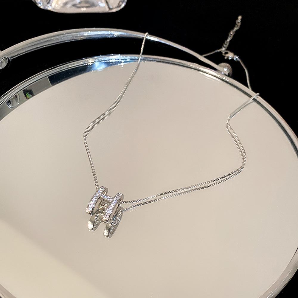 Conjunto de collar y pendientes con diamantes cuadrados, estilo europeo y americano, cadena de clavícula ligera de lujo, personalidad, joyería nueva de alta gama al por mayor.