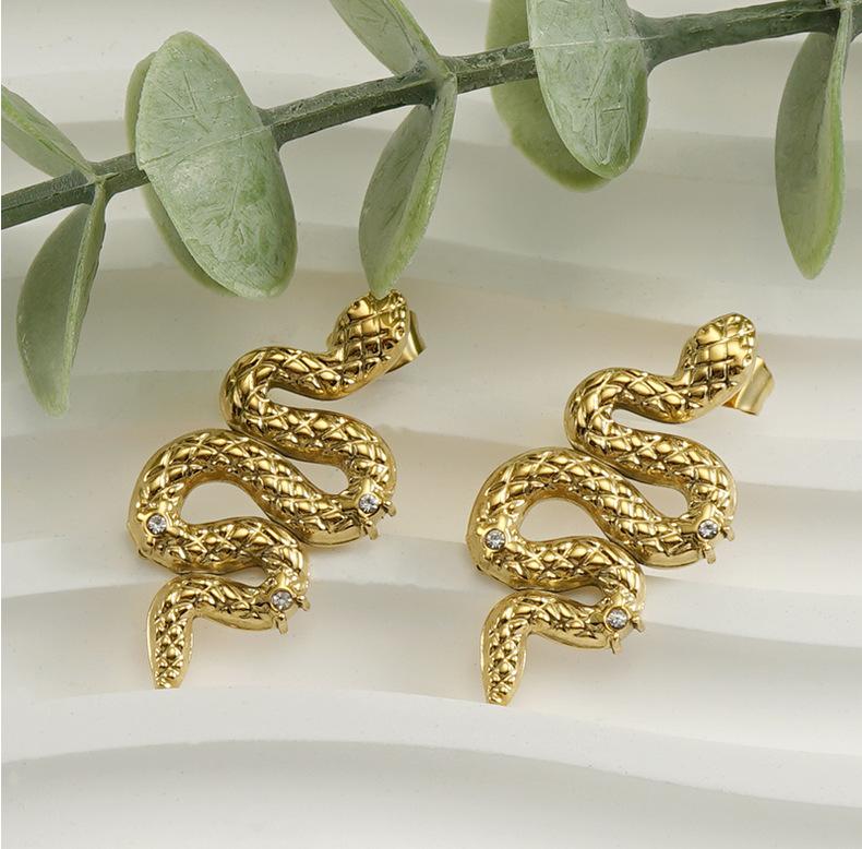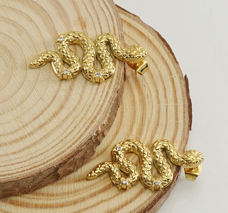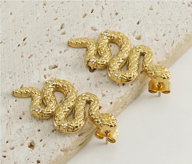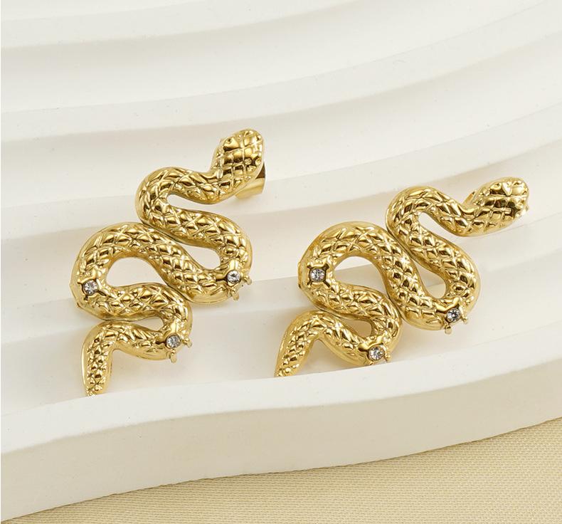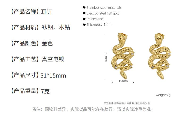 Pendientes de moda transfronterizos de acero inoxidable con diamantes de imitación para mujer, de 18 quilates, con personalidad de serpiente, de acero de titanio, estilo ins, al por mayor