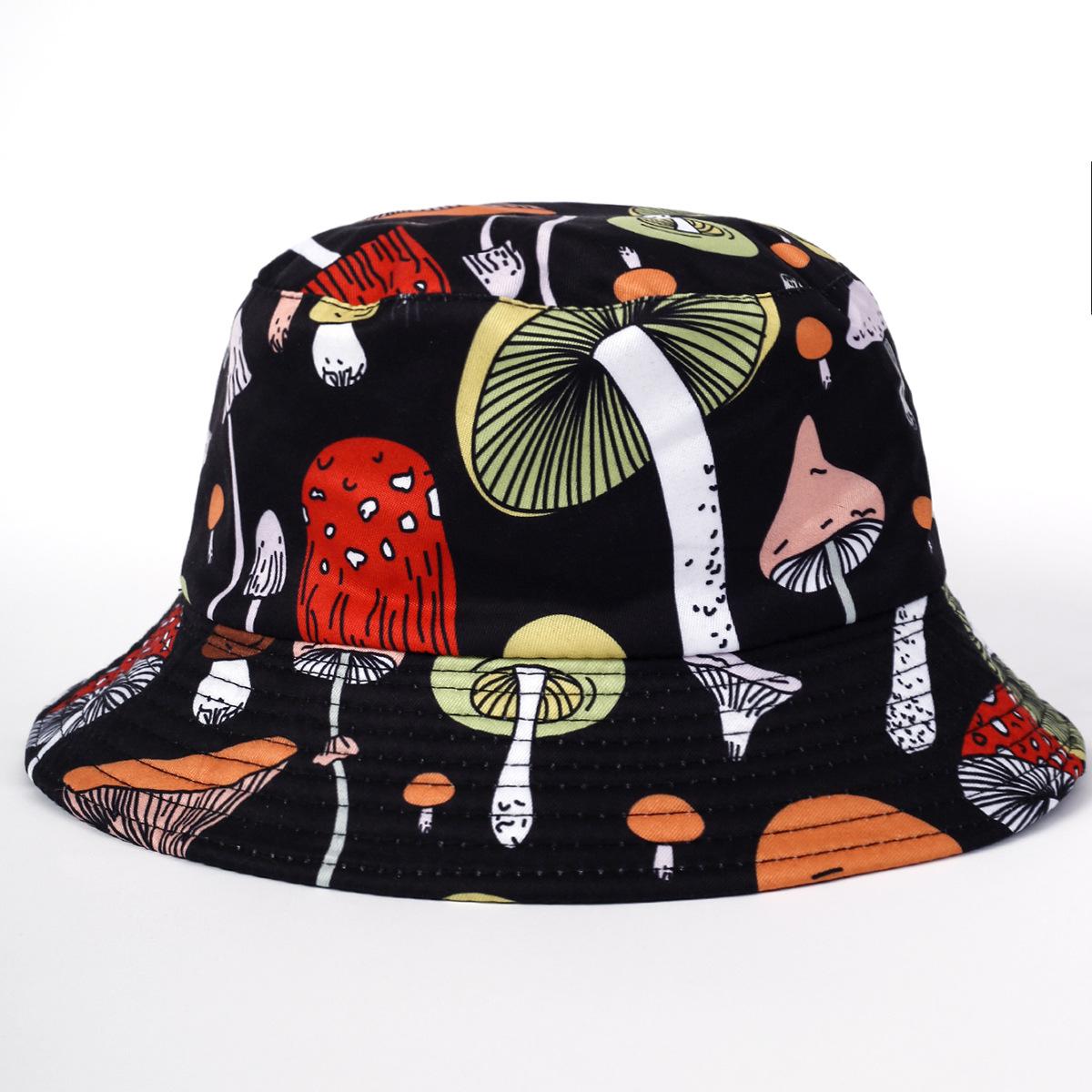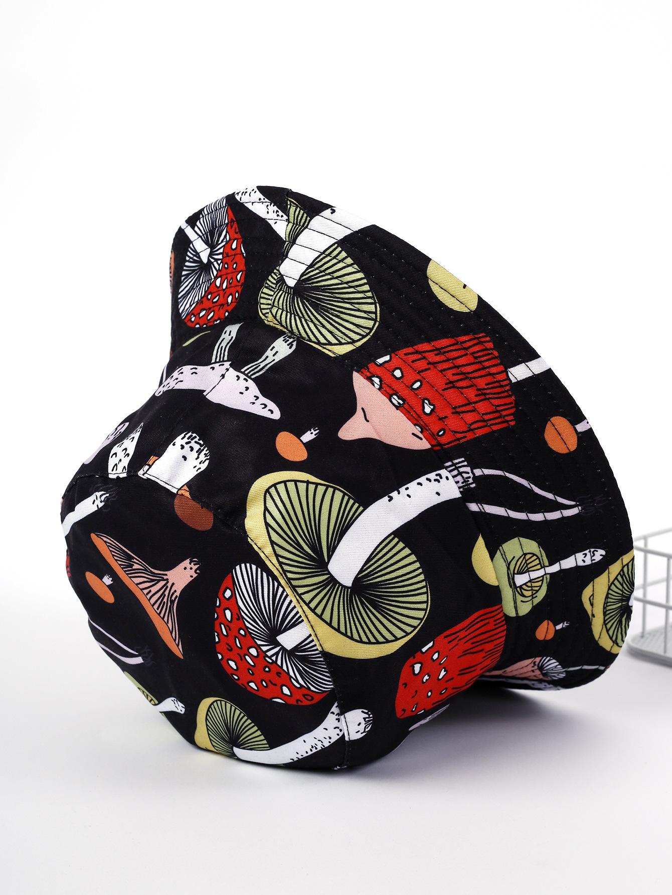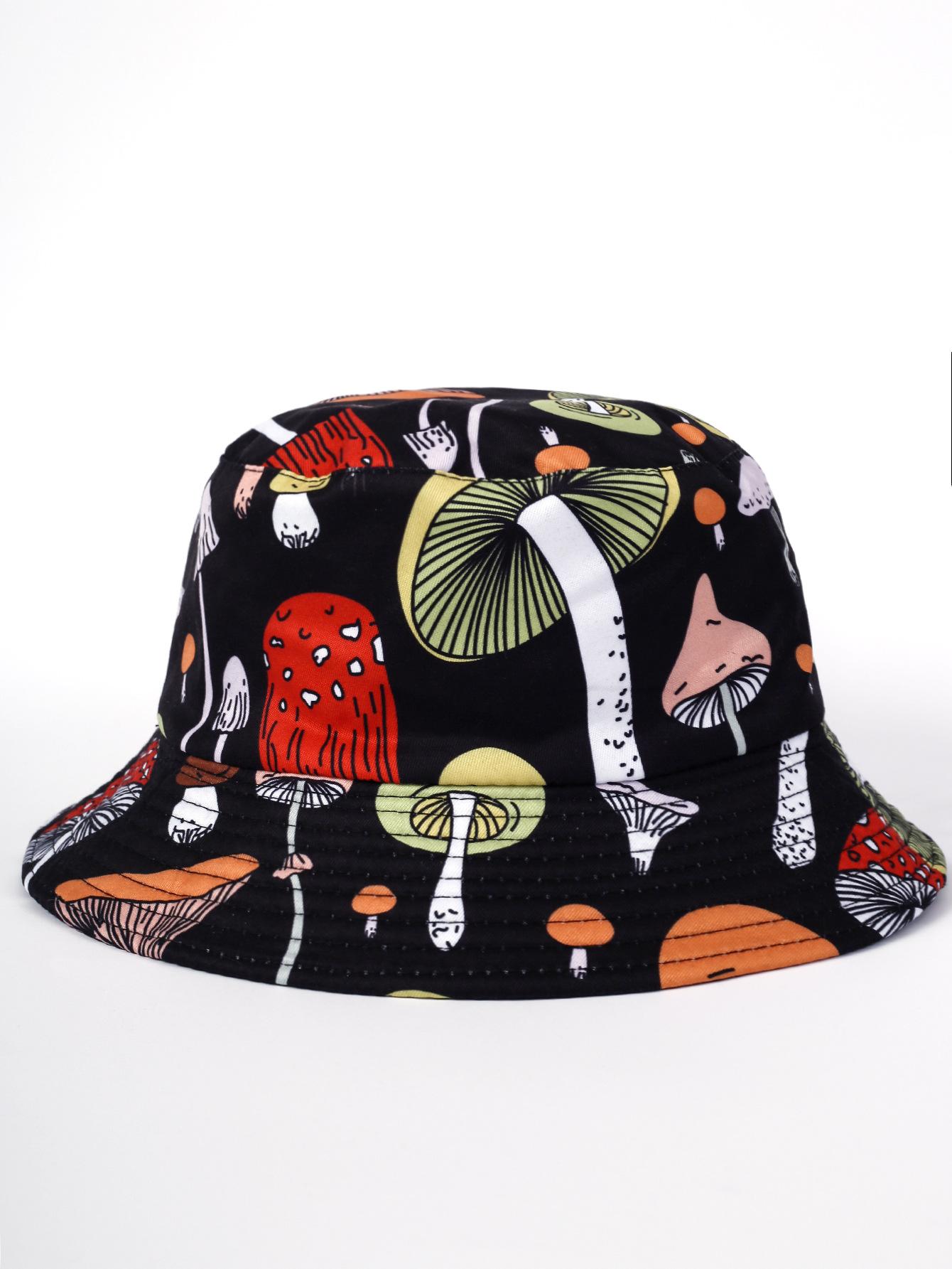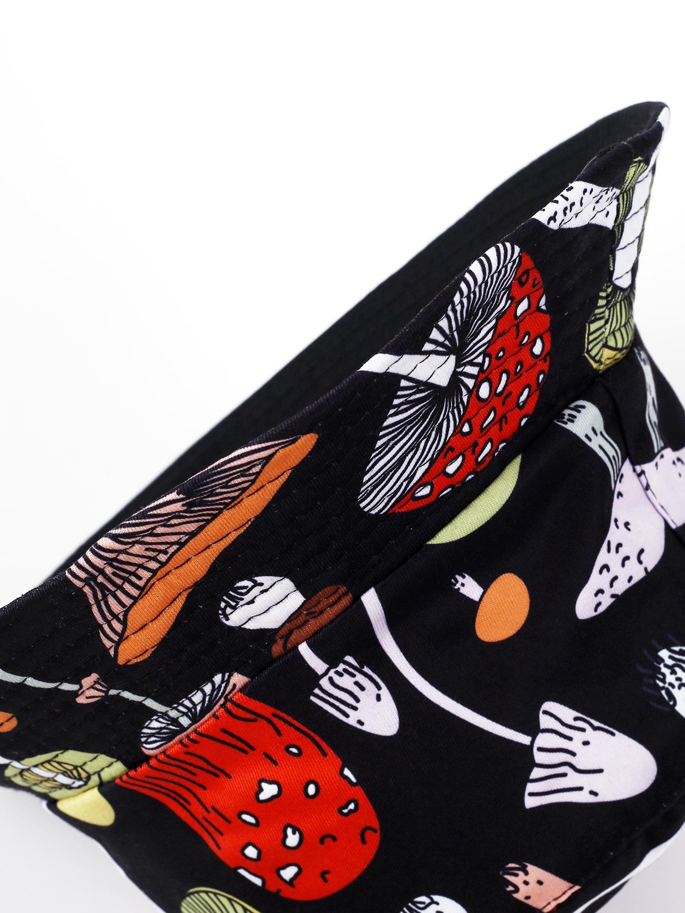 Sombrero de pescador con estampado de setas, novedad de 2023, para mujer, estilo europeo y americano, con doble cara de protección solar para exteriores, para lavabo